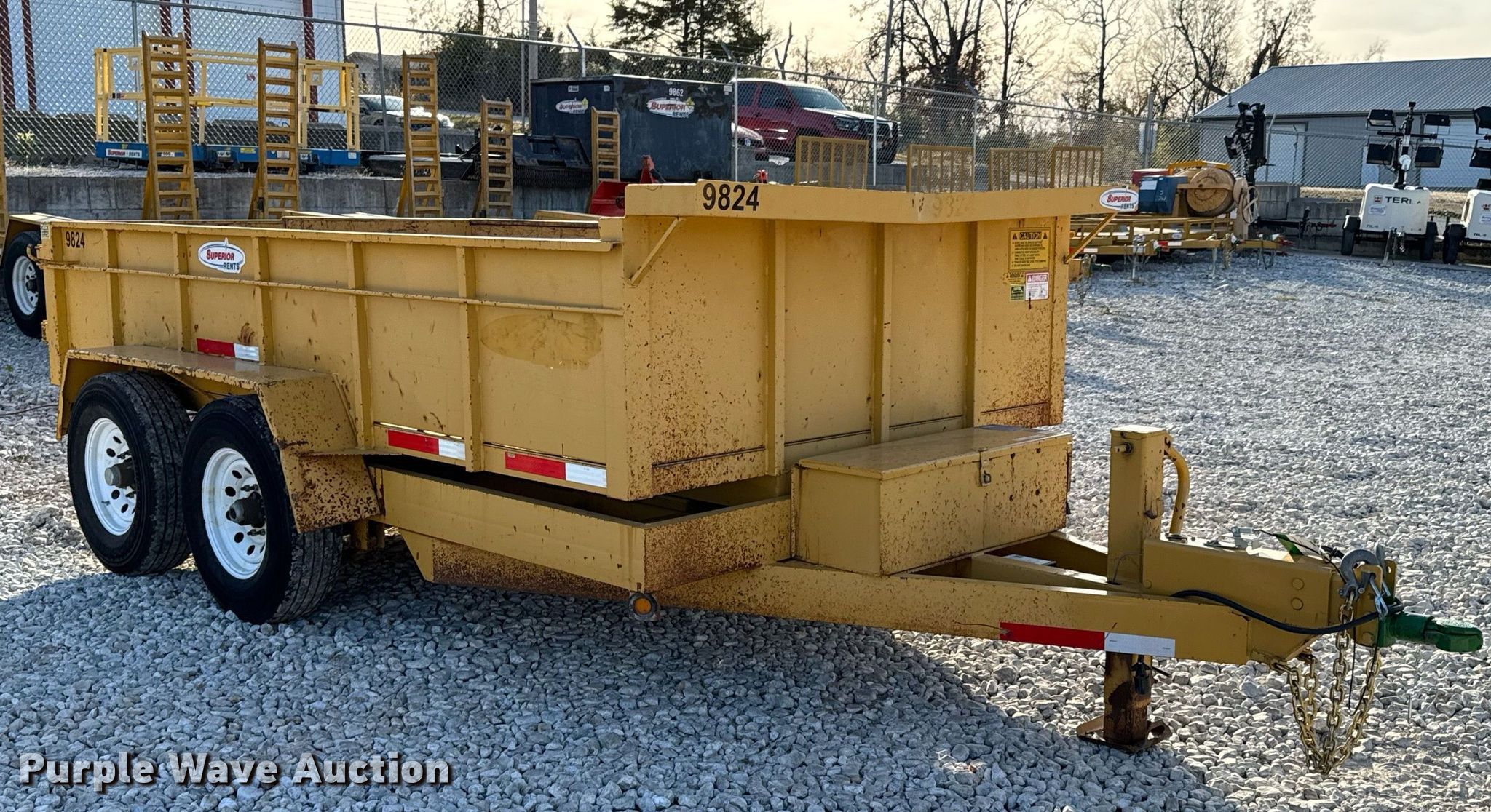 2017 Region Welding 14000-DT dump trailer. VIN: 1R9DT1723HU169824. Dimensions Overall: 18' L x 96" W, Body: 12' L x 84" W, Sideboard height: 24", Ramps: Manual Length: 6'. Features Body type: Steel, Ram: Single, End gate: Manual, Trailer controls. Chassis Ball hitch: 2 5/16", Landing gear: Single, Suspension: Spring, Brakes: Electric, Axles: Tandem, GVWR: 14,000 lbs. Tires Steel wheels, Size: ST235/80R16. Missouri title. Title distribution may be delayed up to 14 days from verification of funds. Superior Rents. Joplin, MO 64801