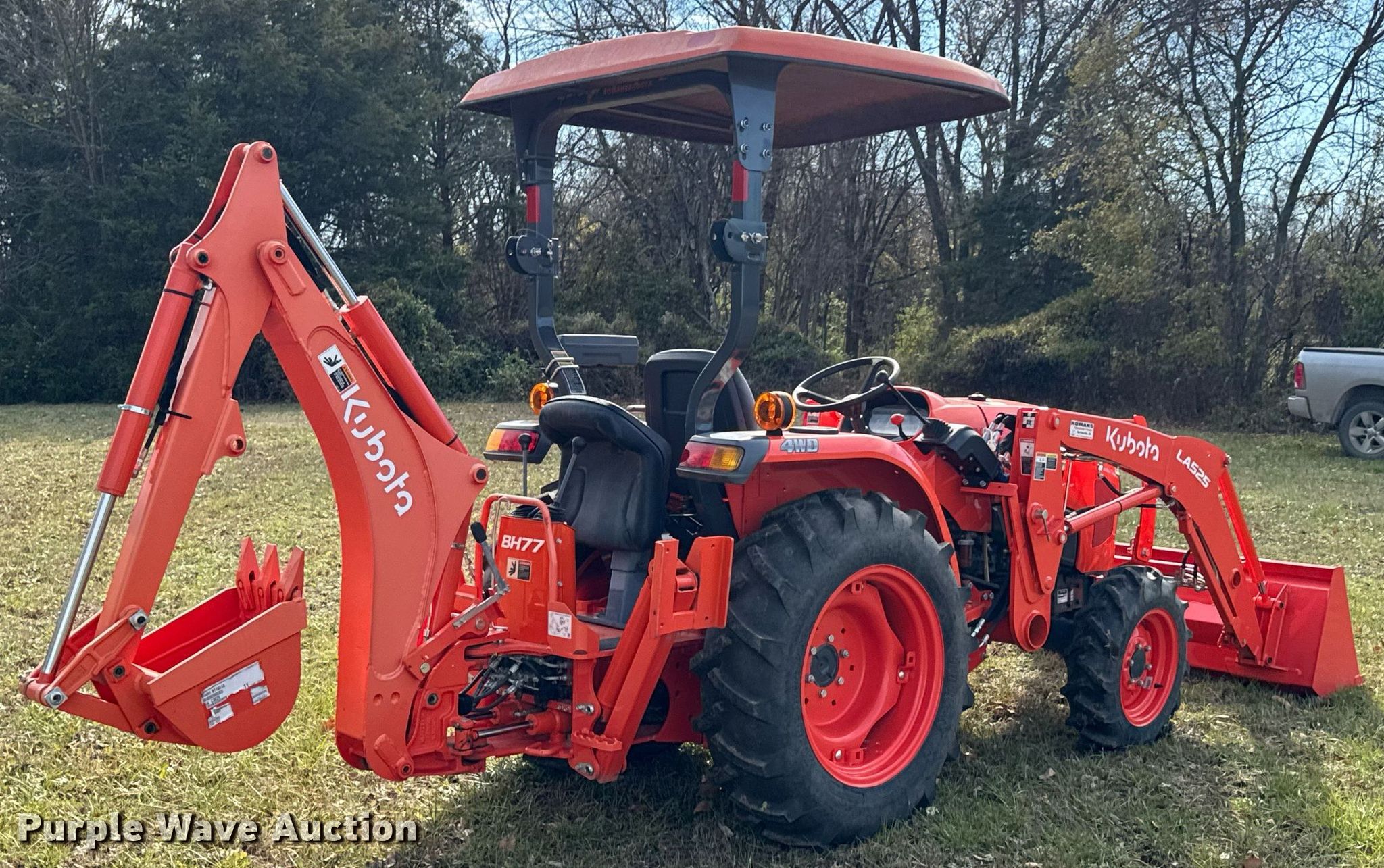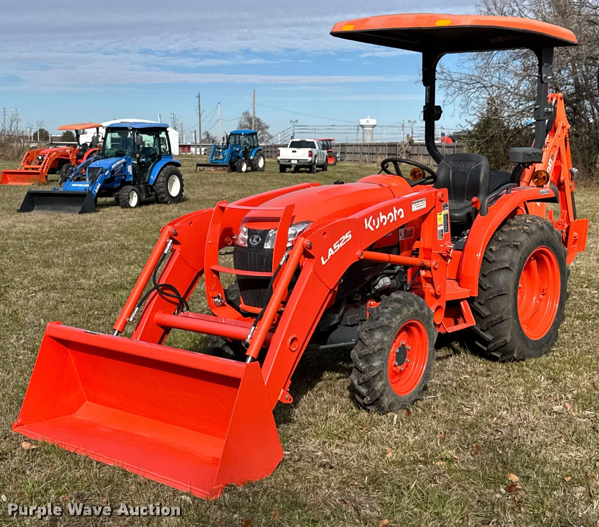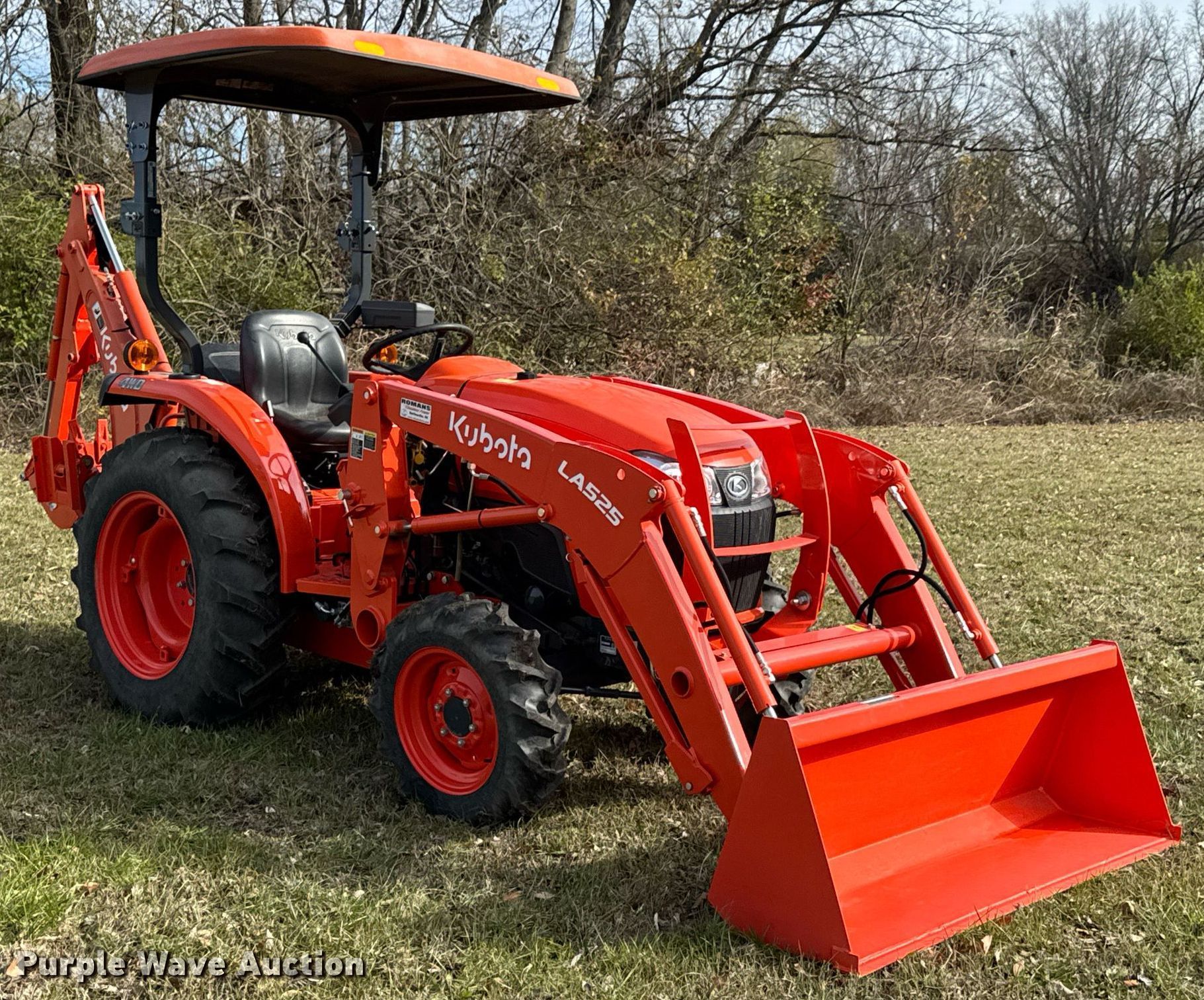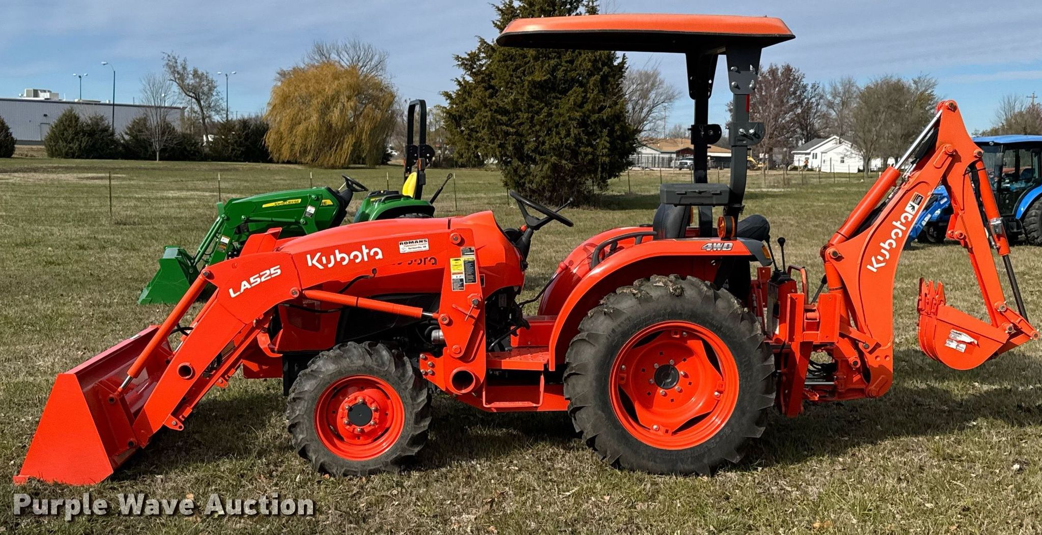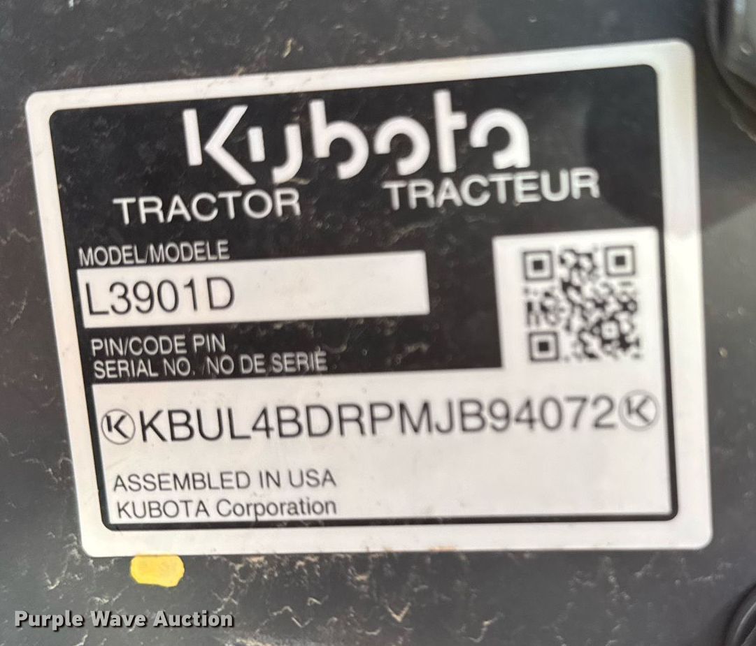 Purple Wave is selling a used Tractor in Kansas. This item is a Kubota L3901D MFWD tractor with the following: Hours: 24 on meter, Serial: KBUL4BDRPMJB94072