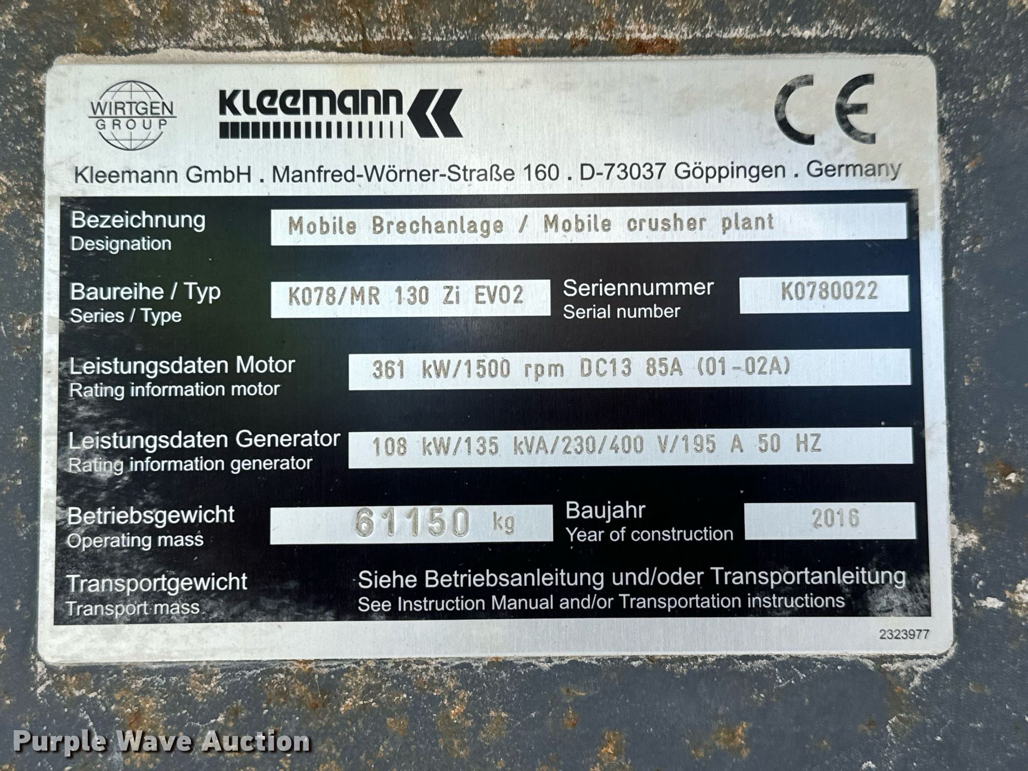 2016 Kleemann MR130Zi closed circuit mobile impact crusher