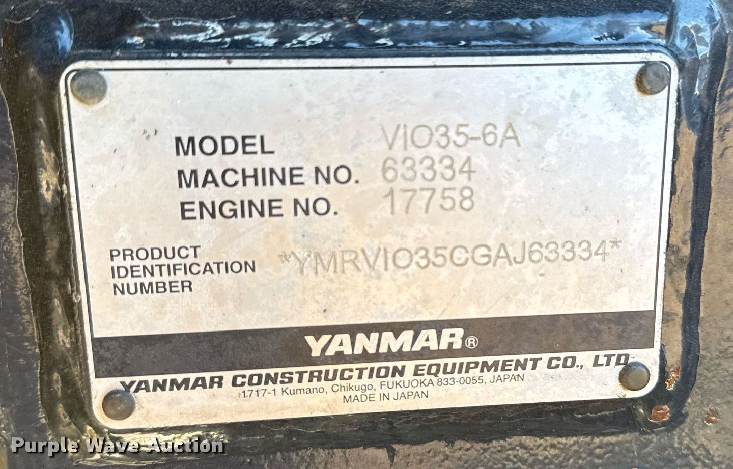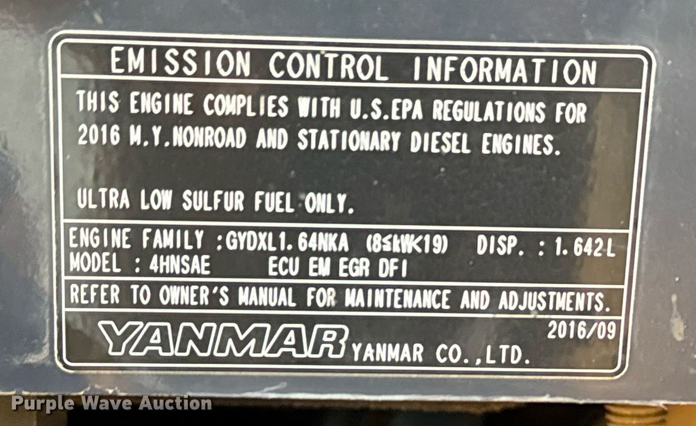 Purple Wave is selling a used Mini Excavator in Oklahoma. This item is a 2016 Yanmar VIO35-6A mini excavator with the following: Hours: 2,133 on meter, Serial: YMRVIO35CGAJ63334
