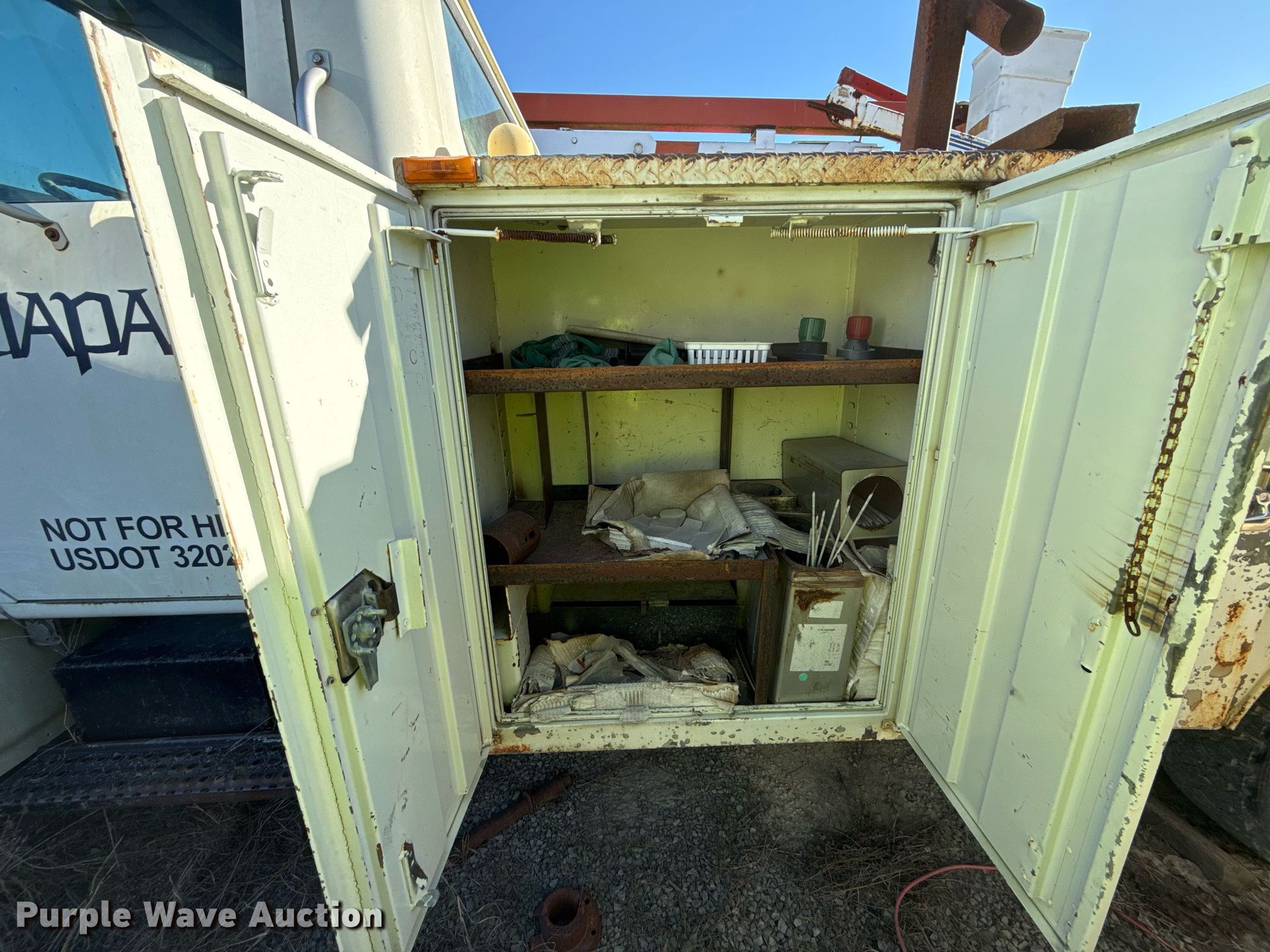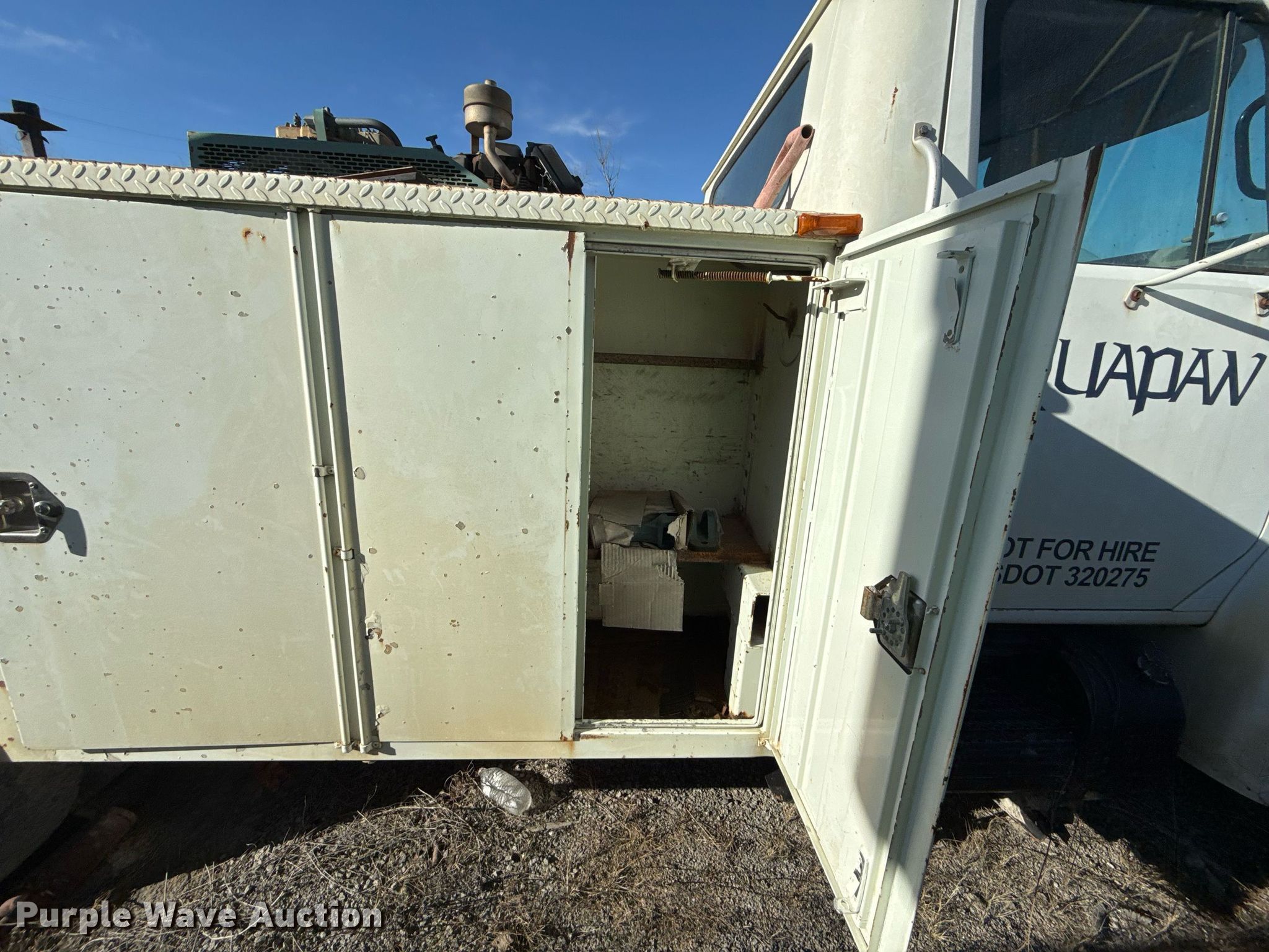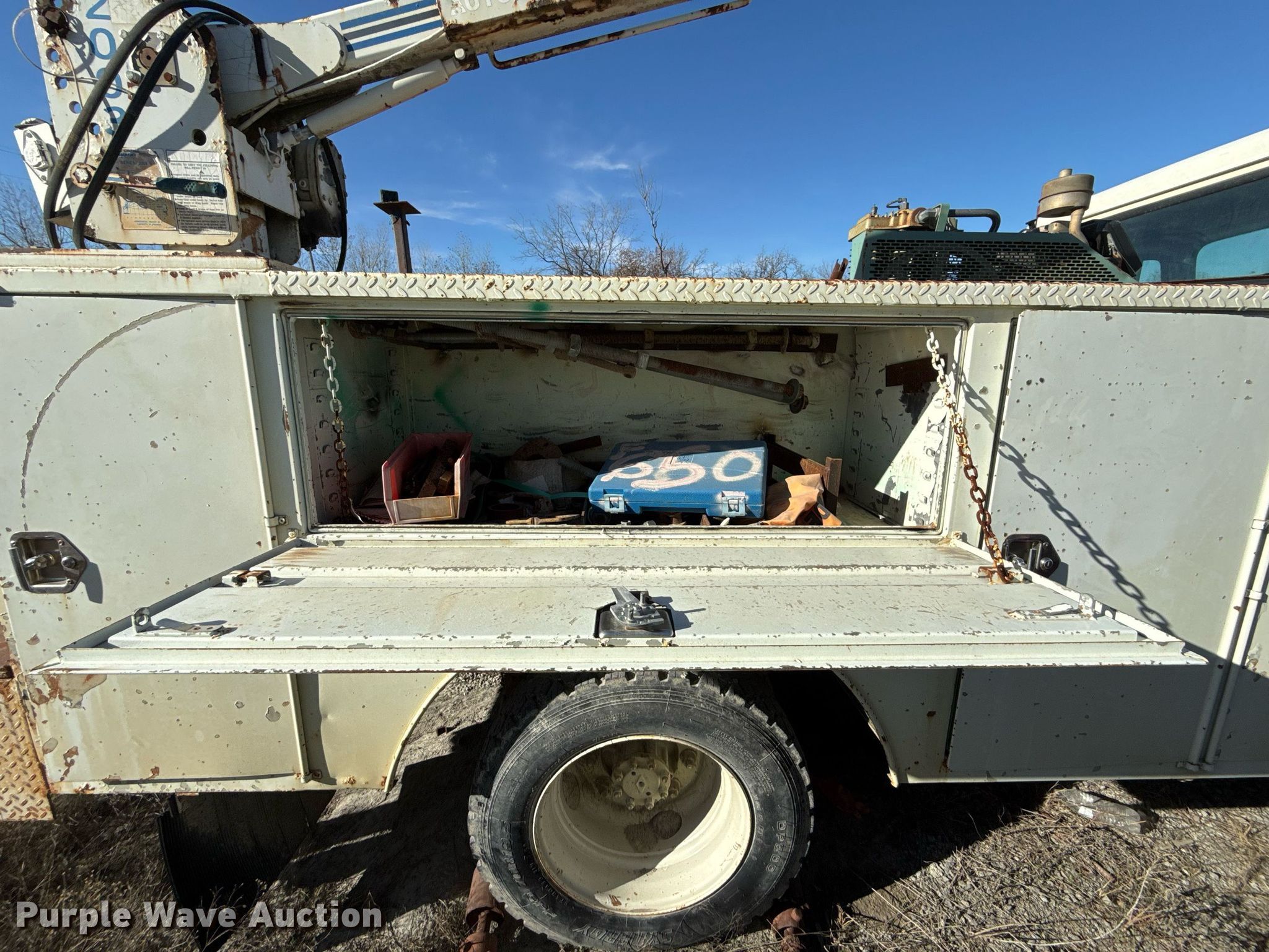 1998 International 4700 utility / service truck. Miles: 127,539 on odometer, Hours: 16,701 on meter, VIN: 1HTSLABK2WH492208, Unit #: 203226. Engine International T444E, Displacement: 7.3L, Cylinders: 6, Fuel type: Diesel. Transmission Automatic. Chassis Axles: Single, Suspension: Spring, Brakes: Hydraulic. Interior AC, Heat, Cruise control, Brake controller. Features Bed 11' L x 94" W, Air compressor Kohler, Crane Auto Crane 2003, Maximum boom length: 9' Maximum lift capacity: 2,000 lbs.. Tires Front: 225/70R19.5, Rear: 245/70R19.5. Notes Contents included, Non-operational air compressor, Non-operational crane, Non-operational unit. Oklahoma title. Title distribution may be delayed up to 30 days from verification of funds. Dolese Bros. Co.. 49066 Oklahoma 33. Drumright, OK 74030