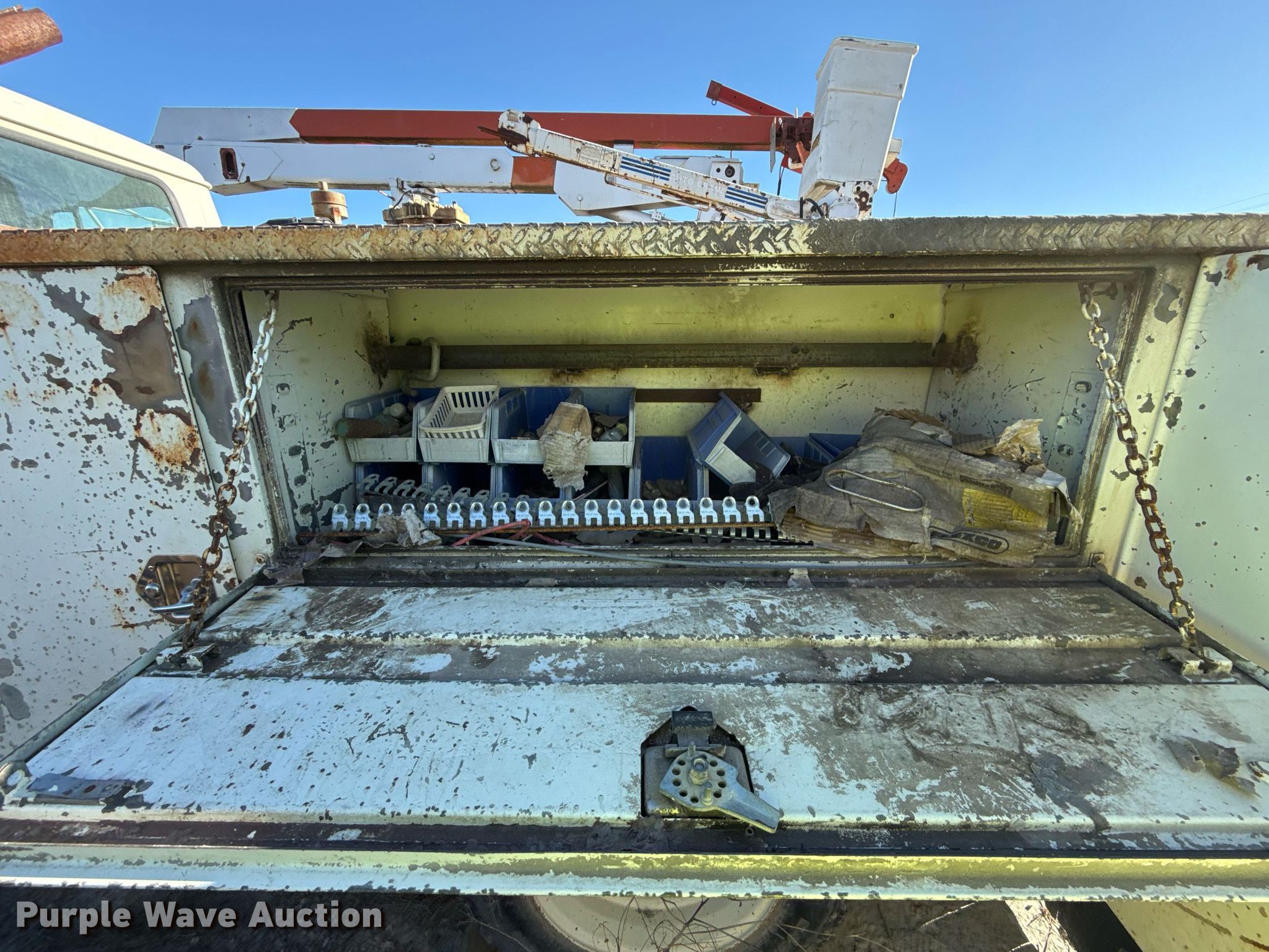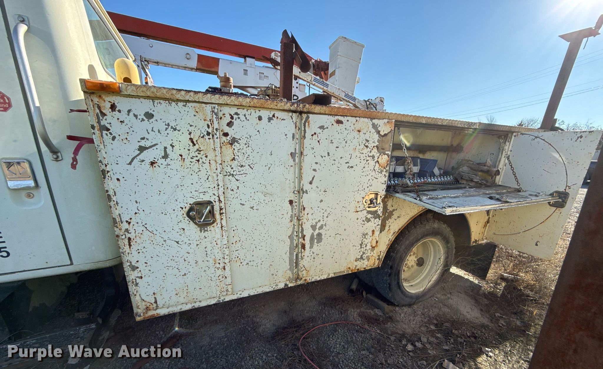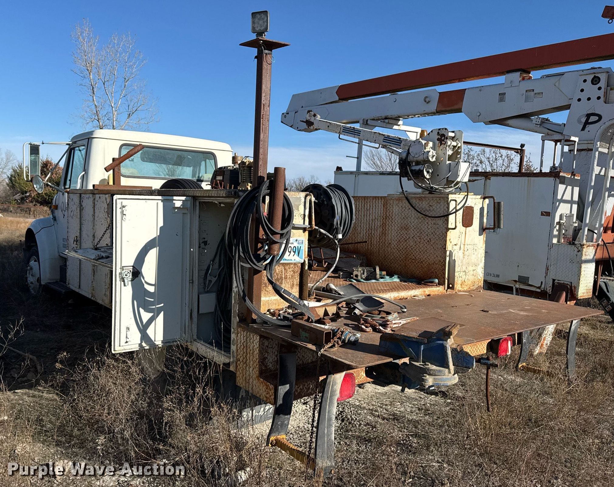 Purple Wave is selling a used Service Truck in Oklahoma. This item is a 1998 International 4700 utility / service truck with the following: Miles: 127,539 on odometer, Hours: 16,701 on meter, VIN: 1HTSLABK2WH492208, Unit #: 203226