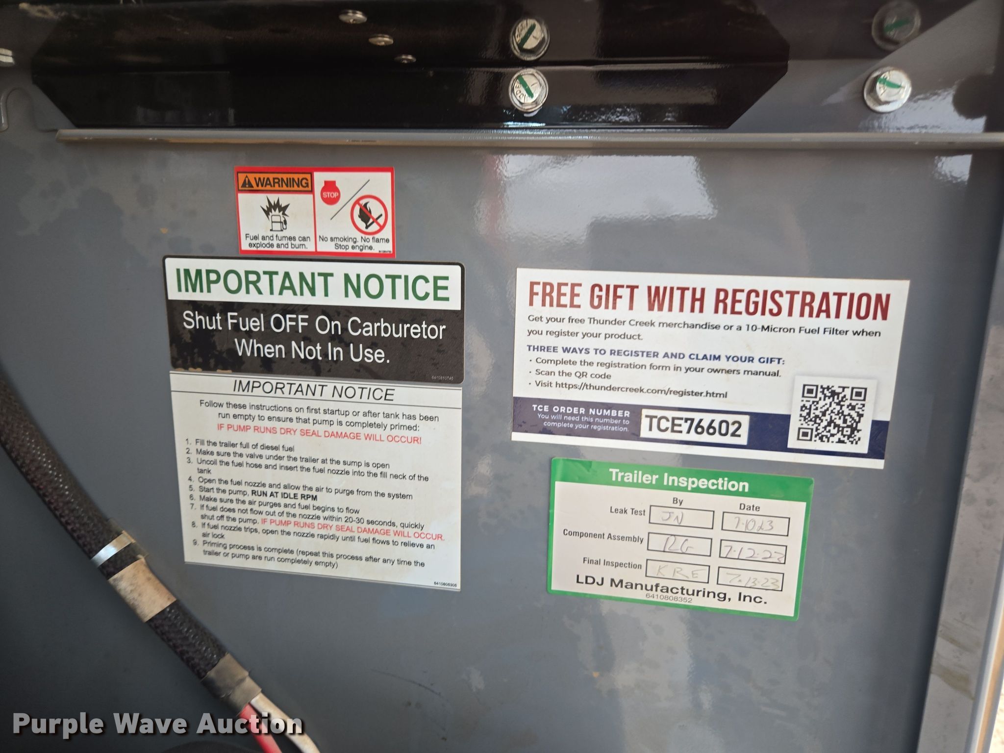 Purple Wave is selling a used Trailer Other in Texas. This item is a 2023 Thunder Creek MTT920-G3 fuel trailer with the following: VIN: 56ZL1UJ24PP001134