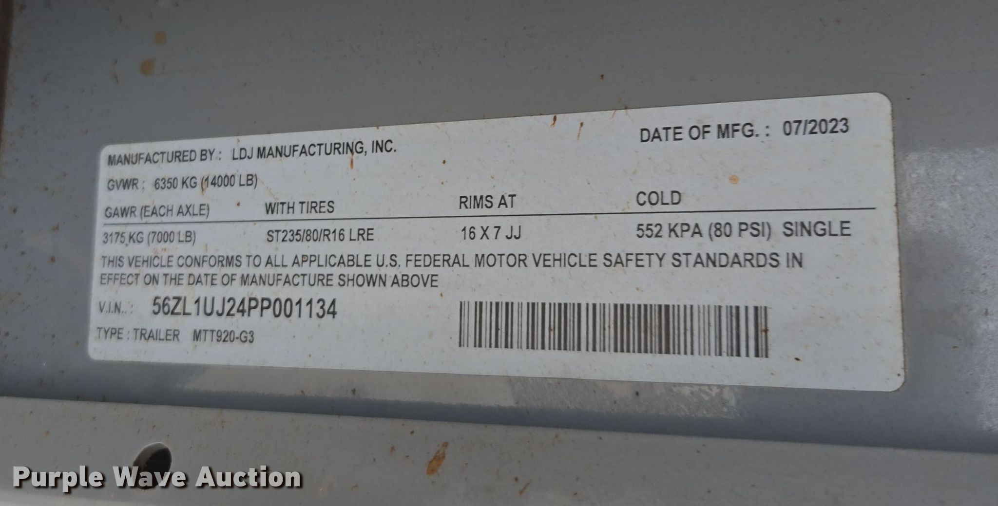 2023 Thunder Creek MTT920-G3 fuel trailer. VIN: 56ZL1UJ24PP001134. Dimensions Overall: 16' L x 79" W. Engine Power Pro, Cylinder: Single, Fuel type: Gas. Features Deck type: Steel, (8) tanks Capacity: 115 gallons, Hose reels. Chassis Ball hitch: 2 5/16", Landing gear: Single, Suspension: Spring, Brakes: Electric, Axles: Tandem, GVWR: 14,000 lbs. Tires Steel wheels, Size: 235/85R16. Texas title. Title has a lien that will be released following the close of the auction. Title distribution may be delayed up to 30 days from verification of funds. Flow Tx Energy West Texas Region. Midland, TX 79707