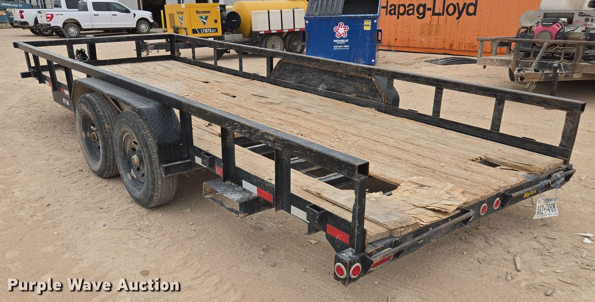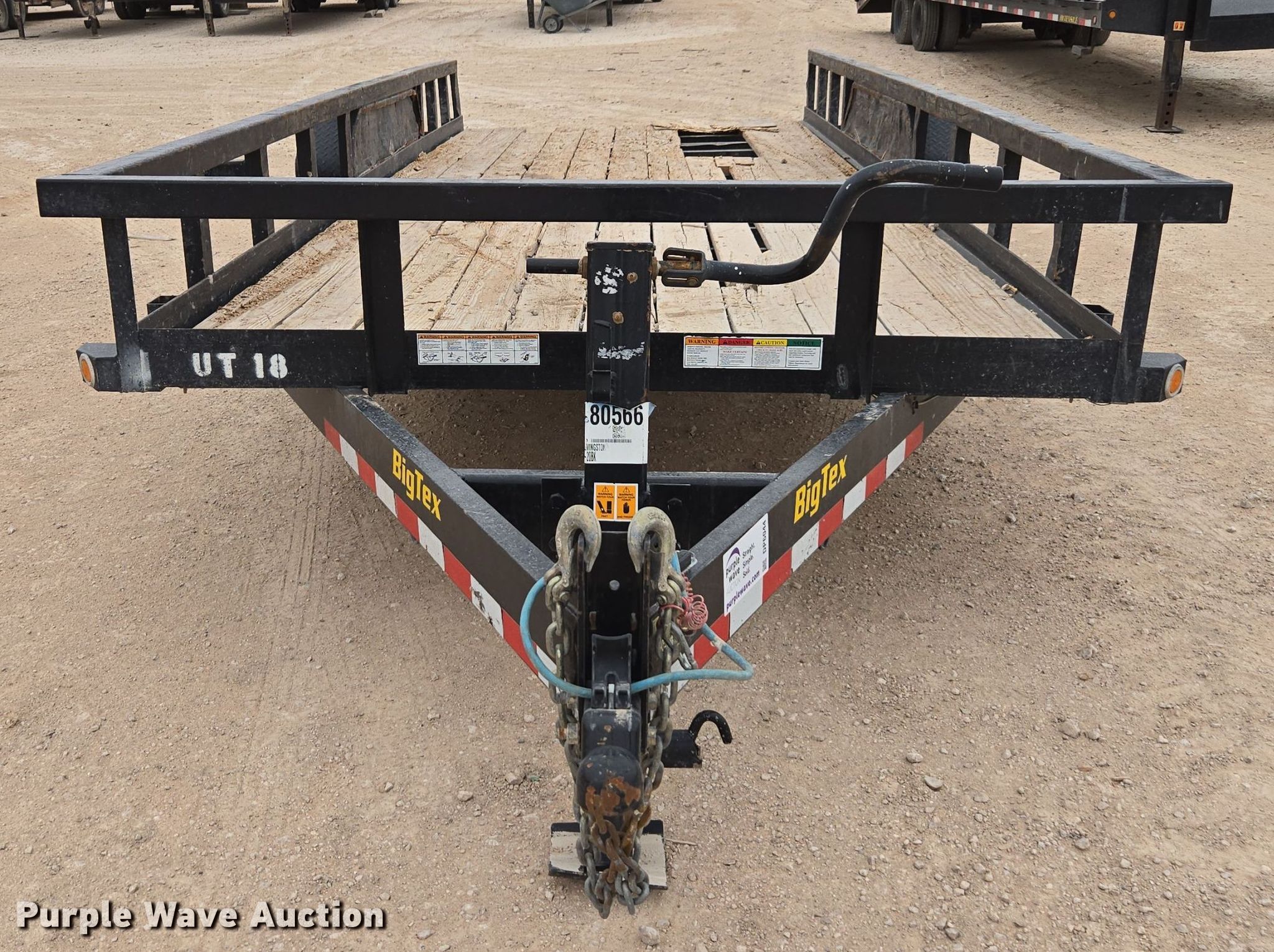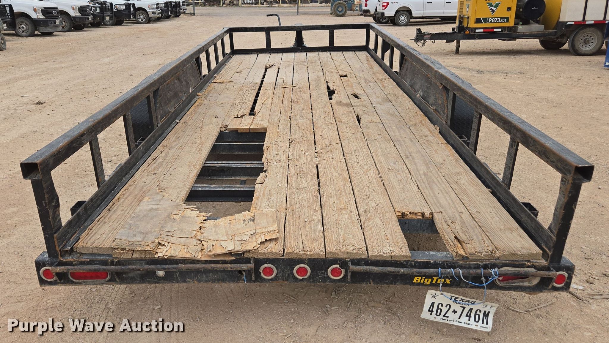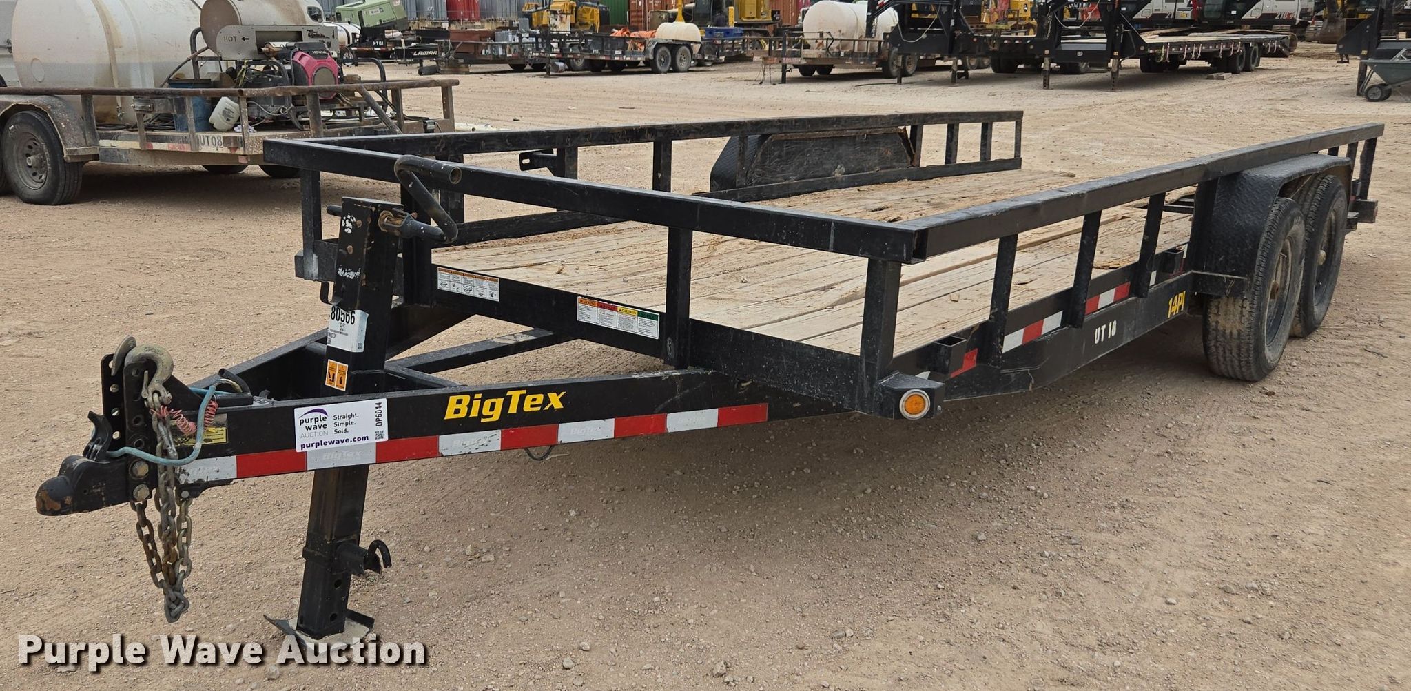 2023 Big Tex 14PI-20BK utility trailer. VIN: 16V1W2424P2280566. Dimensions Overall: 24' L x 102" W, Deck: 20' L x 84" W. Features Deck type: Wood. Chassis Ball hitch: 2 5/16", Landing gear: Single, Suspension: Spring, Brakes: Electric, Axles: Tandem, GVWR: 14,000 lbs. Tires Steel wheels, Size: 235/80R16. Notes Deck boards damaged. Texas title. Title has a lien that will be released following the close of the auction. Title distribution may be delayed up to 30 days from verification of funds. Flow Tx Energy West Texas Region. Midland, TX 79707