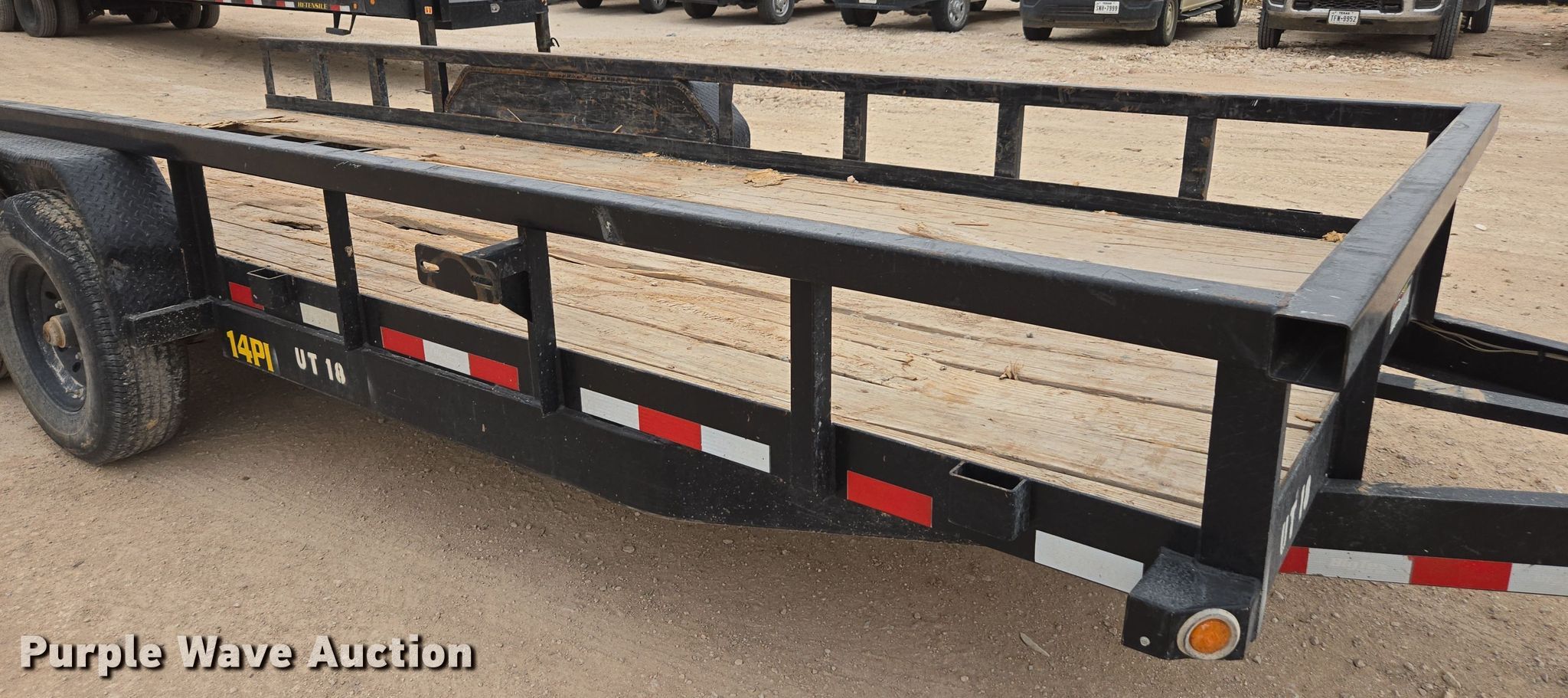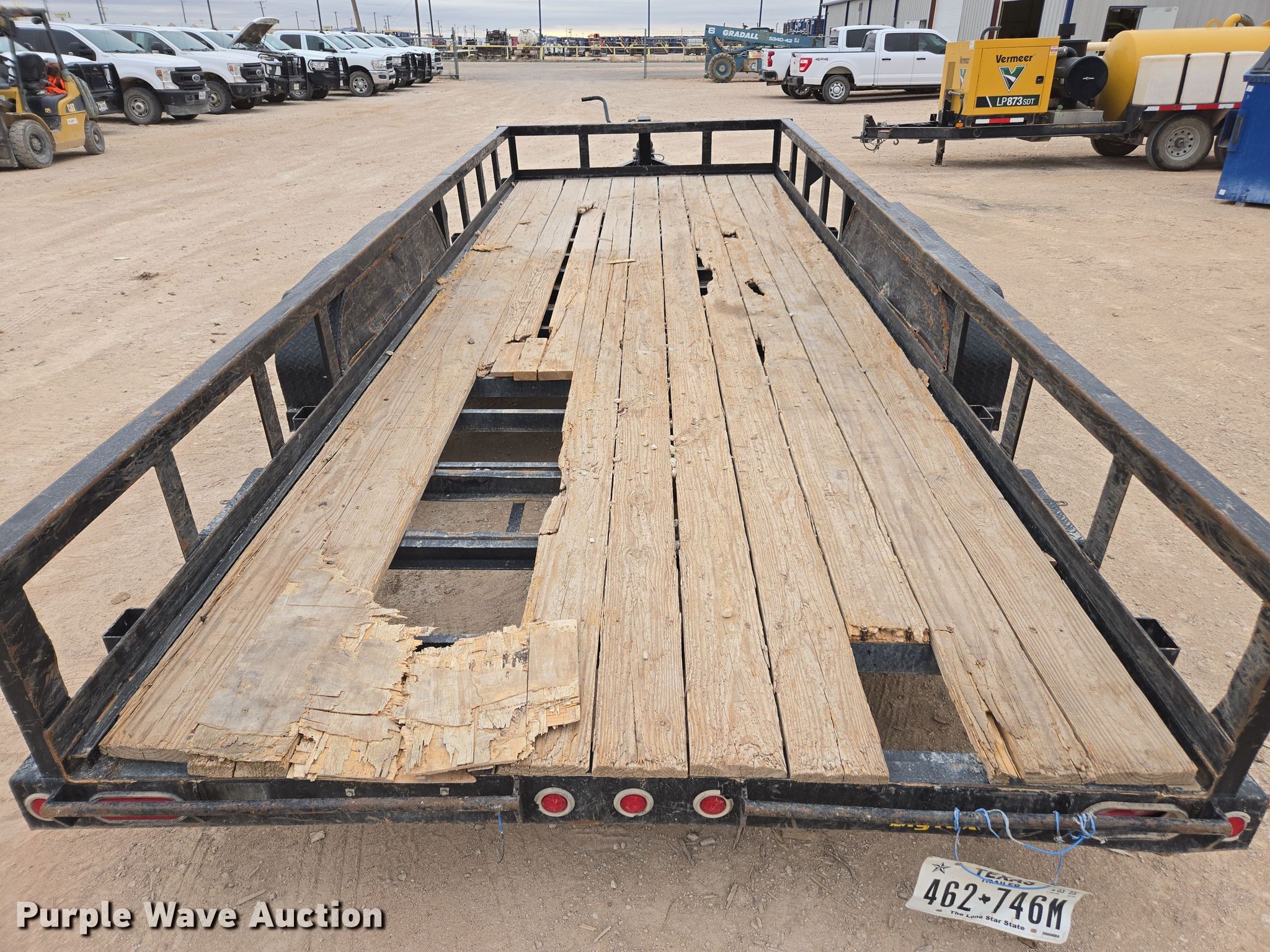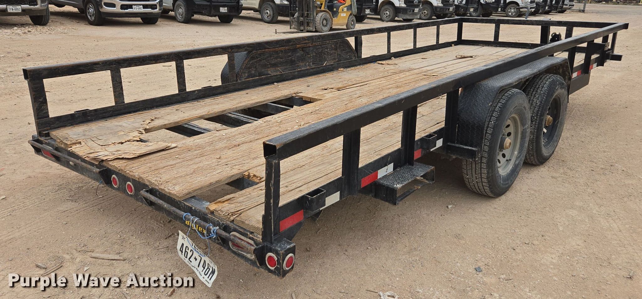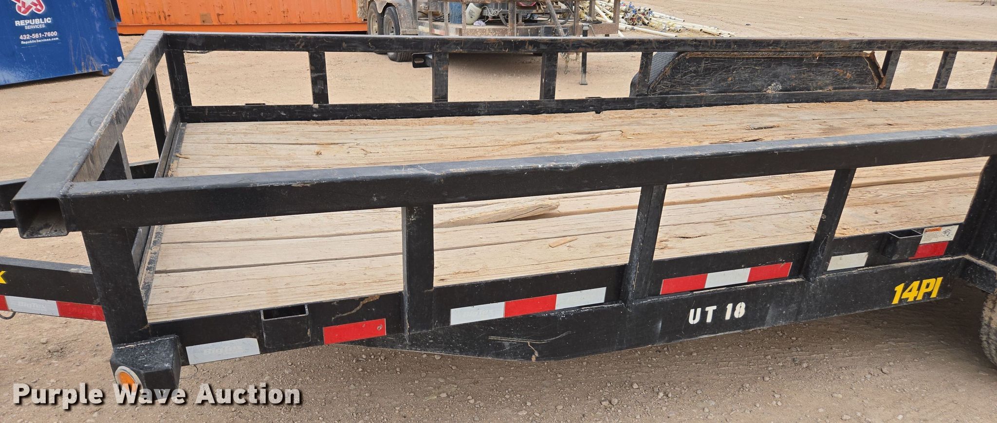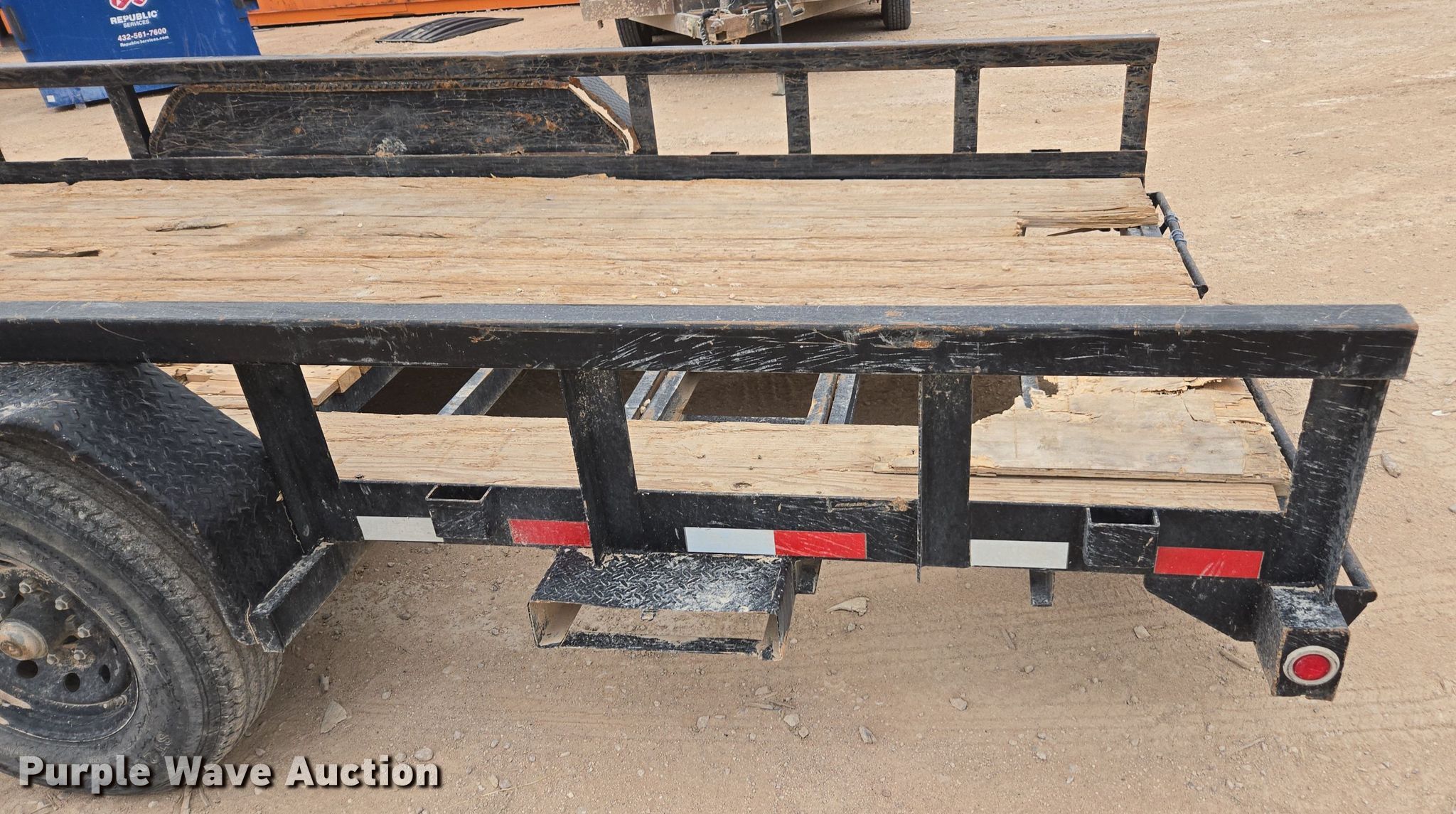 2023 Big Tex 14PI-20BK utility trailer. VIN: 16V1W2424P2280566. Dimensions Overall: 24' L x 102" W, Deck: 20' L x 84" W. Features Deck type: Wood. Chassis Ball hitch: 2 5/16", Landing gear: Single, Suspension: Spring, Brakes: Electric, Axles: Tandem, GVWR: 14,000 lbs. Tires Steel wheels, Size: 235/80R16. Notes Deck boards damaged. Texas title. Title has a lien that will be released following the close of the auction. Title distribution may be delayed up to 30 days from verification of funds. Flow Tx Energy West Texas Region. Midland, TX 79707