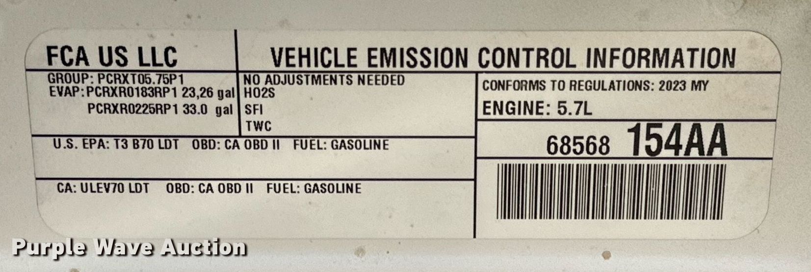 2023 Dodge Ram 1500 Crew Cab pickup truck. Miles: 88,671 on odometer, VIN: 1C6SRFFT5PN575718. Engine Displacement: 5.7L V8 OHV, Cylinders: 8, Fuel type: Gas. Transmission Automatic, Four wheel drive. Interior AC, Heat, Seat: Heated, Power driver, Heated mirrors, Power windows, Power locks, Cruise control, Backup camera. Tires Size: 275/55R20. Notes Unknown operating condition of backup camera, Contents not included. Texas title. Title has a lien that will be released following the close of the auction. Title distribution may be delayed up to 30 days from verification of funds. Flow Tx Energy West Texas Region. Midland, TX 79707