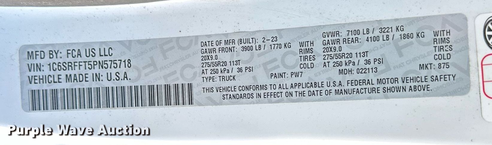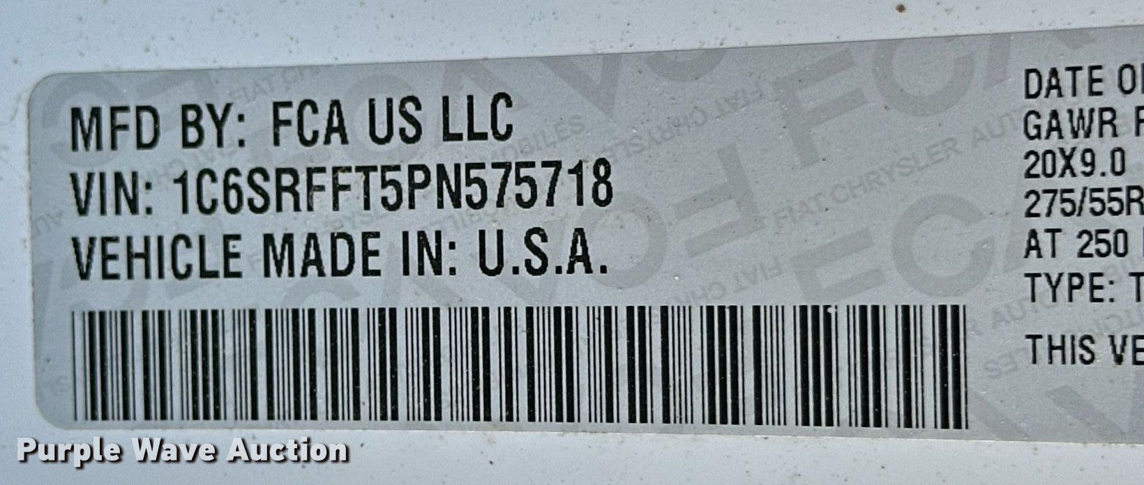 • VIN: 1C6SRFFT5PN575718