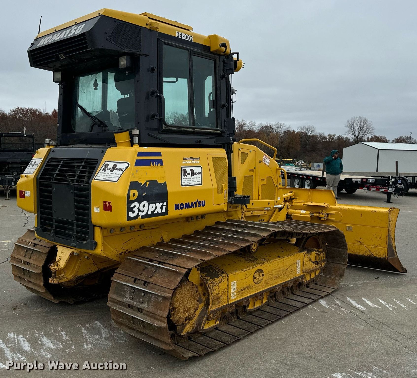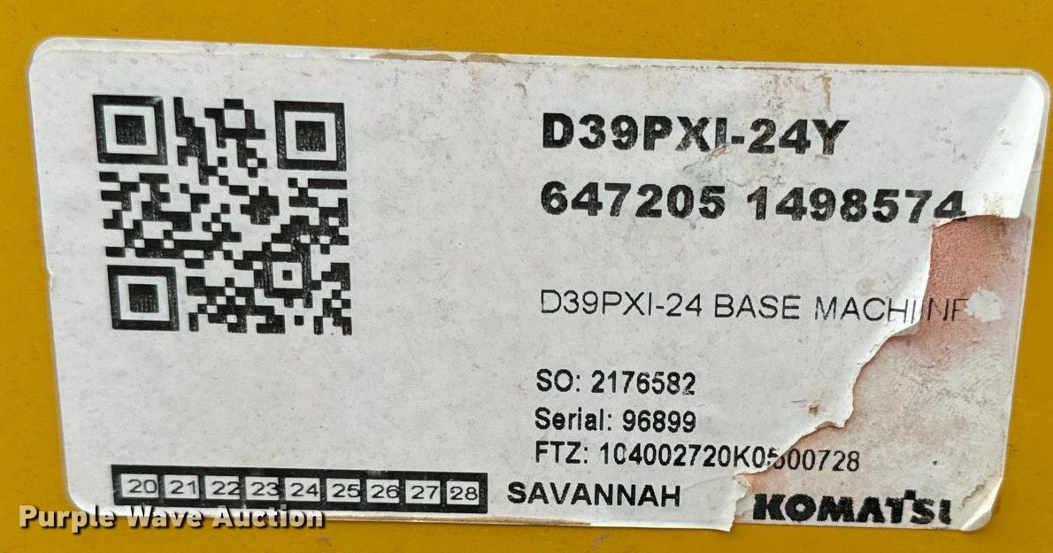Purple Wave is selling a used Crawler Dozer in Missouri. This item is a 2021 Komatsu D39PXI-24 dozer with the following: Hours: 3,430 on meter, Serial: KMT0D130HLA096899, Unit #: 34-002