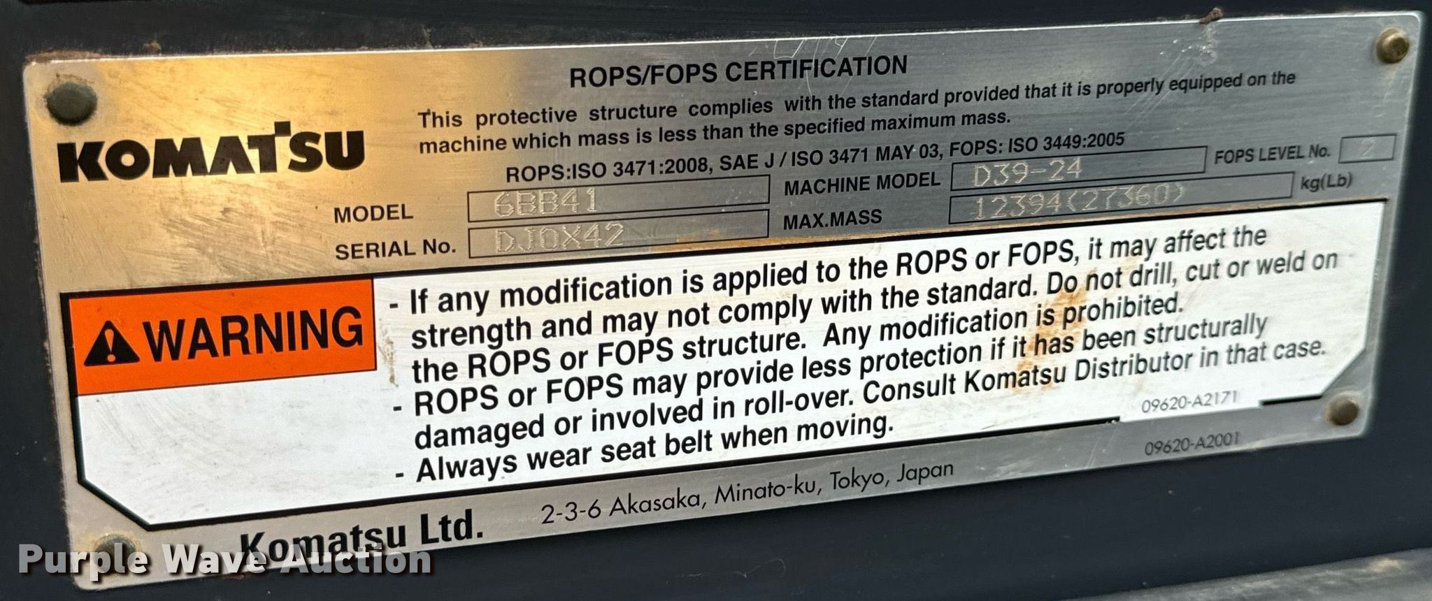 2021 Komatsu D39PXI-24 dozer has sold in Columbia, Missouri for $77000. Item DP6778 sold on December 31st, 2024.