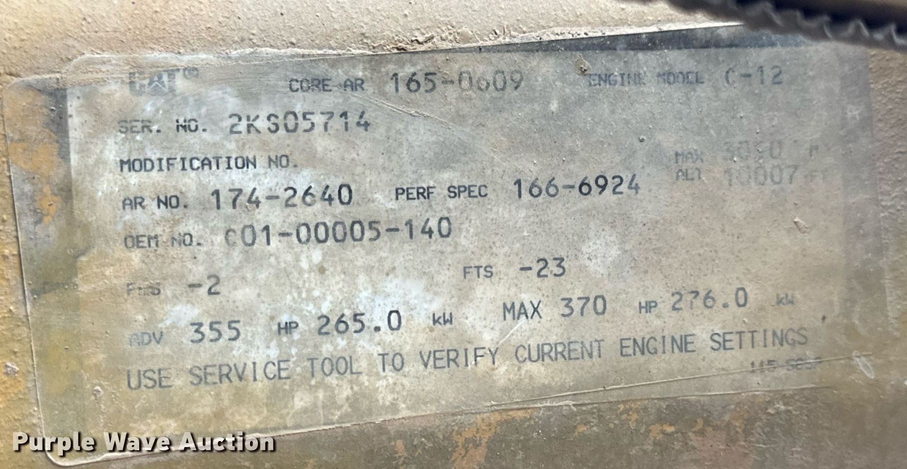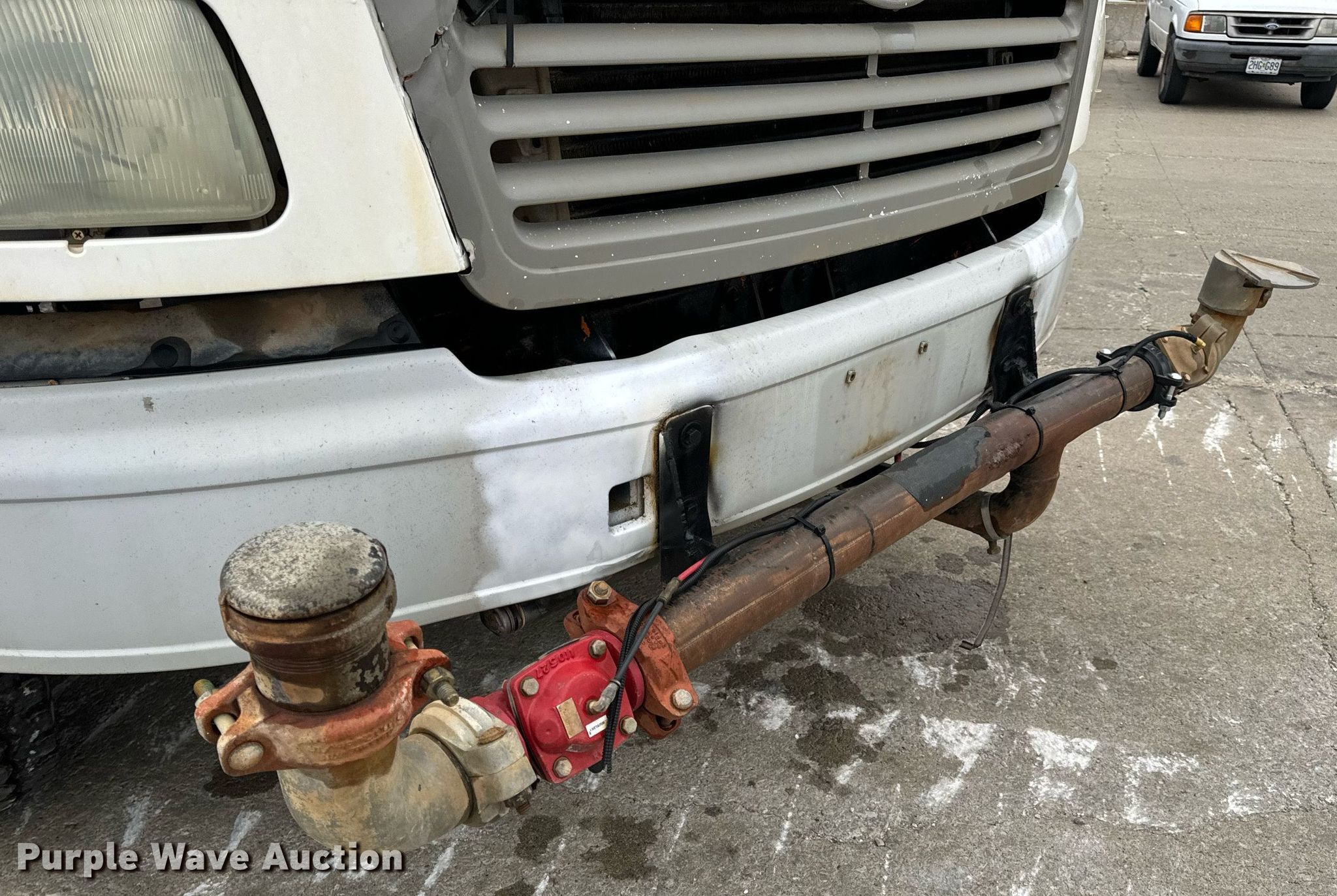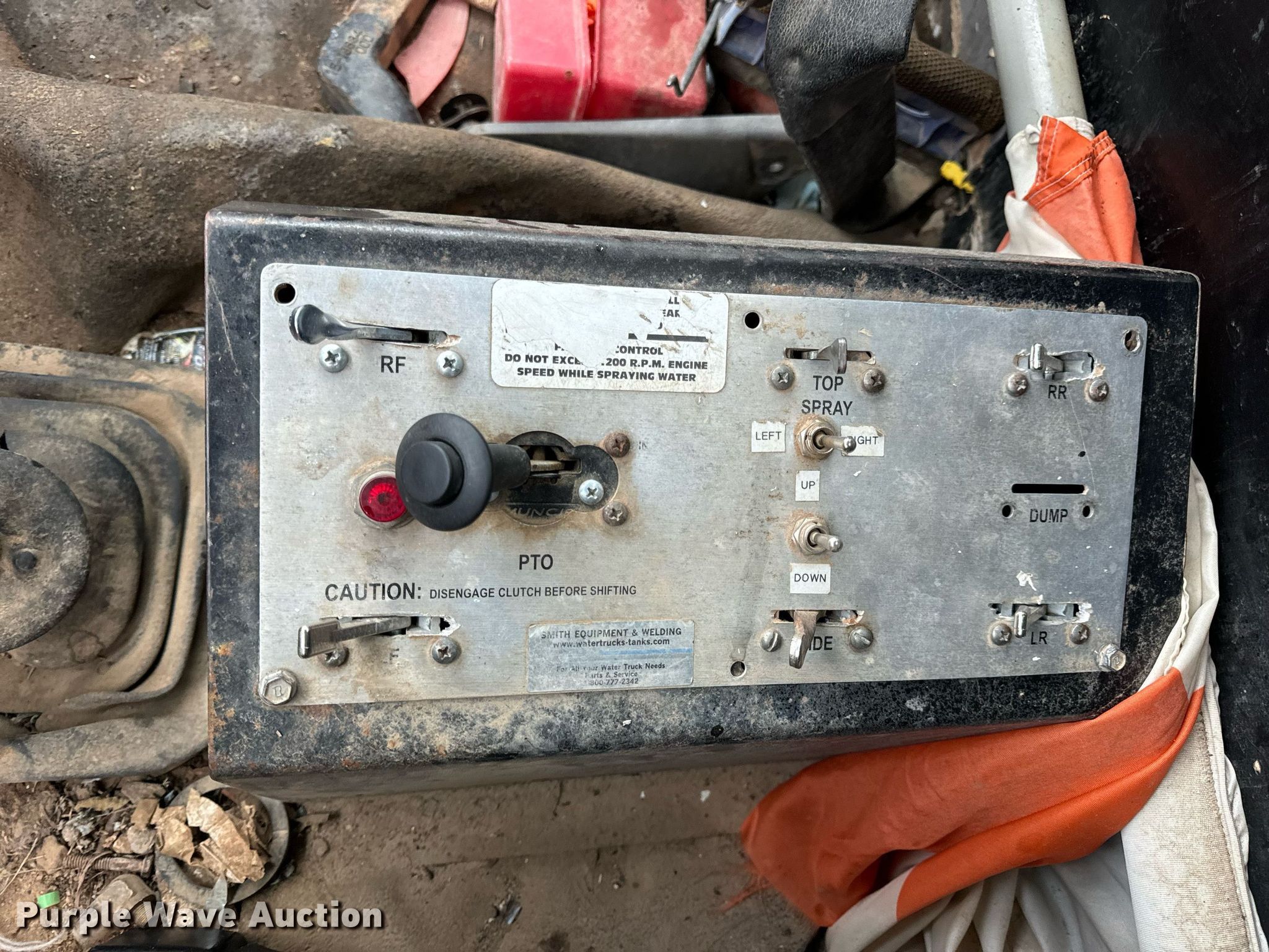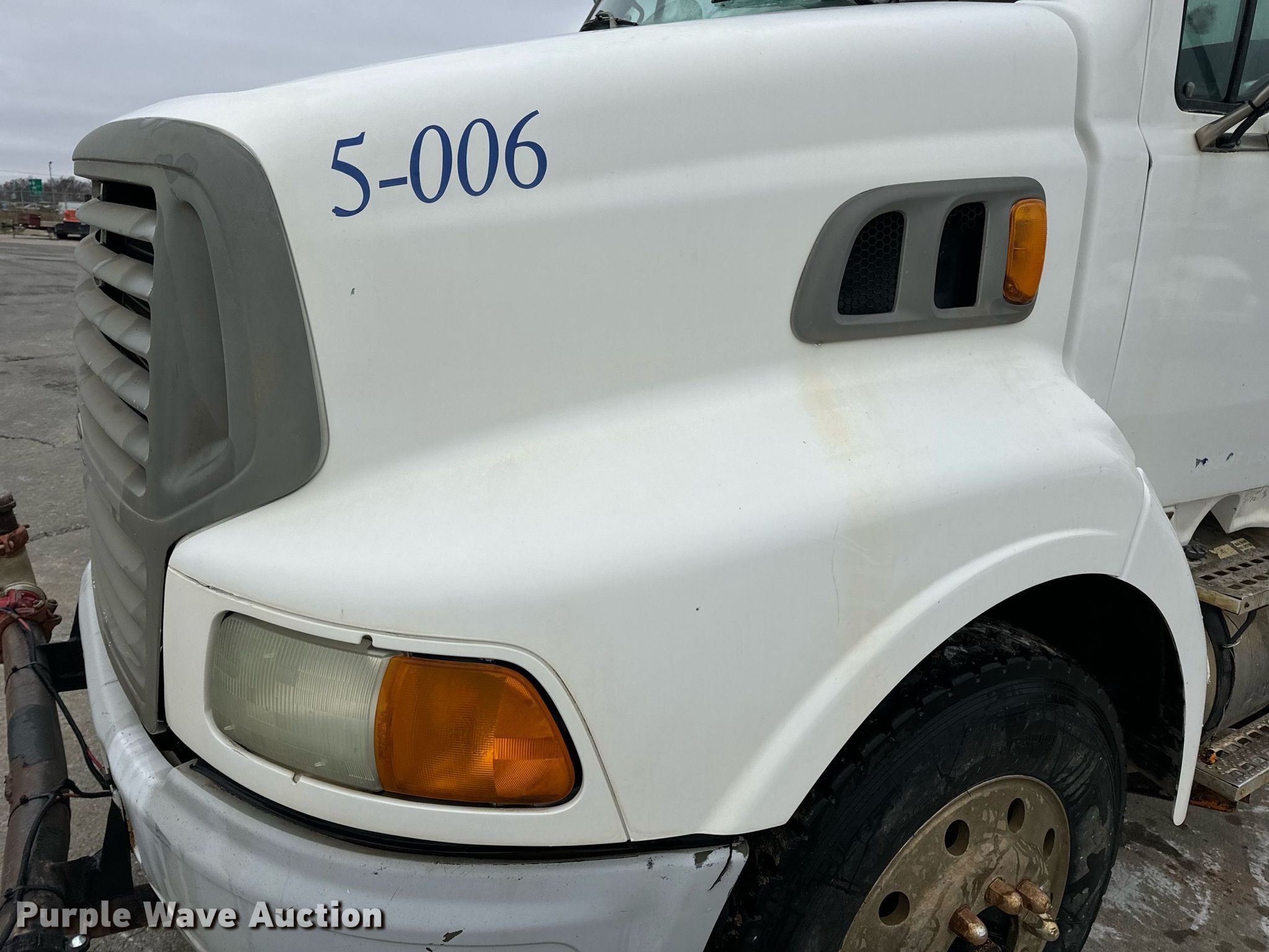 1999 Sterling A9513 water truck. Miles: 107,895 on odometer, VIN: 2FWWJWDA6XAF59115, Unit #: 5-006. Engine Caterpillar C12, Serial: 2KS05714, Displacement: 12..0L, Cylinders: 6, Fuel type: Diesel, HP: 370, kW: 276, Engine brake. Transmission Eaton Fuller, Manual, Speed: 13. Chassis Axles: Tandem, Differential lock: Inter-axle, Suspension: Spring over walking beam, Brakes: Air, PTO. Interior AC, Heat. Features Bed / tank 16' 1" L x 93.5" W, Spray bar: Front, Rear, Side discharge, Hose reel, Top fill, Rear drain: 2". Tires Size: 11R24.5. Missouri title. Title distribution may be delayed up to 30 days from verification of funds. Emery Sapp & Sons, Inc... Columbia, MO 65202