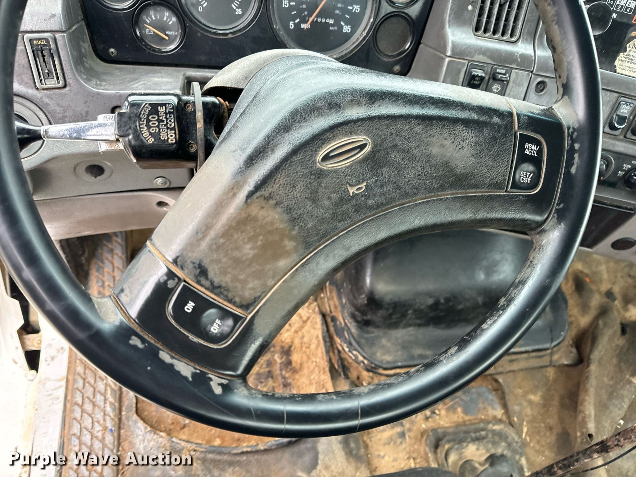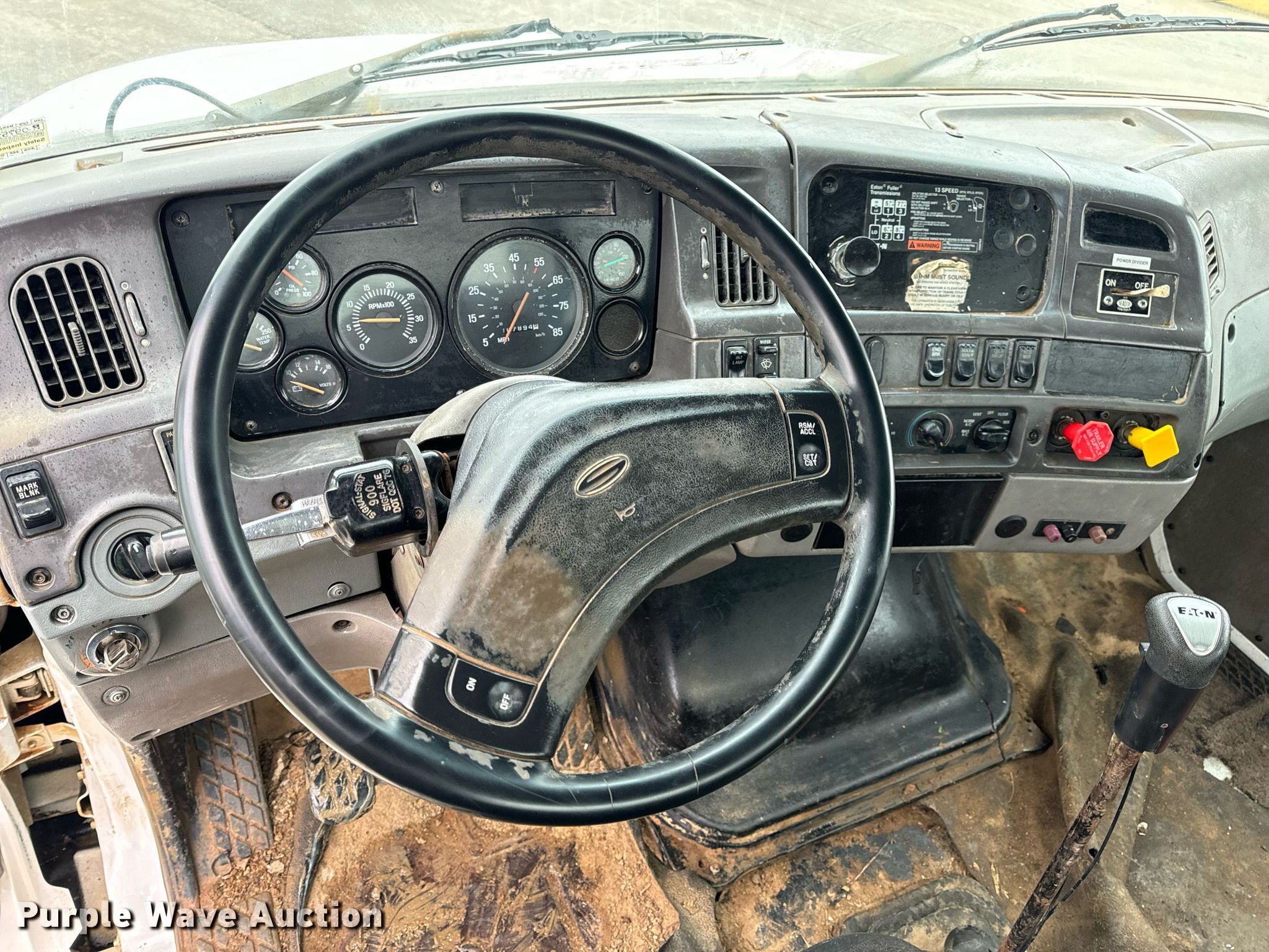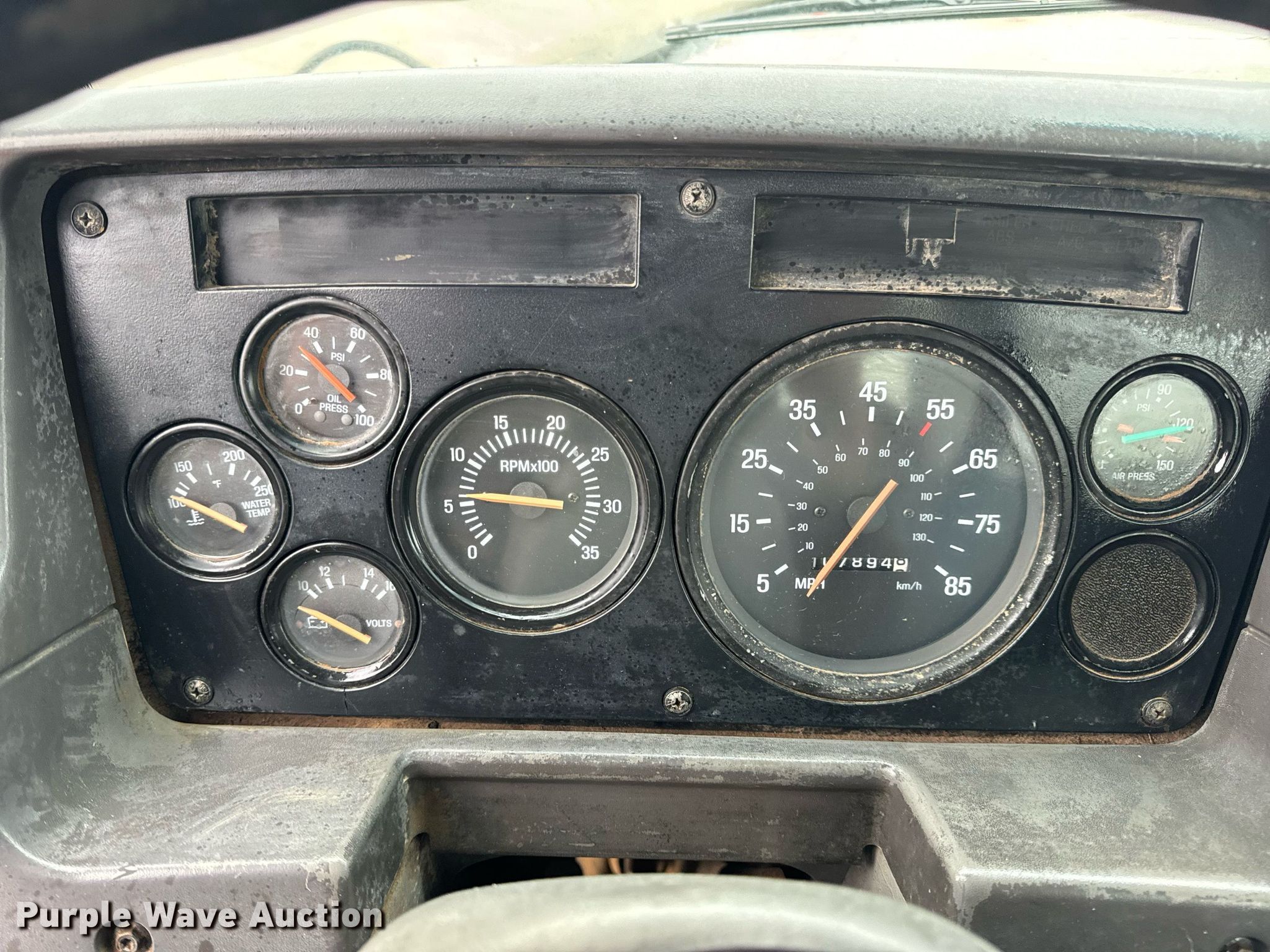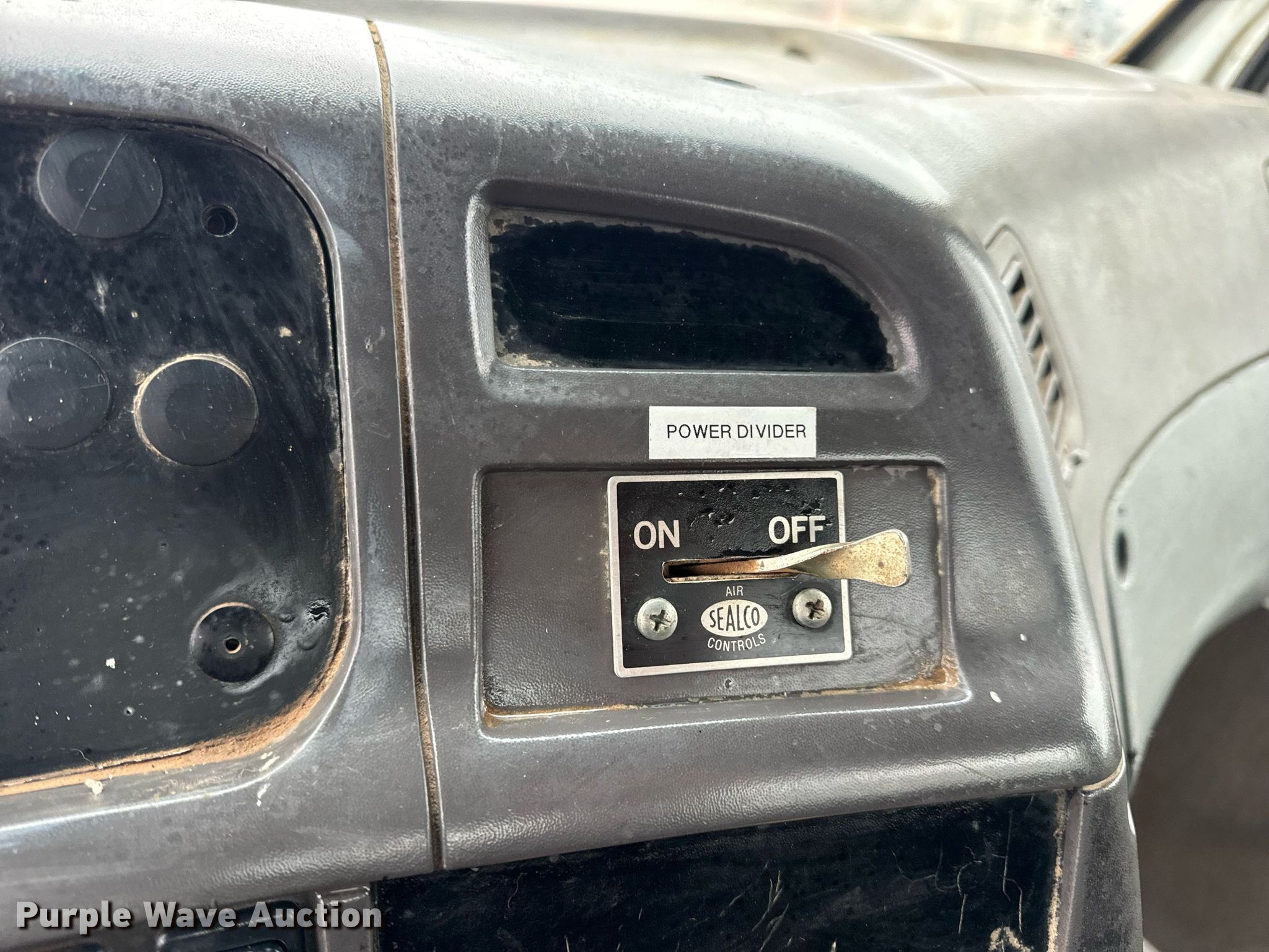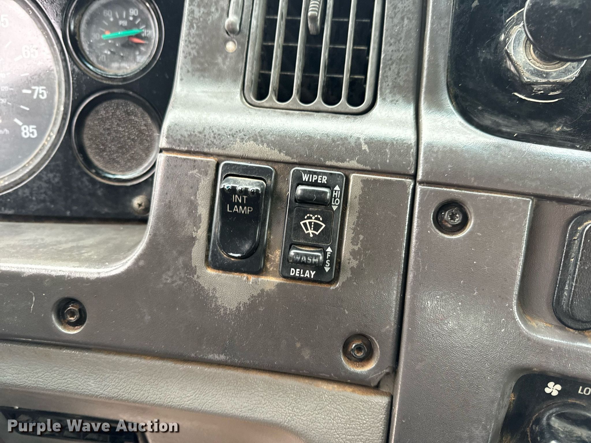 1999 Sterling A9513 water truck. Miles: 107,895 on odometer, VIN: 2FWWJWDA6XAF59115, Unit #: 5-006. Engine Caterpillar C12, Serial: 2KS05714, Displacement: 12..0L, Cylinders: 6, Fuel type: Diesel, HP: 370, kW: 276, Engine brake. Transmission Eaton Fuller, Manual, Speed: 13. Chassis Axles: Tandem, Differential lock: Inter-axle, Suspension: Spring over walking beam, Brakes: Air, PTO. Interior AC, Heat. Features Bed / tank 16' 1" L x 93.5" W, Spray bar: Front, Rear, Side discharge, Hose reel, Top fill, Rear drain: 2". Tires Size: 11R24.5. Missouri title. Title distribution may be delayed up to 30 days from verification of funds. Emery Sapp & Sons, Inc... Columbia, MO 65202