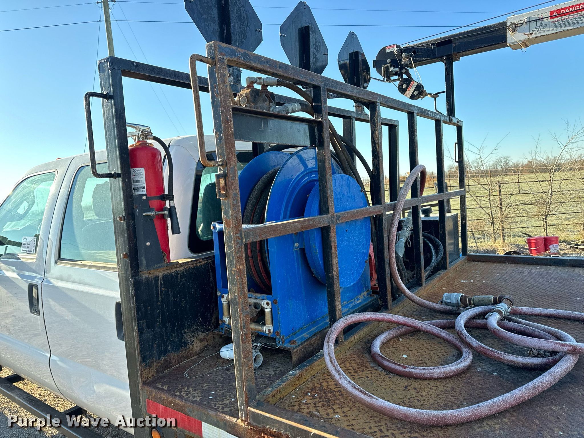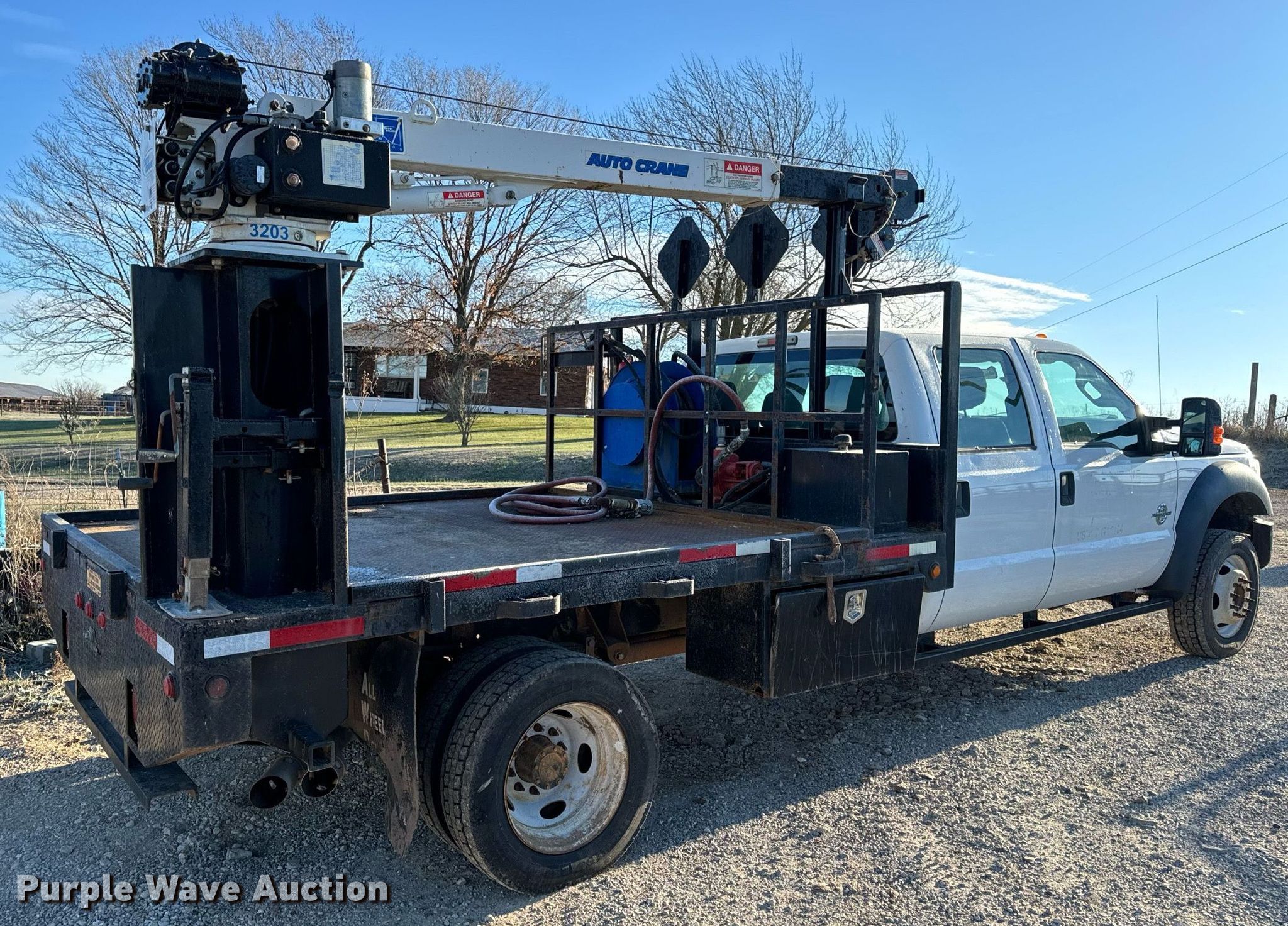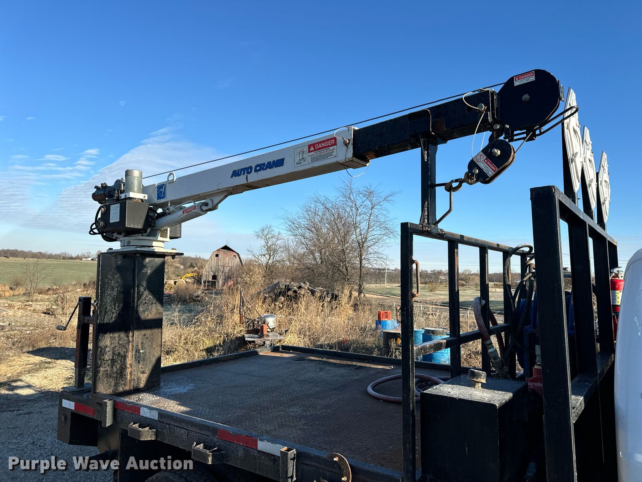 2013 Ford F550 XL utility / service truck. Miles: 177,990 on odometer, VIN: 1FD0W5HT6DEB86822. Engine Displacement: 6.7L V8 OHV, Cylinders: 8, Fuel type: Diesel. Transmission Automatic. Chassis Four wheel drive, Axles: Single, Suspension: Spring, Brakes: Hydraulic, PTO, GVWR: 19,500 lbs. Interior AC, Heat, Heated mirrors, Power windows, Power locks, Cruise control, Auxiliary controls, Brake controller. Features Bed 11' L x 96" W, Oil/lube system Hose reels, Pump, Crane Auto Crane 3203, Maximum boom length: 76' Maximum lift capacity: 3,200 lbs.. Tires Size: 225/70R19.5. Missouri title. Title distribution may be delayed up to 14 days from verification of funds. Pat Turpin Excavating. Russellville, MO 65074