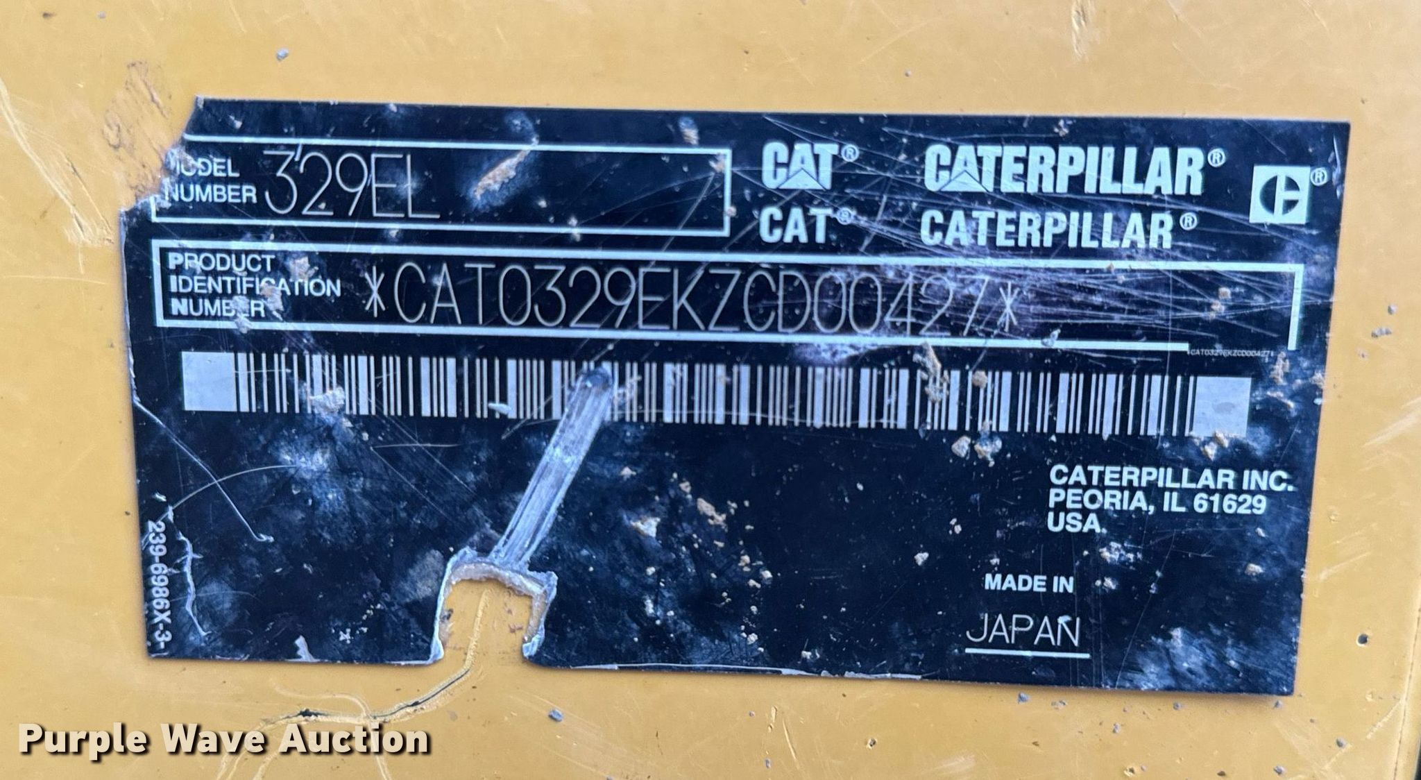 Purple Wave is selling a used Hydraulic Excavator in Missouri. This item is a 2014 Caterpillar 329EL excavator with the following: Hours: 9,526 on meter, Serial: CAT0329EKZCD00427