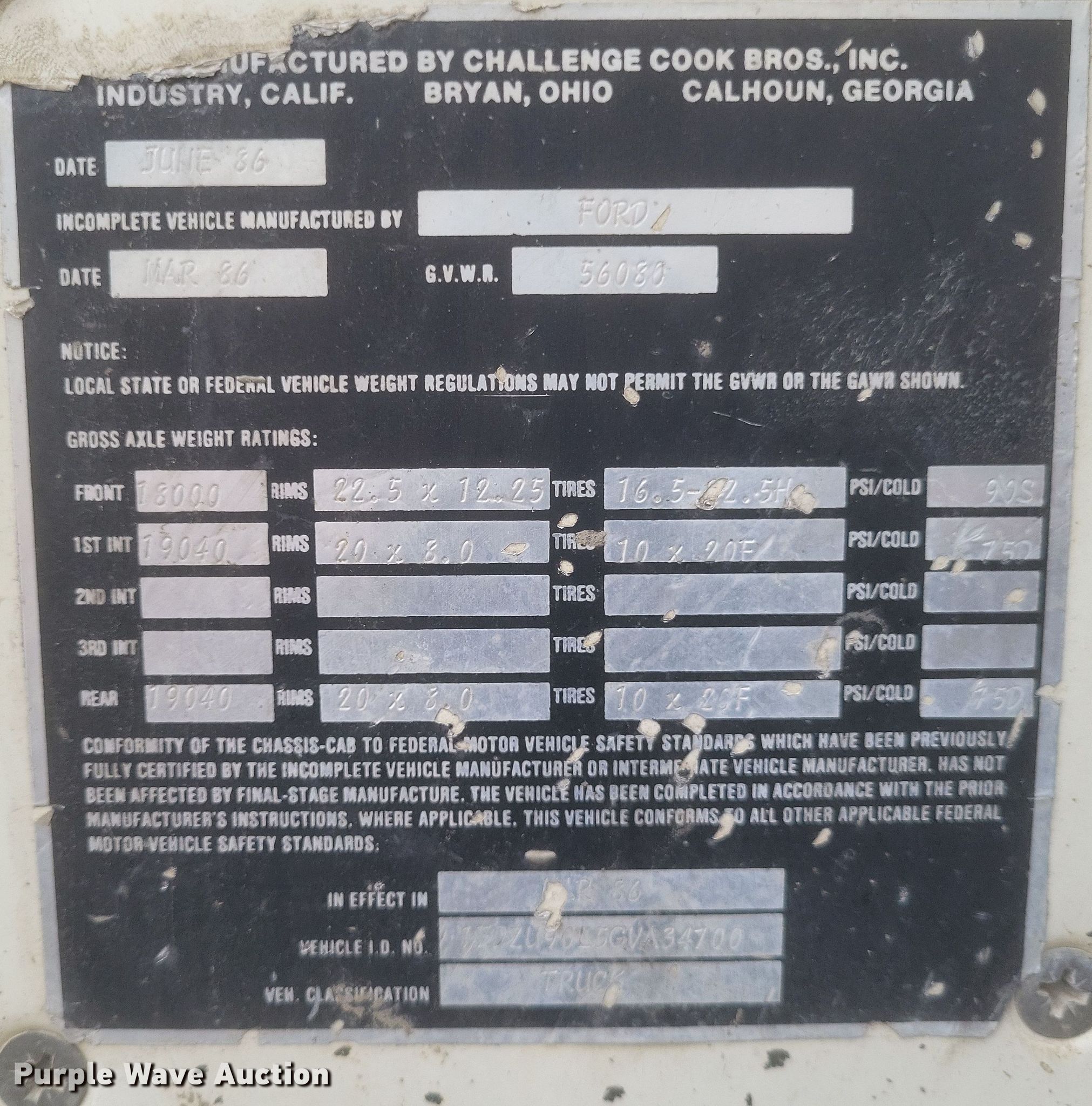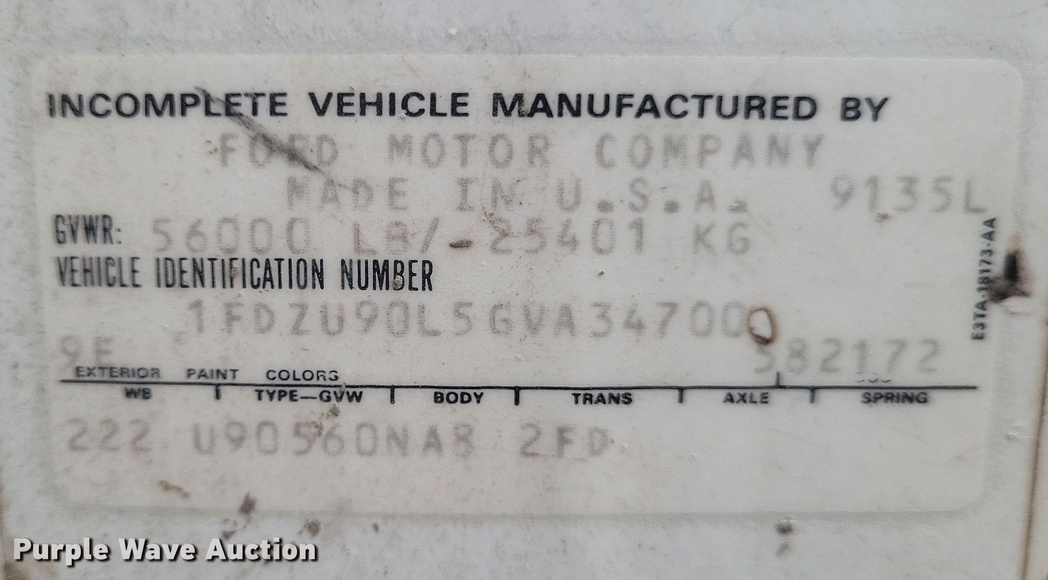• VIN: 1FDZU90L5GVA34700