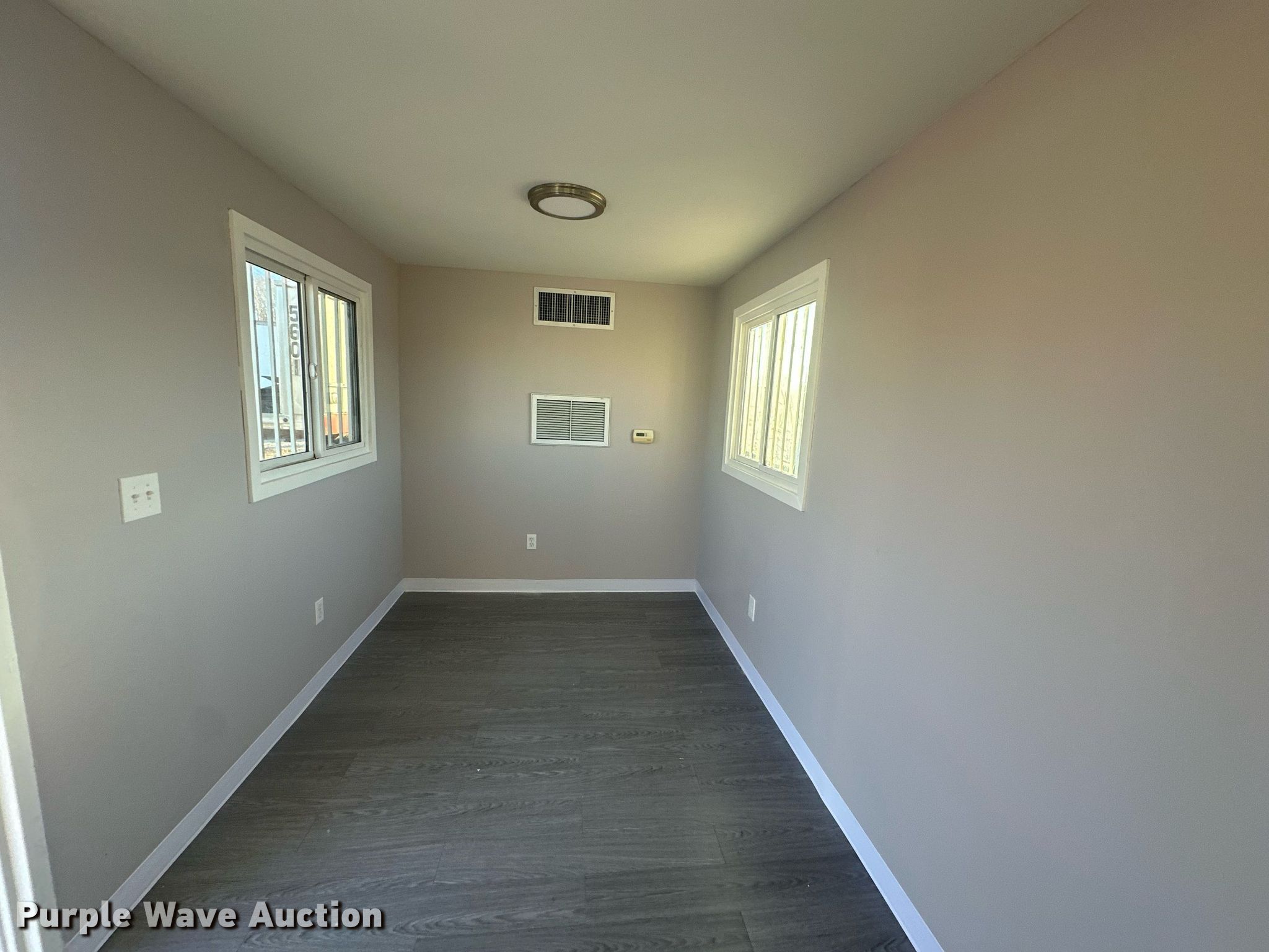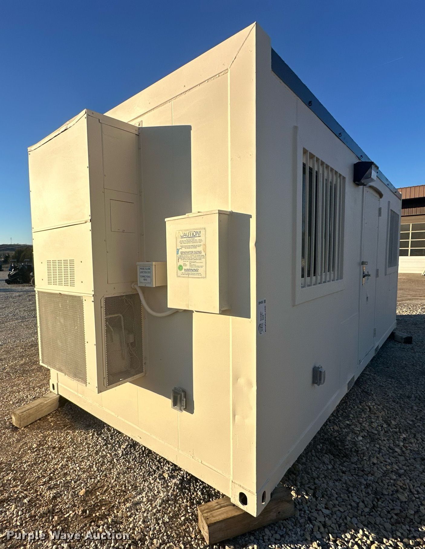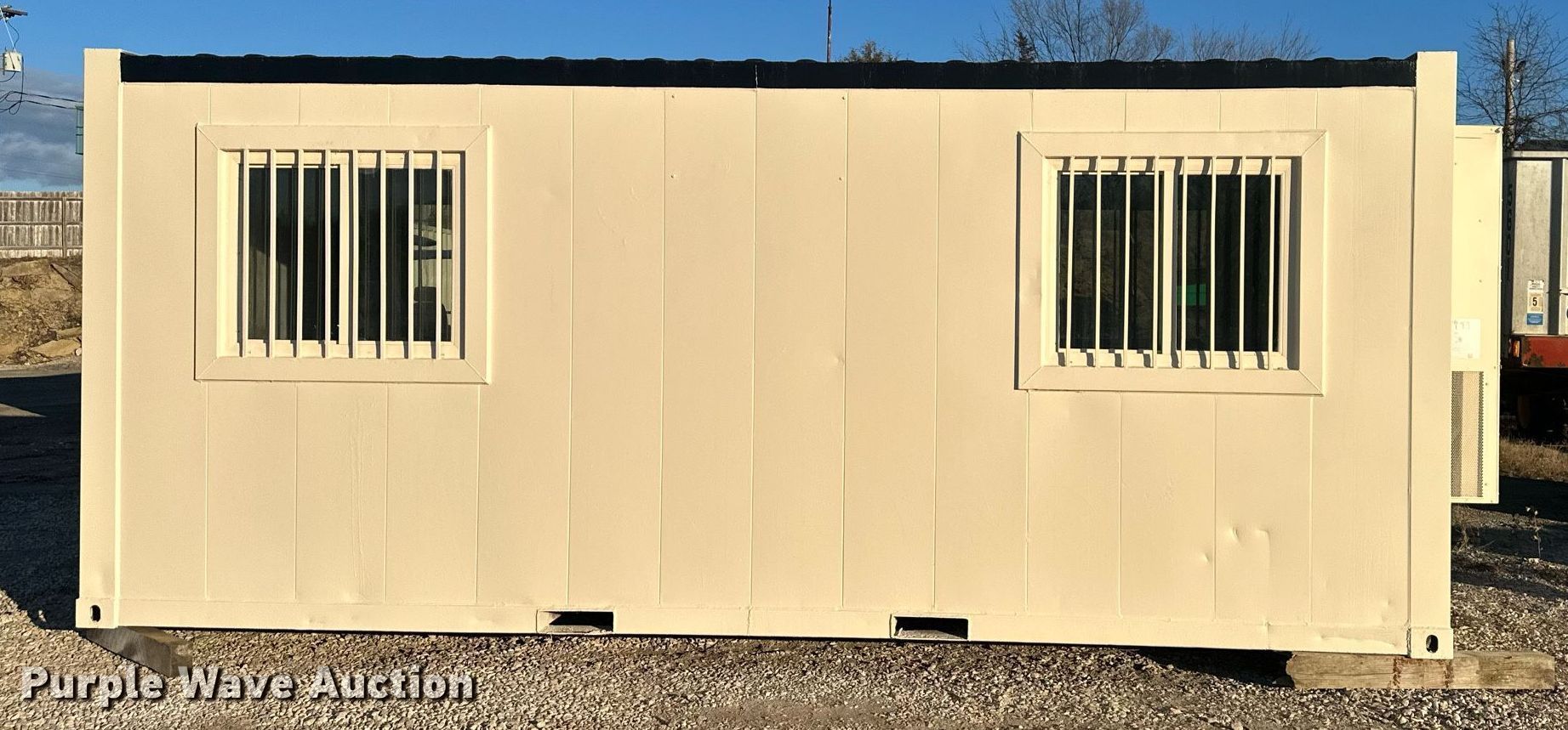 Purple Wave is selling a used Storage or Shipping Container in Kansas. This item is a Office container with the following: Length: 20', Insulated, AC, Heat
