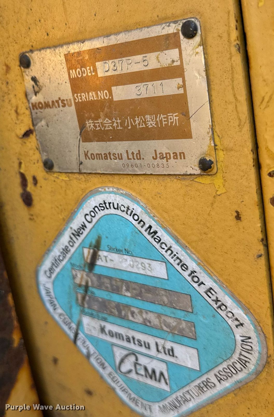Purple Wave is selling a used Crawler Dozer in Missouri. This item is a 1997 Komatsu D37P-5 dozer with the following: Hours: 7,845 on meter, Serial: 3711