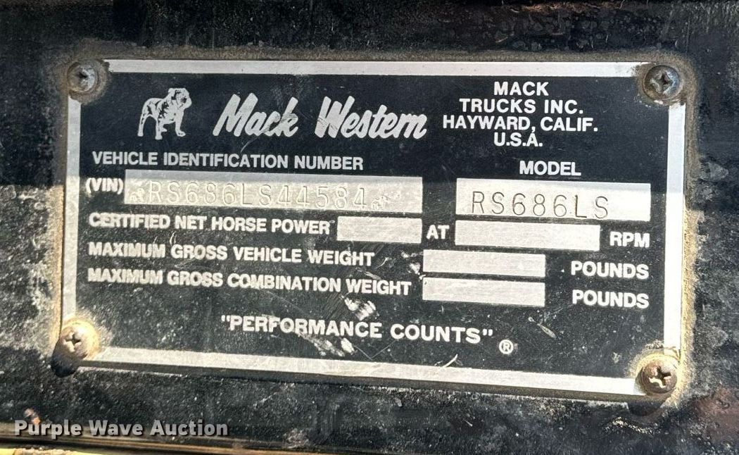 Purple Wave is selling a used Construction Dump Truck in Kansas. This item is a 1979 Mack dump truck with the following: Miles: 127,046 on odometer, Hours: 7,459 on meter, VIN: RS686LS44584
