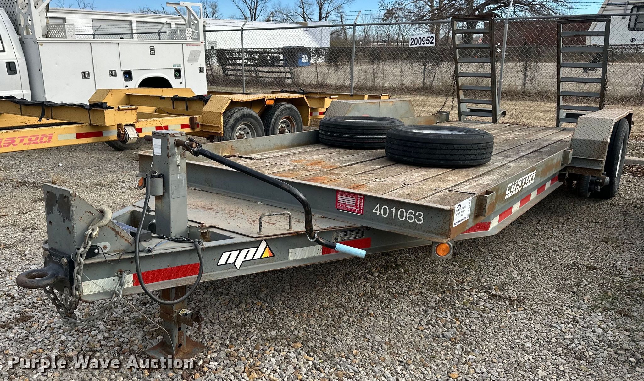 2017 Custom Heavy Haul 5T182HDBW equipment trailer. VIN: 1L9PU1820HG423544, Unit #: 401063. Dimensions Overall: 22' L x 102" W, Deck: 18' L x 81" W, Ramps: Manual Length: 60". Features Deck type: Wood. Chassis Hitch: Pintle, Landing gear: Single, Suspension: Spring, Brakes: Electric, Axles: Tandem. Tires Steel wheels, Size: 235/80R16. Notes Axle issue, bent, Non-operational unit. Titles will be distributed after confirmation of payment and removal. Kansas title. Title distribution may be delayed up to 30 days from verification of funds. NPL Construction. Topeka, KS 66608