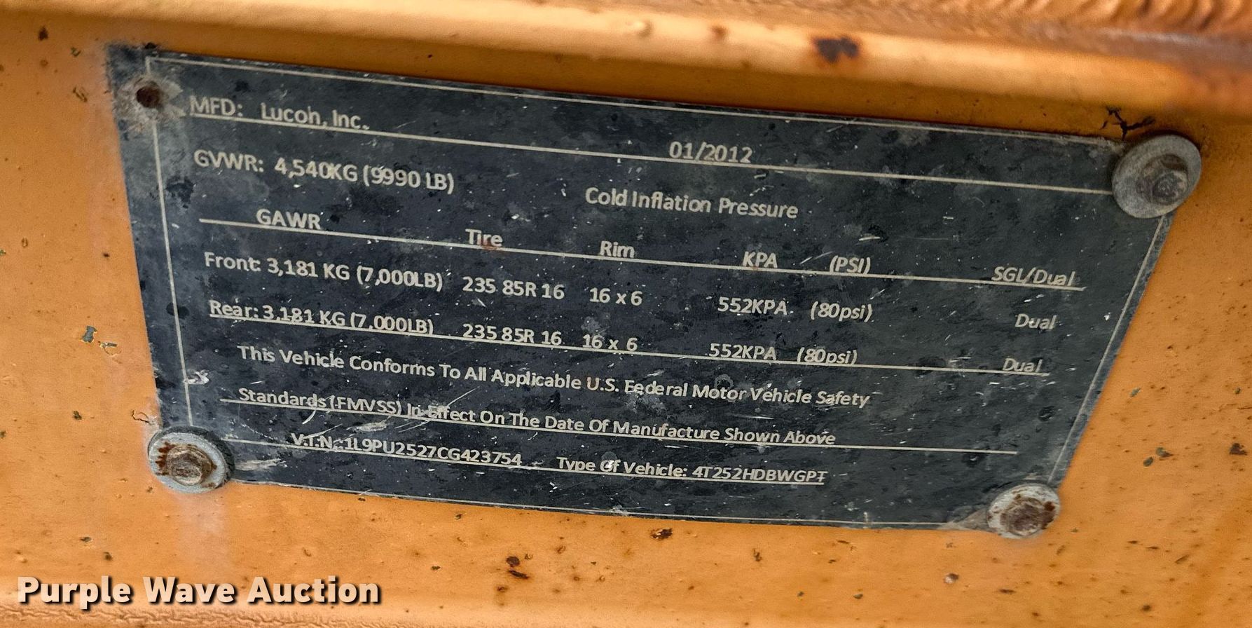 2012 Custom Heavy Haul 4T252HDBWGPT pole trailer. VIN: 1L9PU2527CG423754, Unit #: 500287. Dimensions Overall: 30' L x 102" W, Deck: 26' L x 102" W. Features Deck type: Steel, Adjustable deck length. Chassis Hitch: Pintle, Landing gear: Single, Suspension: Spring, Brakes: Electric, Axles: Tandem. Tires Steel wheels, Size: 235/80R16. Titles will be distributed after confirmation of payment and removal. Kansas title. Title distribution may be delayed up to 30 days from verification of funds. NPL Construction. Topeka, KS 66608