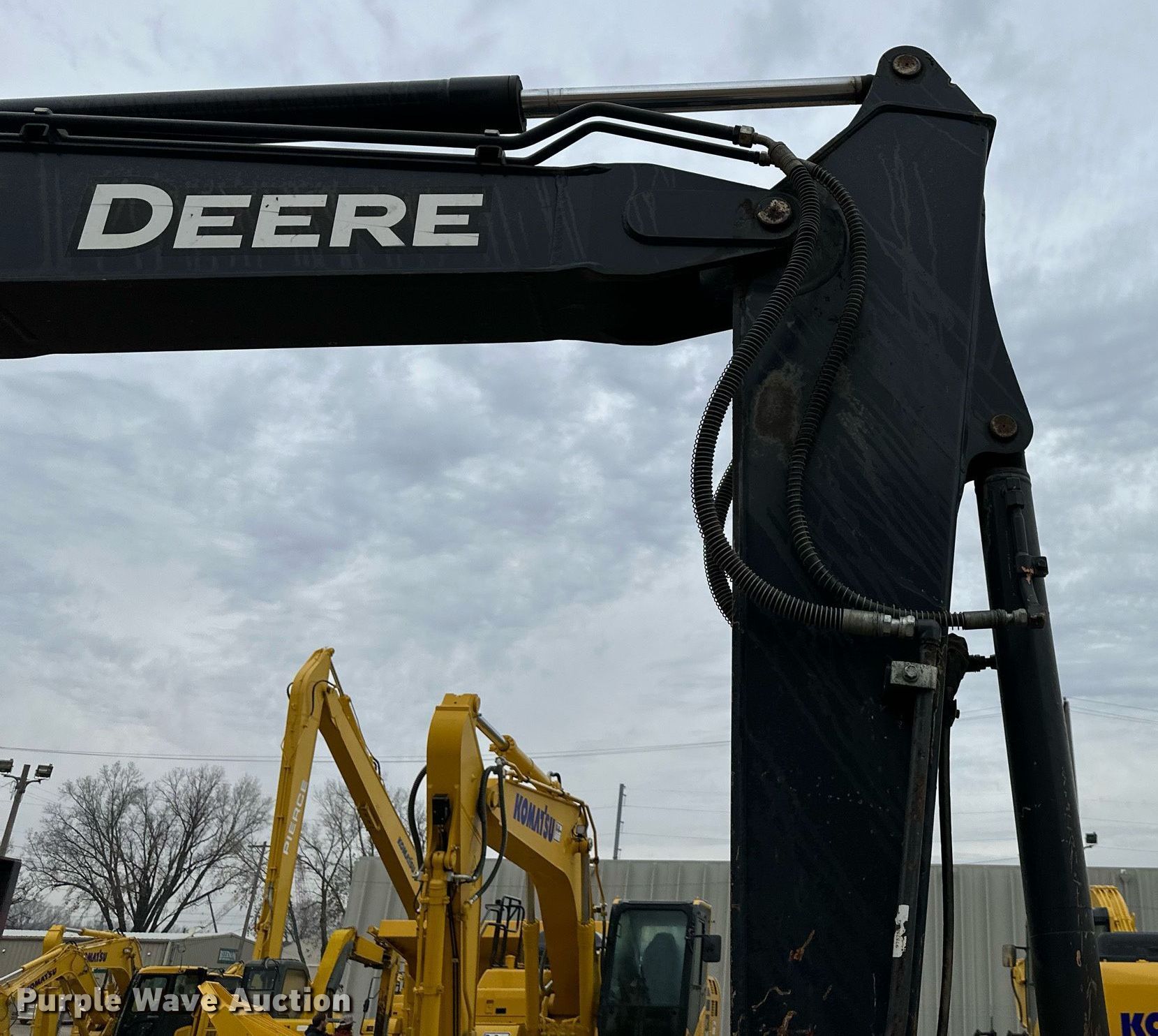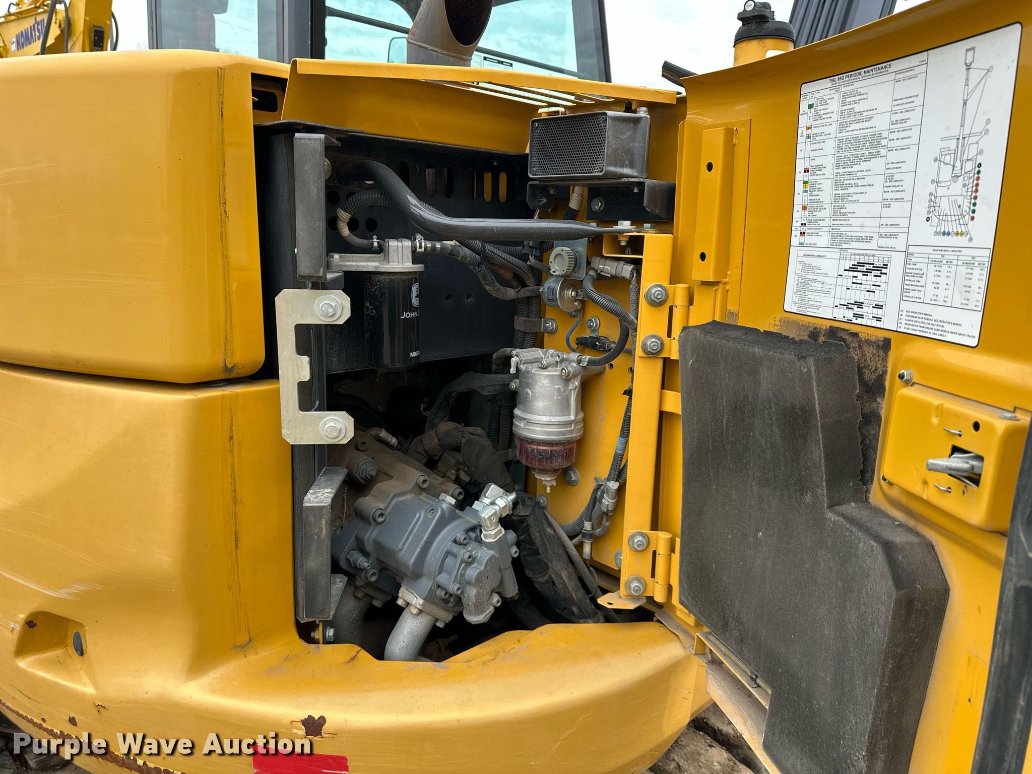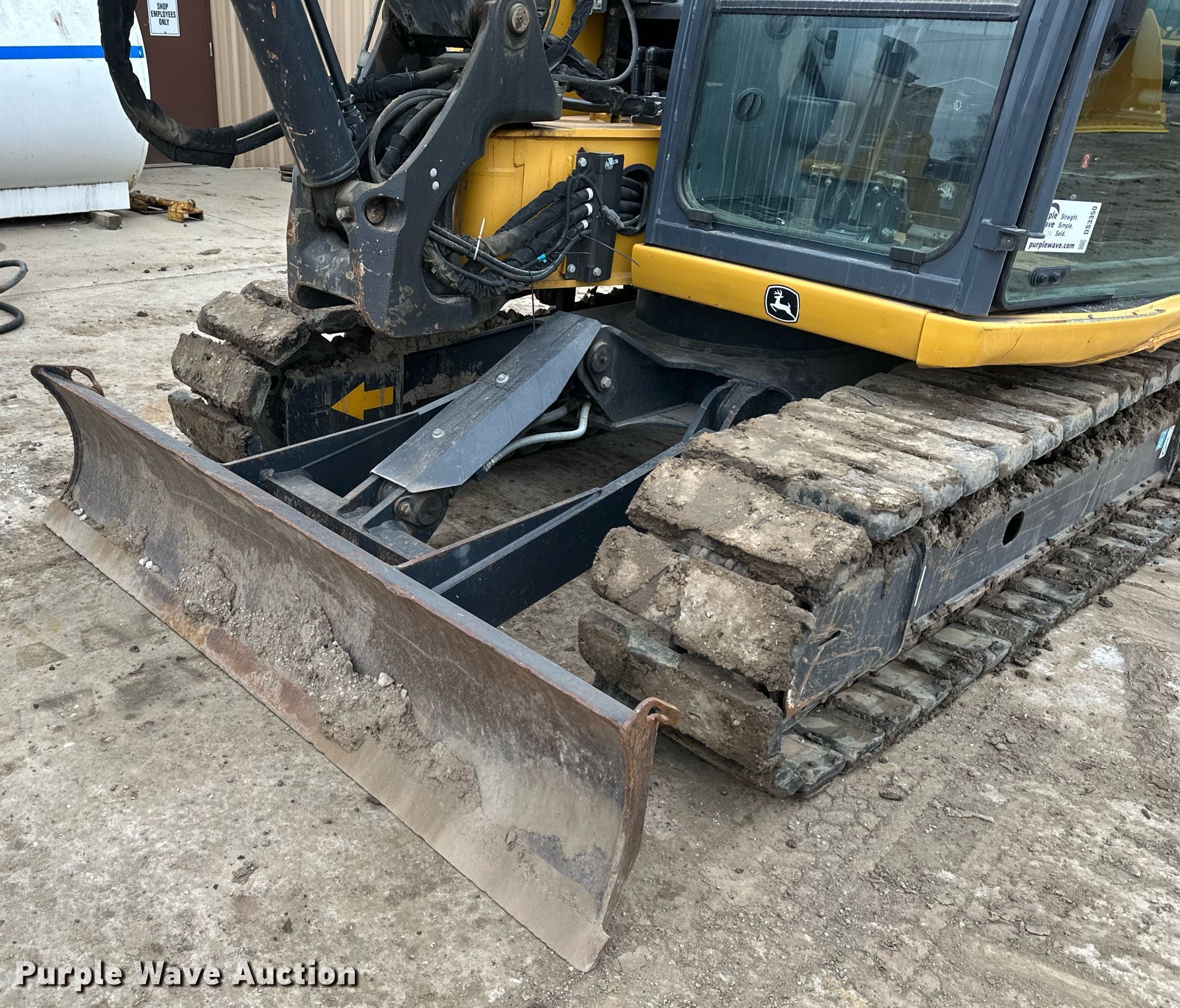 2017 John Deere 85G excavator. Hours: 1,867 on meter, Serial: 1FF085GXJHJ019063. Engine Yanmar, Displacement: 3.3L, Cylinders: 4, Fuel type: Diesel. Transmission Hydrostatic. Operators station Enclosed cab, AC, Heat. Features Auxiliary hydraulics Standard, Backfill blade Width: 87", Boom Swing, Stick Stick length: 7', Quick coupler: Hydraulic, Bucket John Deere, Width: 24", Cutting edge: Weld-on. Tracks Width: 17.5", Steel, Track pads: Rubber. RoadBuilders Machinery & Supply. Kansas City, KS 66105