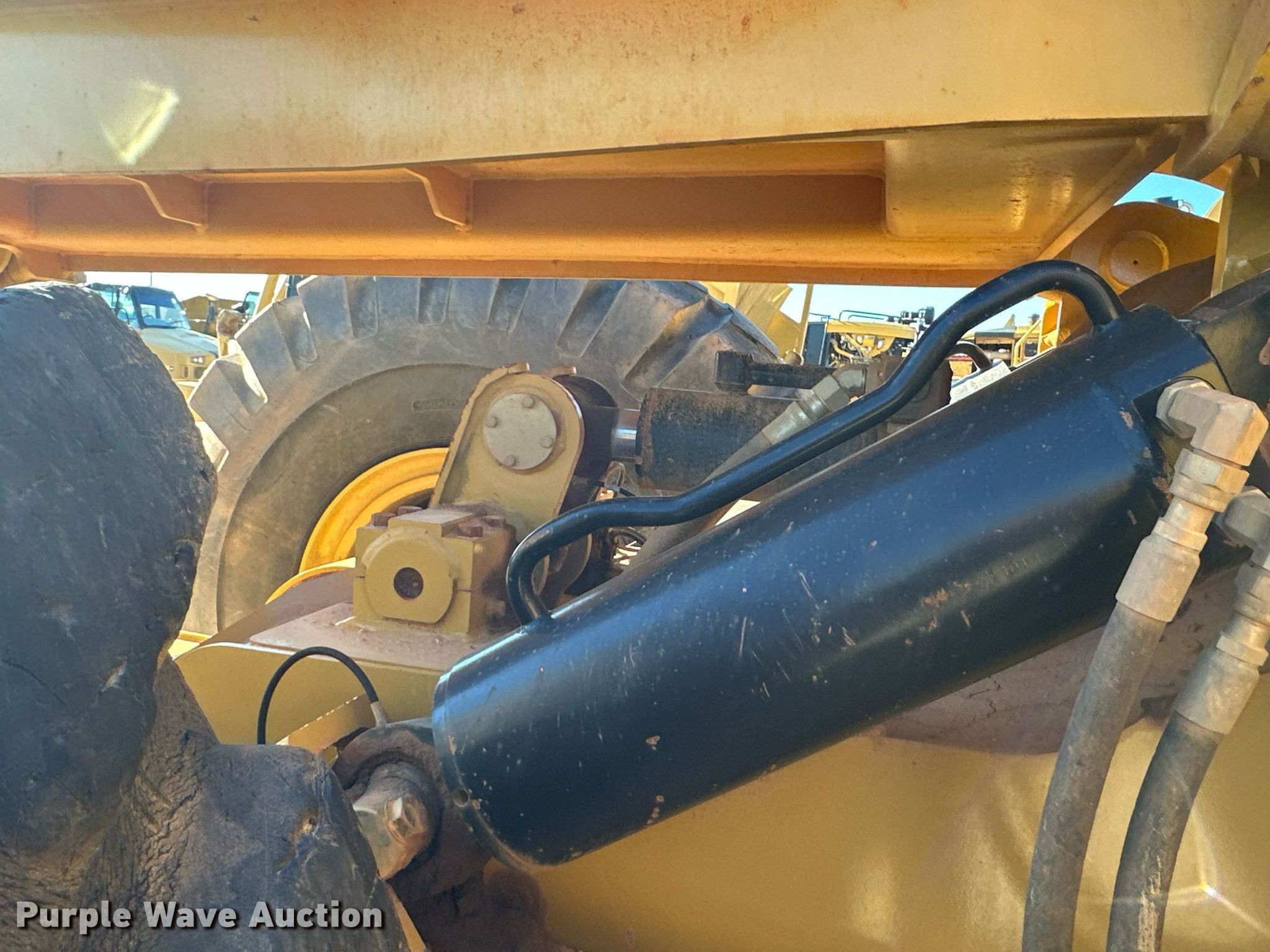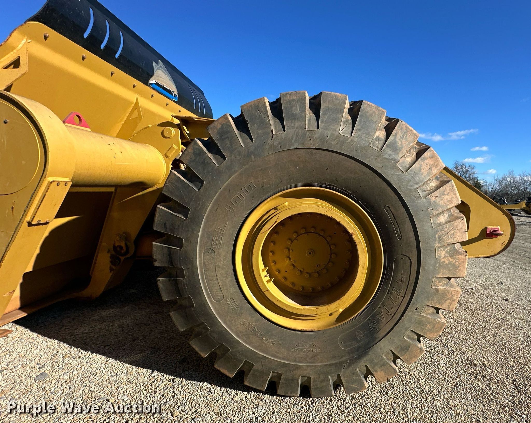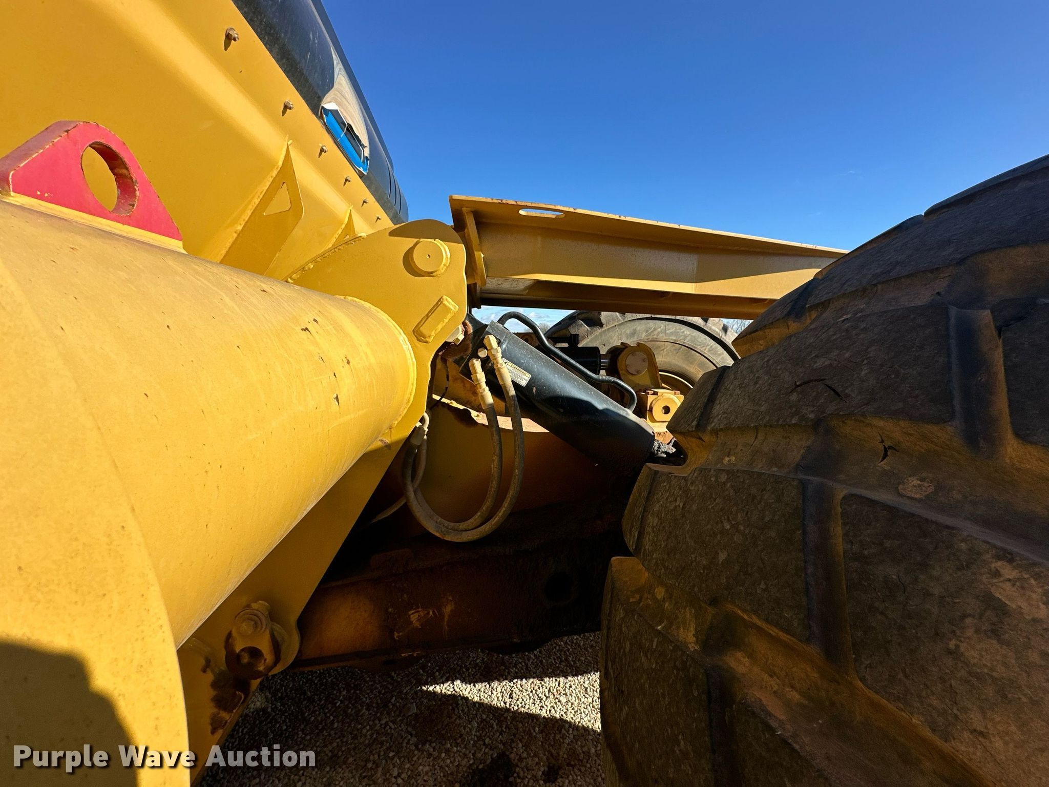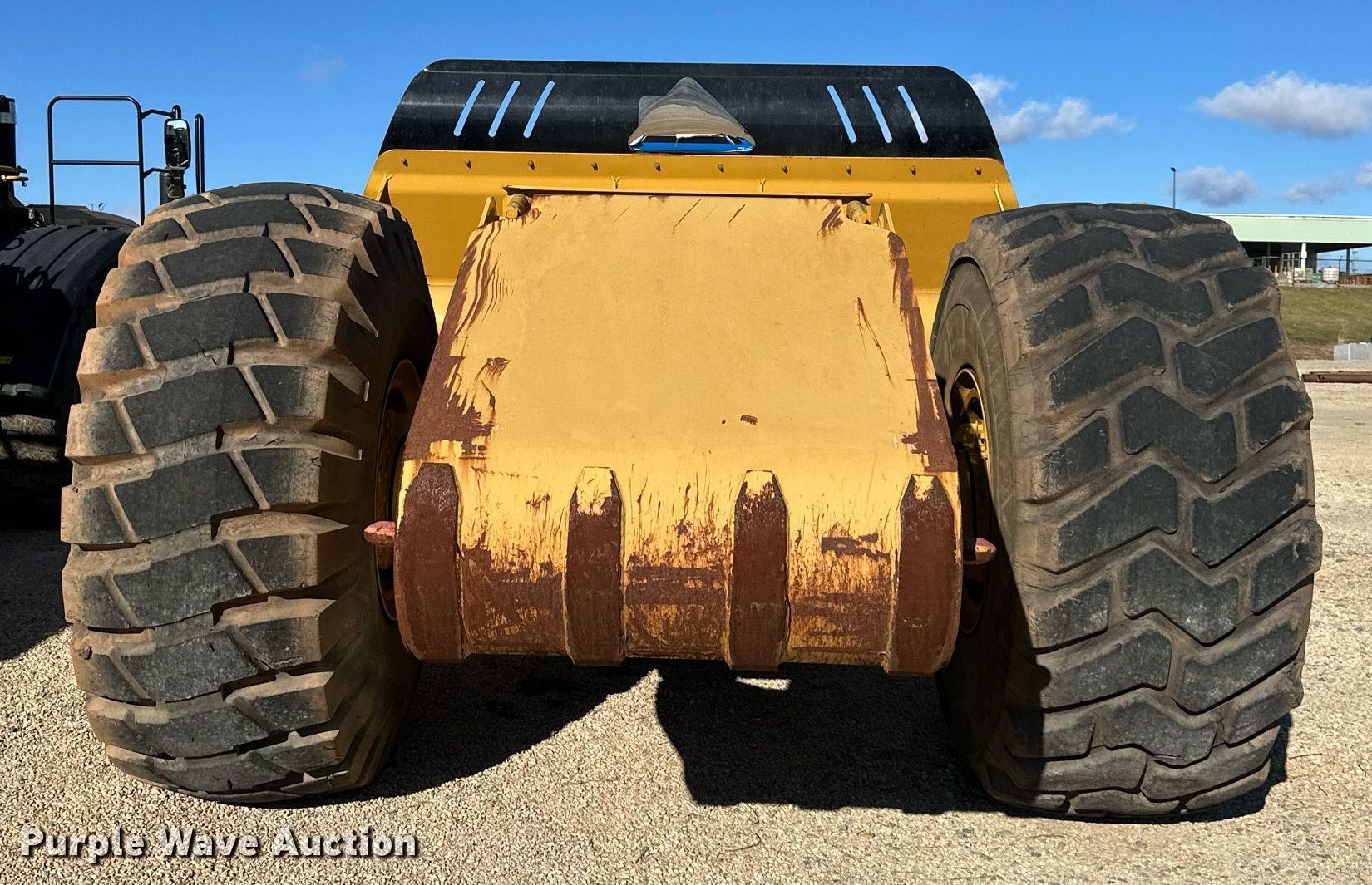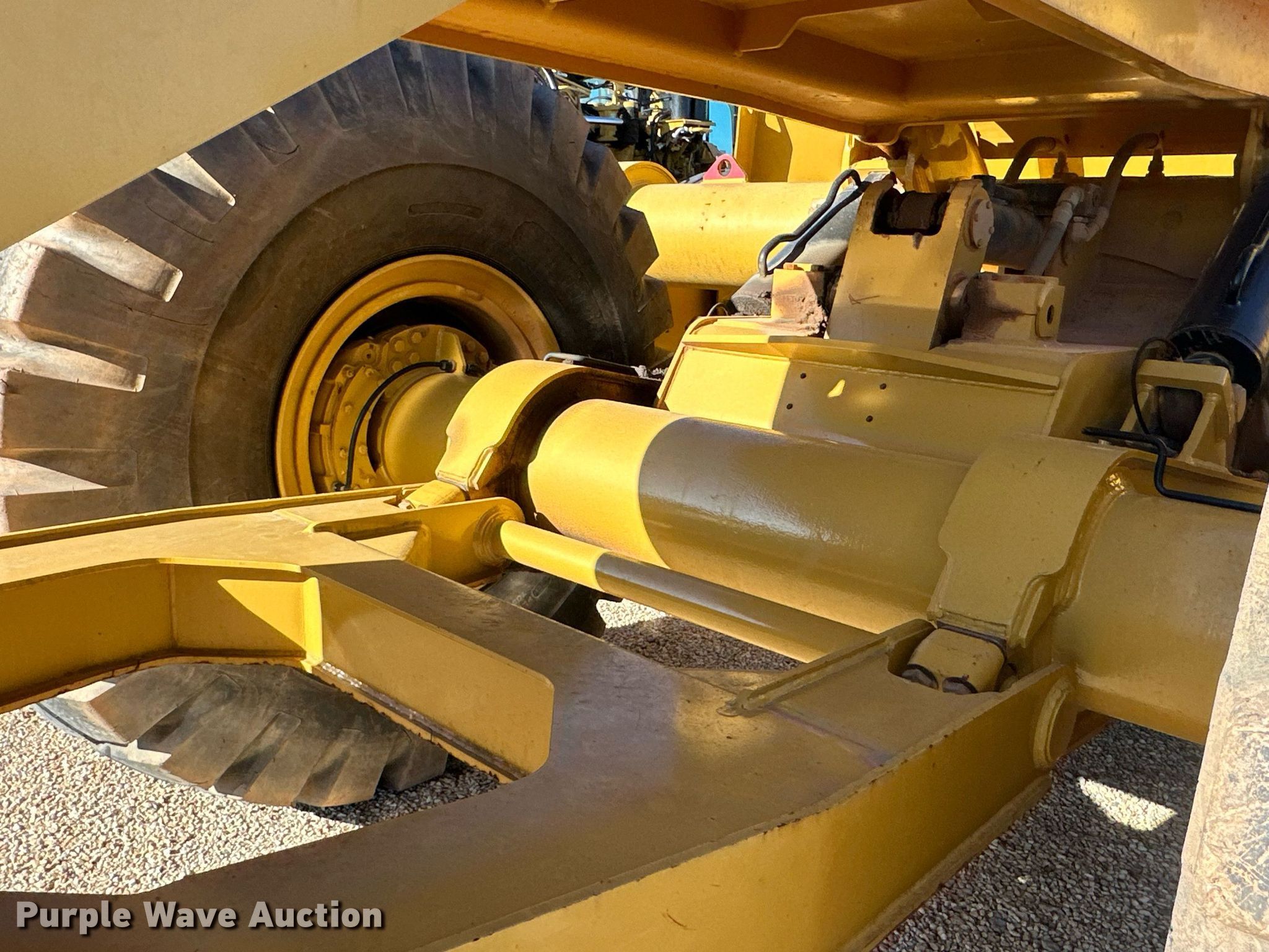 MTS MT-35 scraper. Serial: MT-35-2362-12. Chassis Brakes: Hydraulic. Features Bowl capacity: 35 cu.yd., Reversible cutting edge, Hydraulic lift, Rear push block. Tires Size: 33.25-29. Miller Springs Farm. Topeka, KS 66609