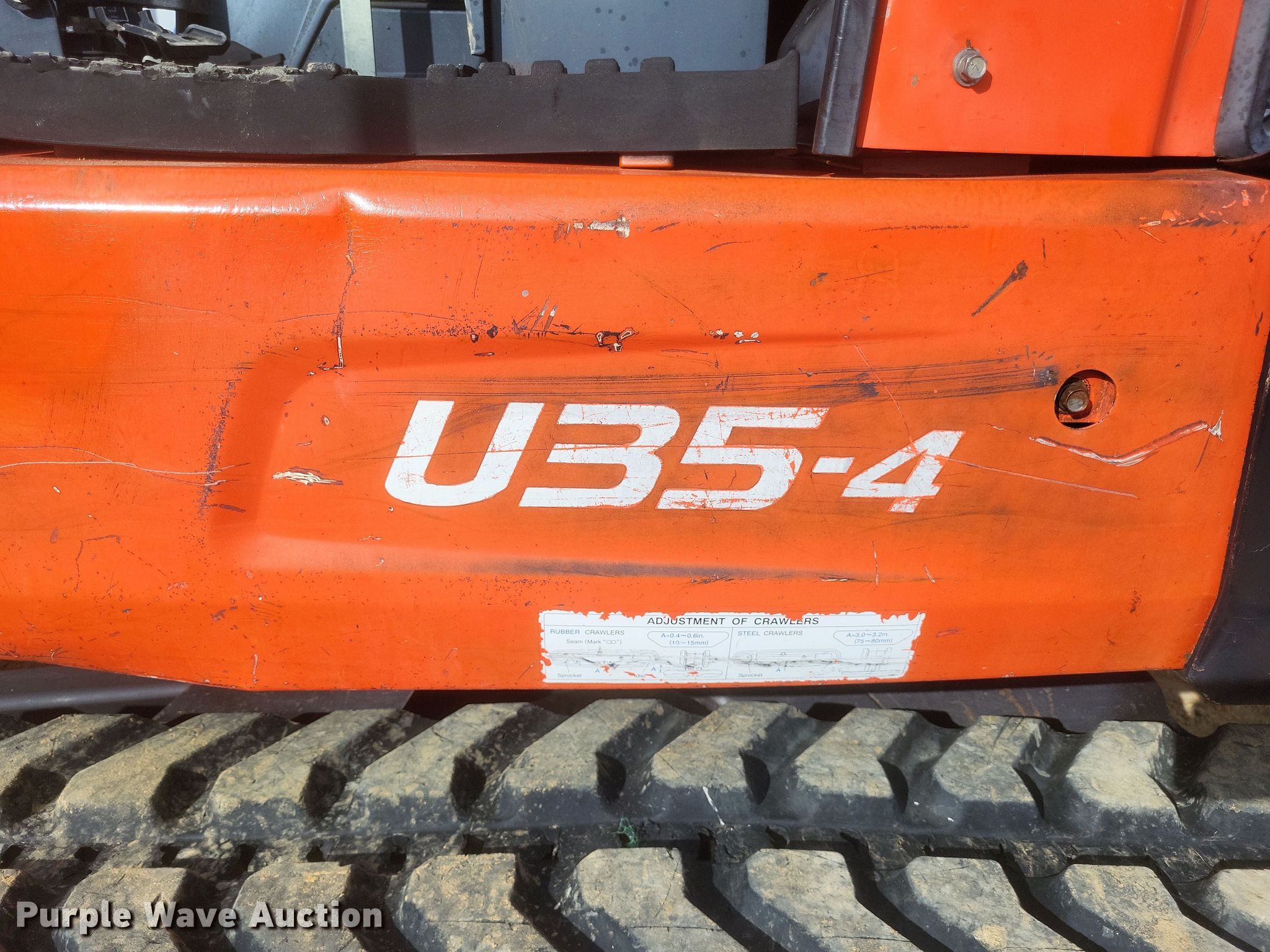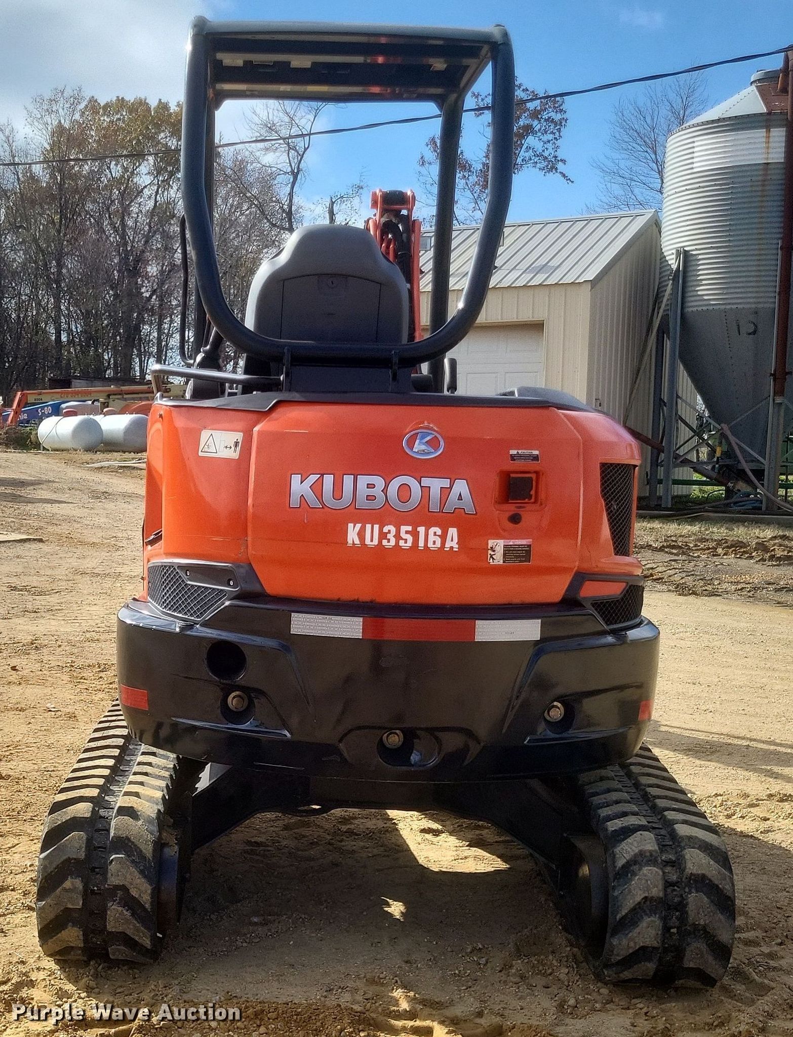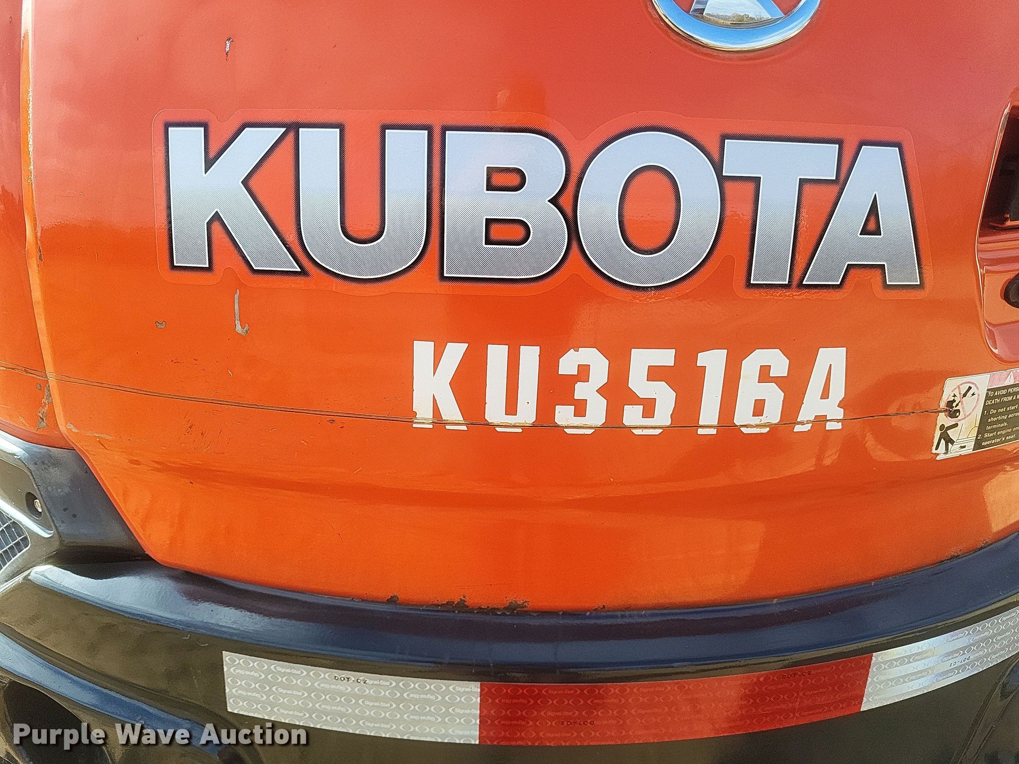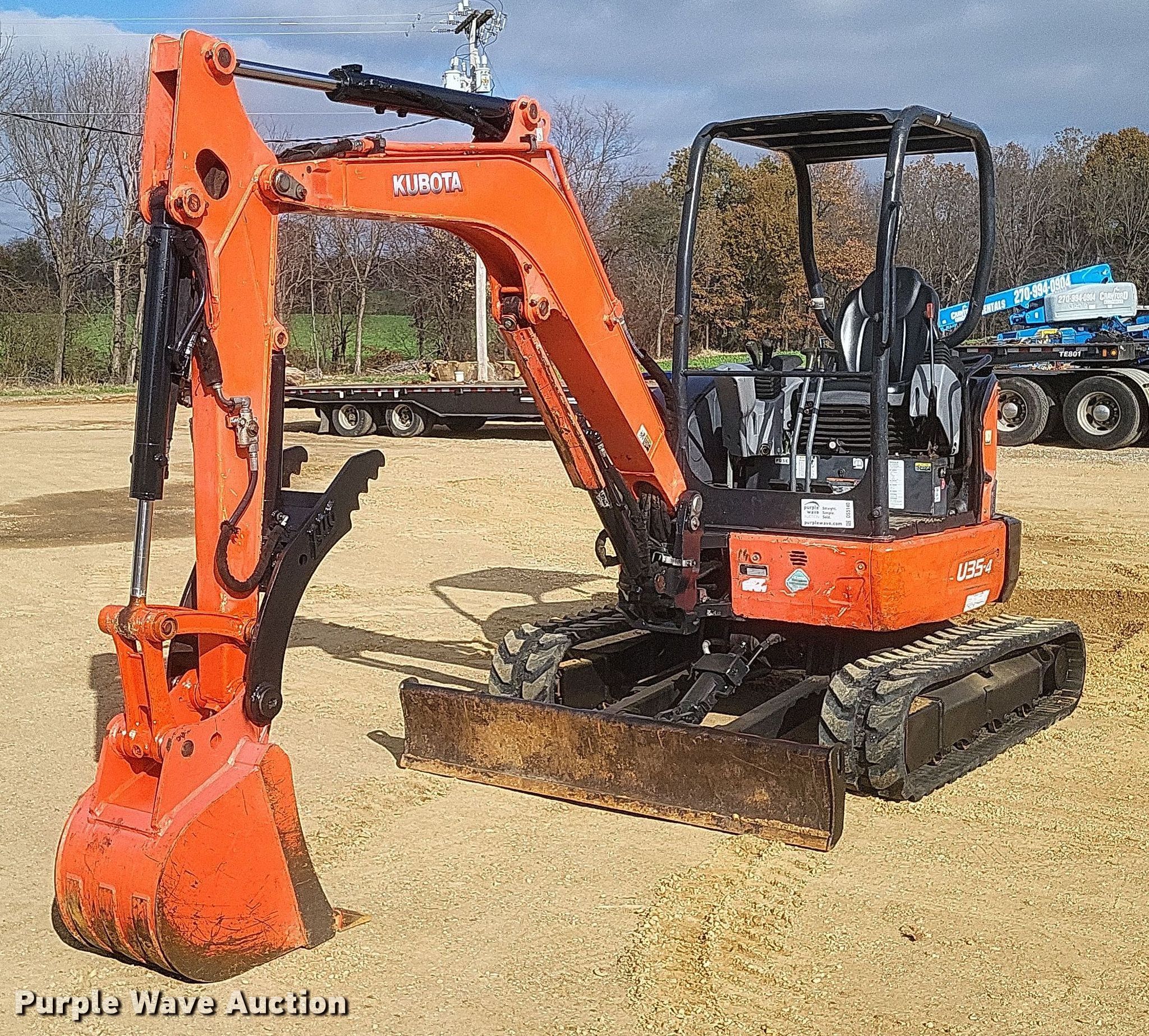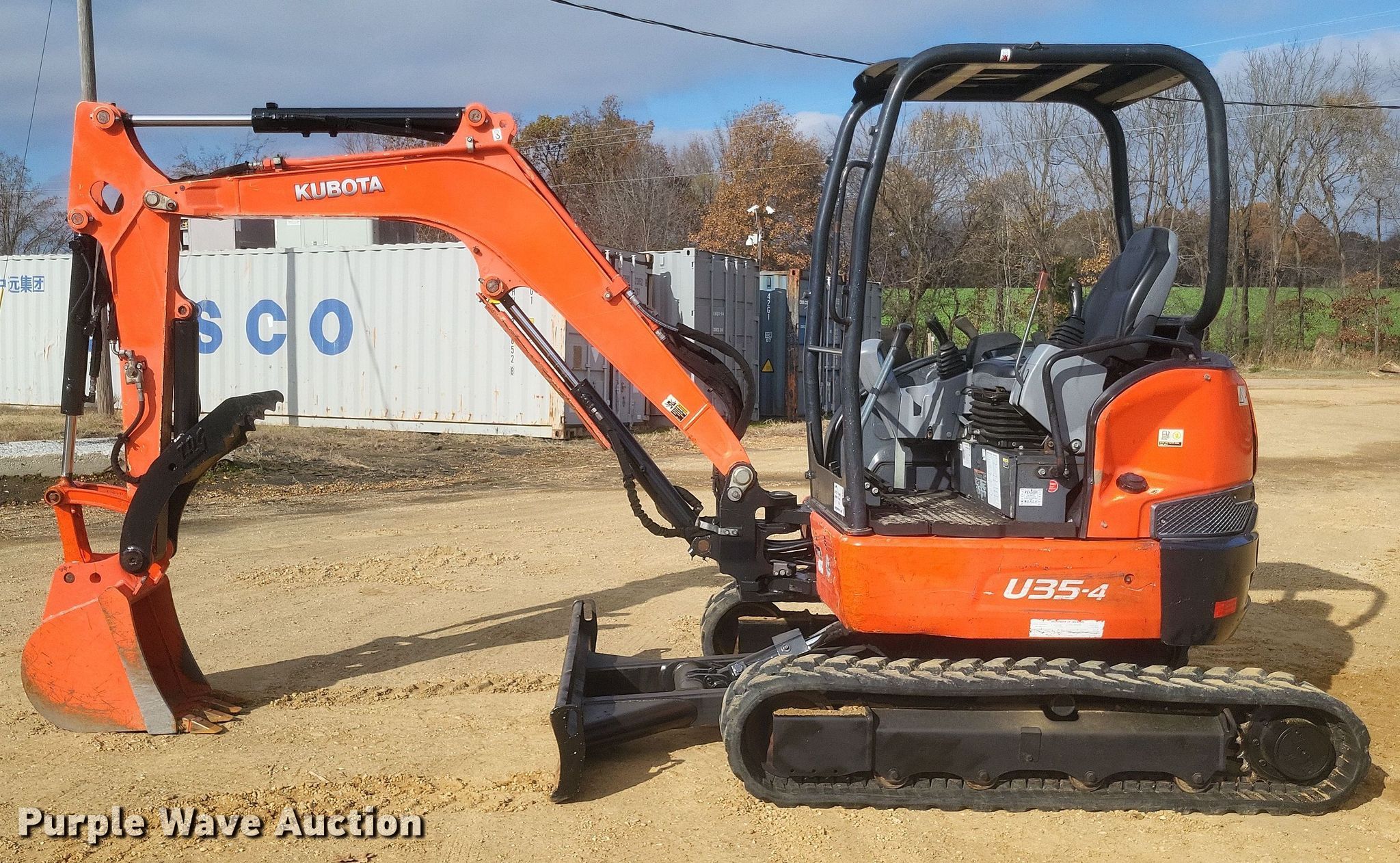 Purple Wave is selling a used Mini Excavator in Kentucky. This item is a 2016 Kubota U35-4 mini excavator with the following: Hours: 2,704 on meter, Serial: 11756, Unit #: KU3516A