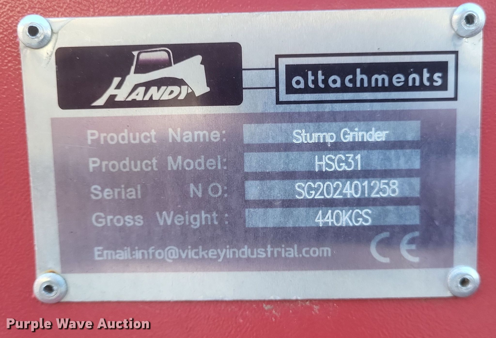 Purple Wave is selling a used Skid Steer Attach. in Missouri. This item is a 2024 Handy HSG31 skid steer stump grinder with the following: Diameter: Approx. 28"