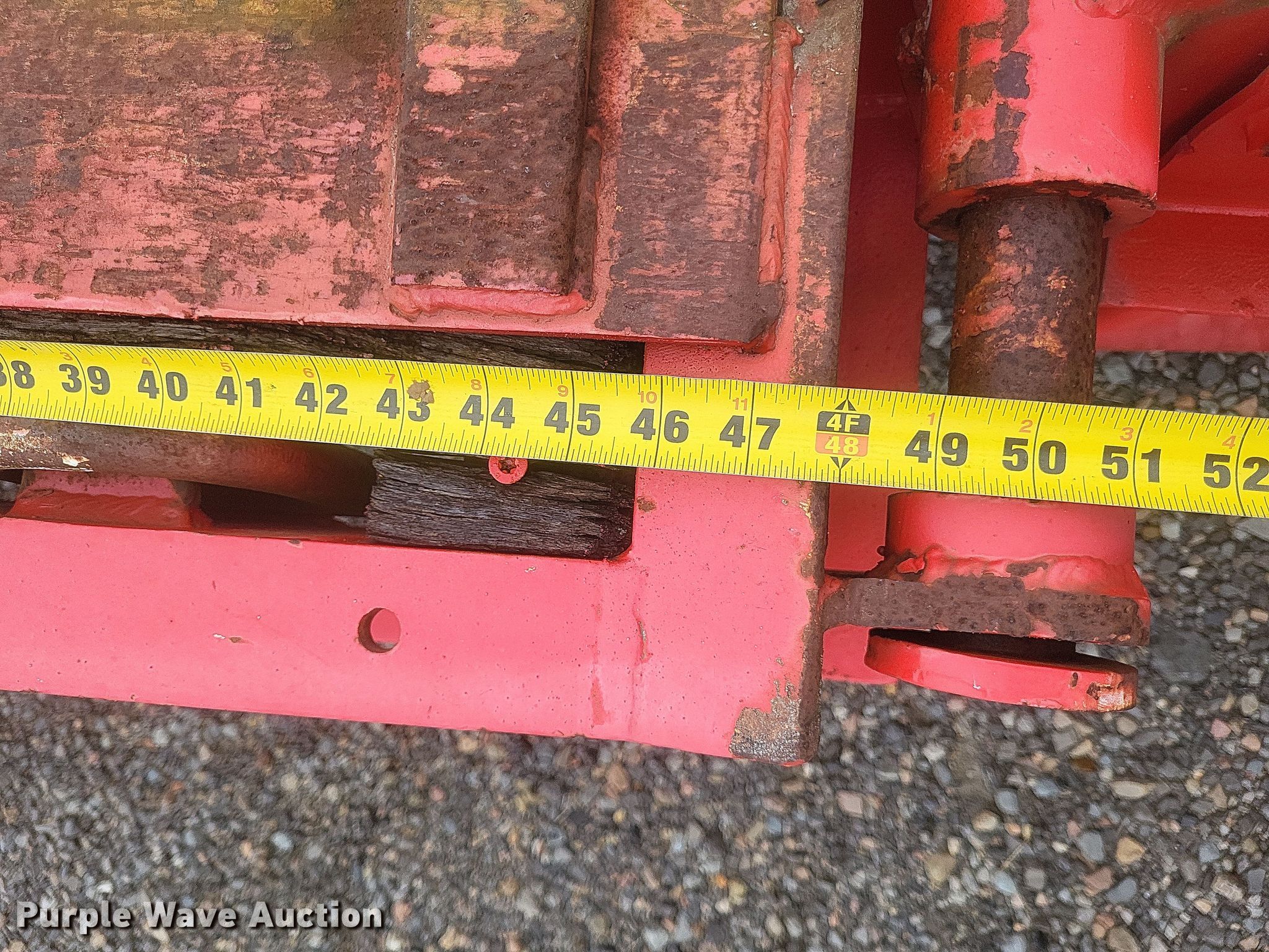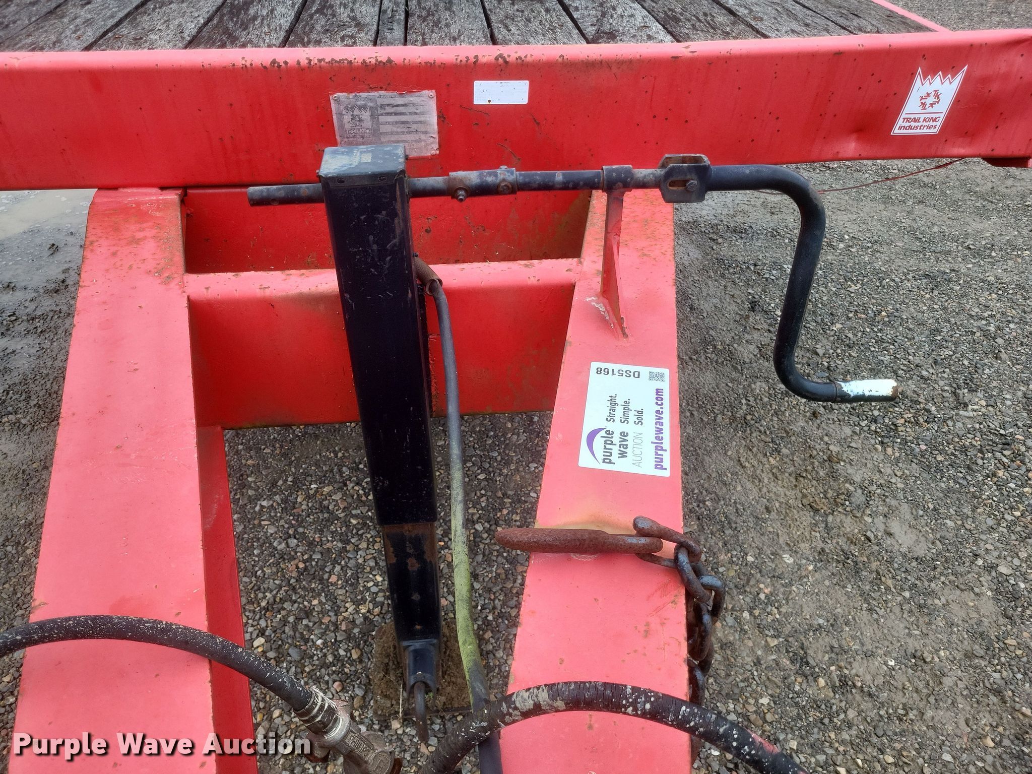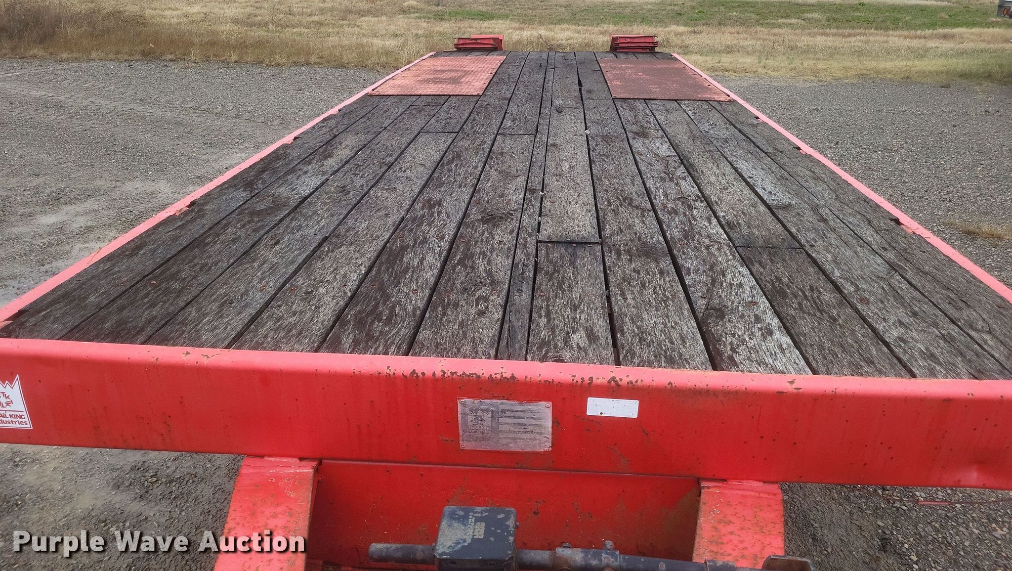 1987 Trail King TK40 equipment trailer. VIN: 1TKC02725HM108076. Dimensions Overall: 33' L x 102" W, Deck: 23' L x 102" W, Deck height: 40", Tail length: 4', Ramps: Manual Length: 5'. Features Deck type: Wood. Chassis Hitch: Pintle, Landing gear: Single, Suspension: Spring, Brakes: Air, Axles: Tandem. Tires Steel wheels, Size: 255/70R22.5. Missouri title. Title distribution may be delayed up to 30 days from verification of funds. Dumey Contracting Inc.. Benton, MO 63736