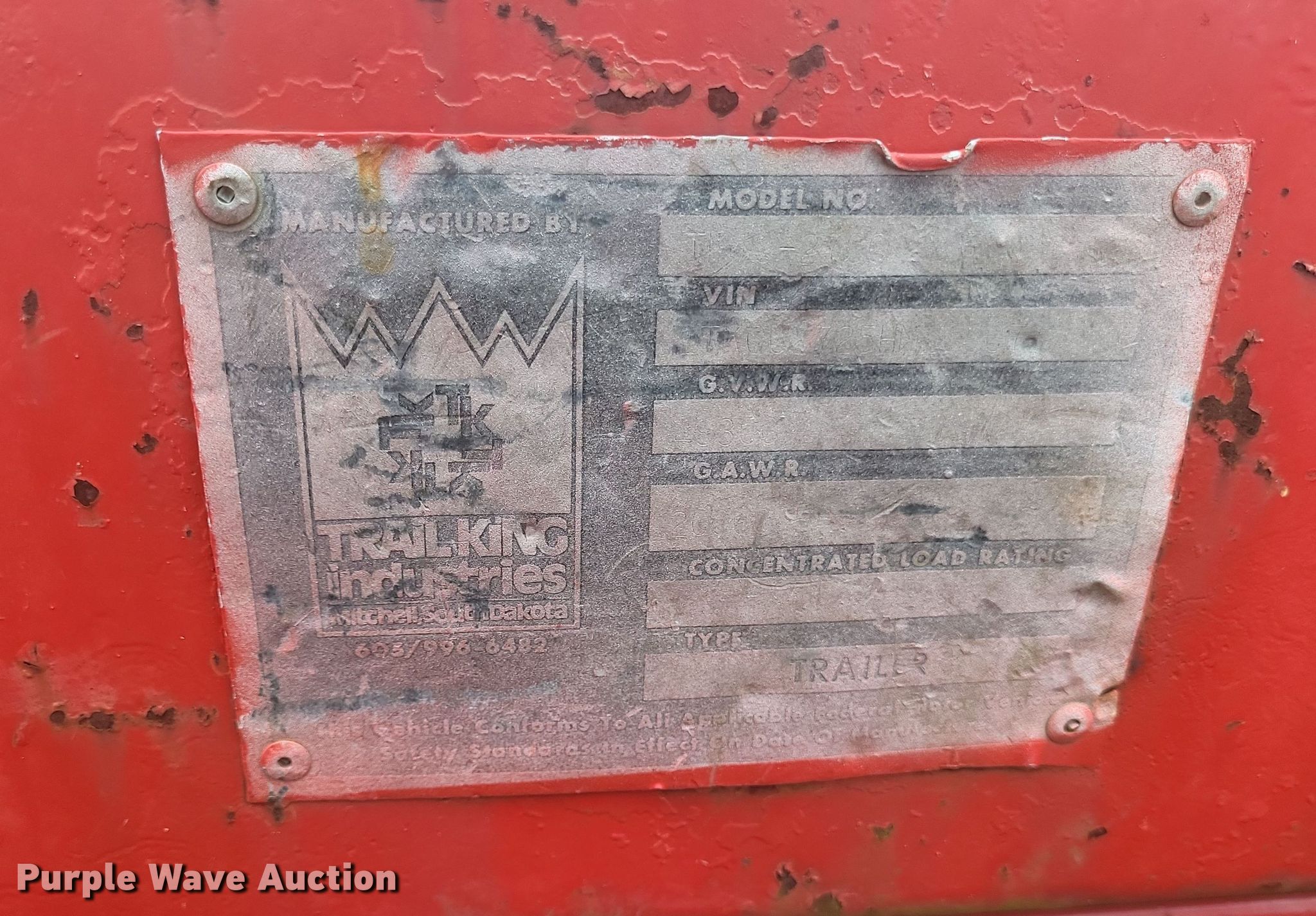 Purple Wave is selling a used Equip. Trailer in Missouri. This item is a 1987 Trail King TK40 equipment trailer with the following: VIN: 1TKC02725HM108076