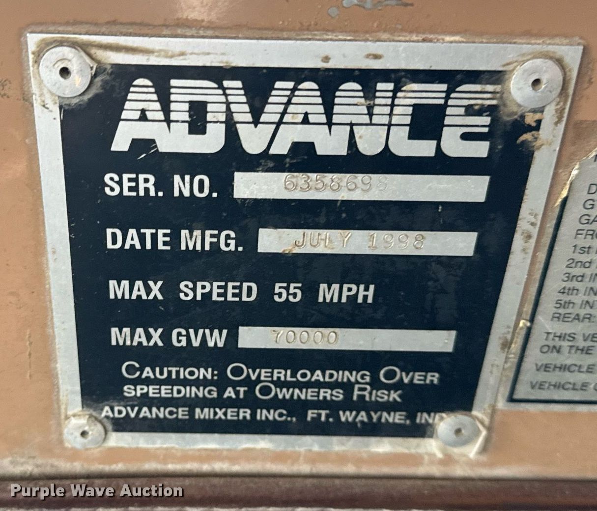 This 1998 Advance C10335AT6810 ready mix truck will sell to the highest bidder regardless of price.