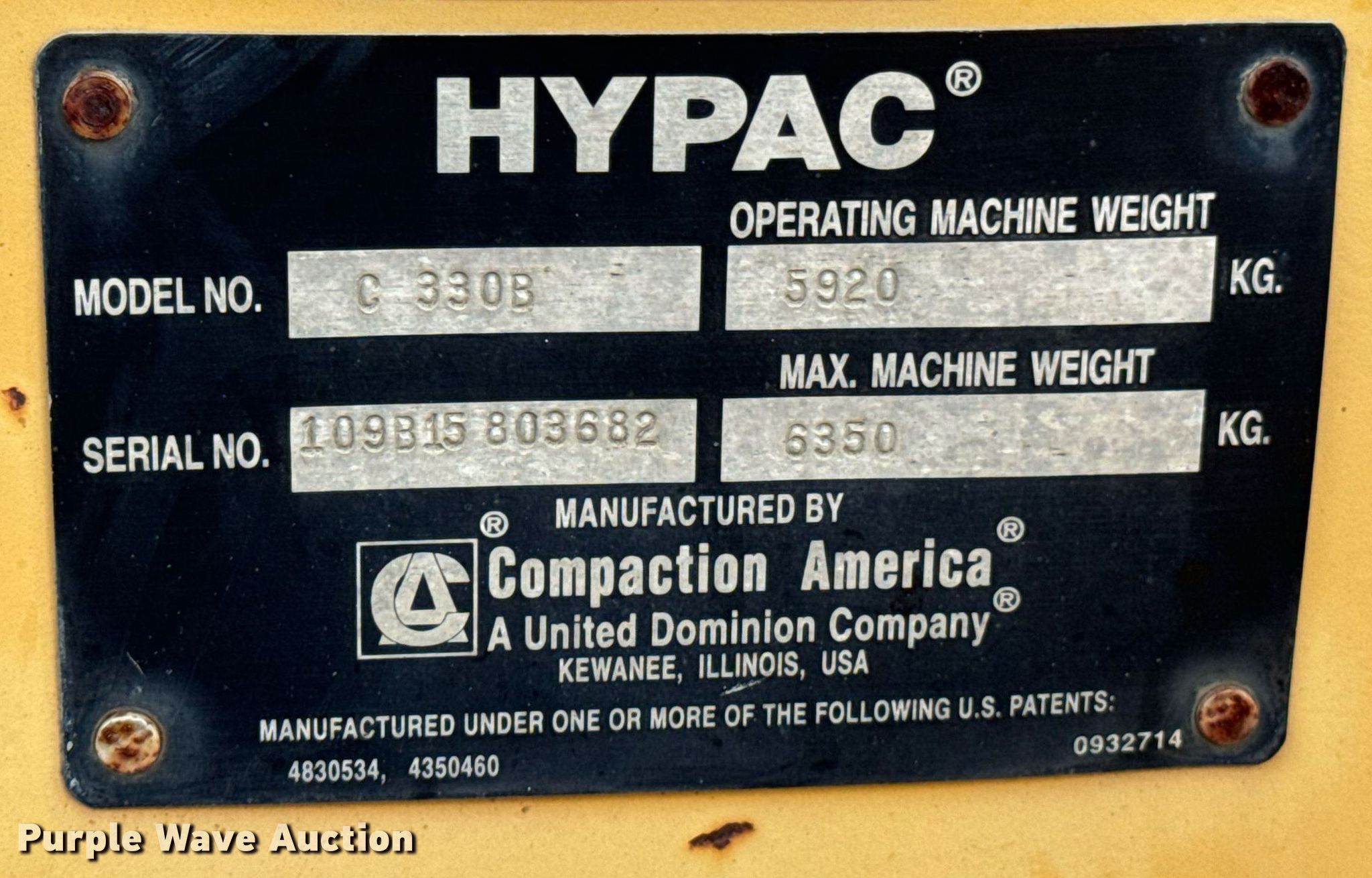 Purple Wave is selling a used Double Drum Roller Compactor in Oklahoma. This item is a 2001 Hypac C330B double drum roller with the following: Hours: 2,763 on meter, Serial: 109B15803682