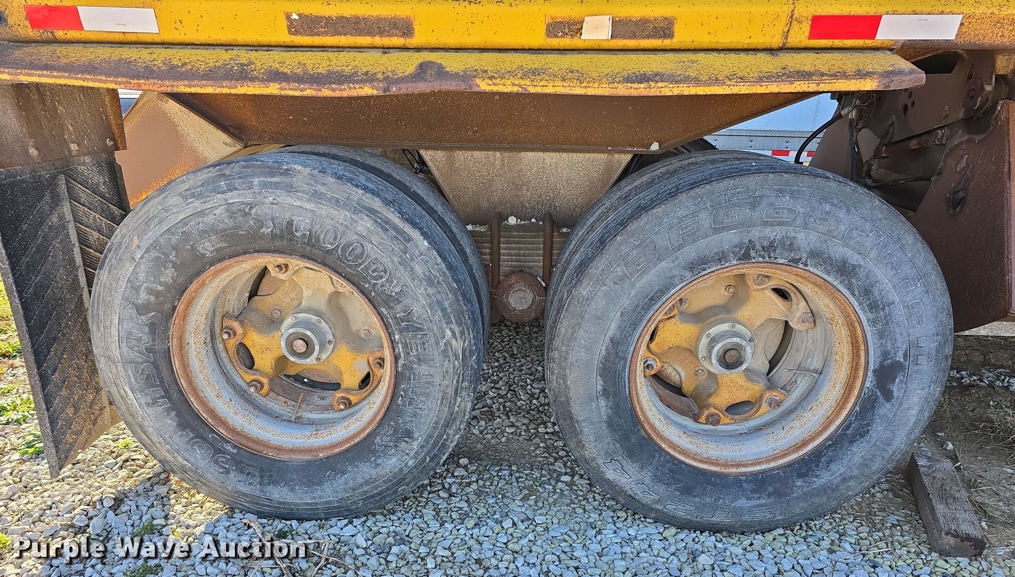 1979 Load King 2030 bottom dump trailer. VIN: 7840. Dimensions Overall: 38' L x 96" W, Body: 19' 6" L x 96" W, Sideboard height: 60". Features Cu. yd. capacity: 20, Body type: Steel, Clamshell gate: Air operated, Rear push block. Chassis Suspension: Spring, Brakes: Air, Axles: Tandem, GVWR: 74,570 lbs, GAWR: 19,040 lbs. Tires Steel wheels, Size: 295/75R22.5. Iowa title. Title distribution may be delayed up to 14 days from verification of funds. Clark Heavy Construction. Red Oak, IA 51566