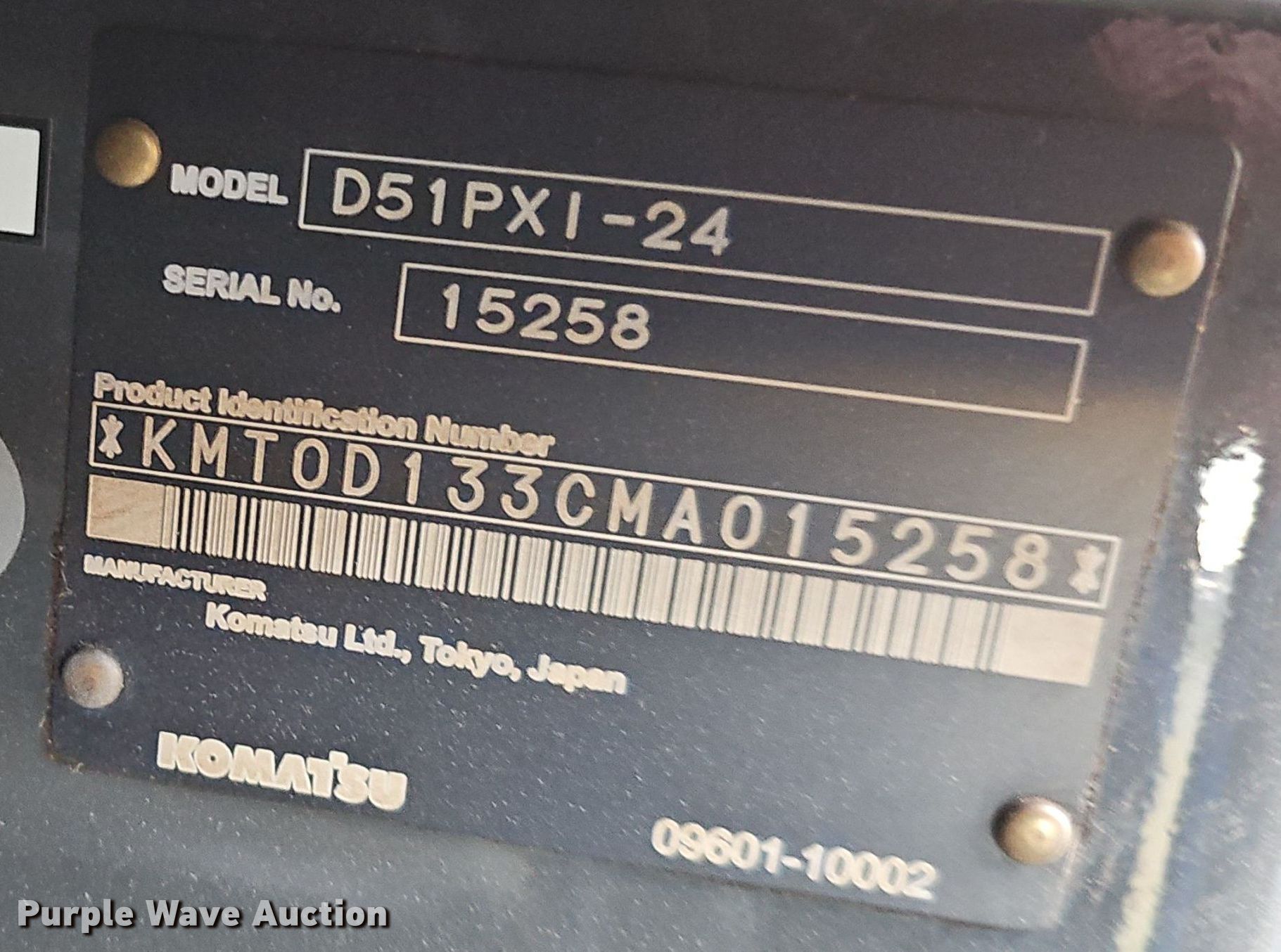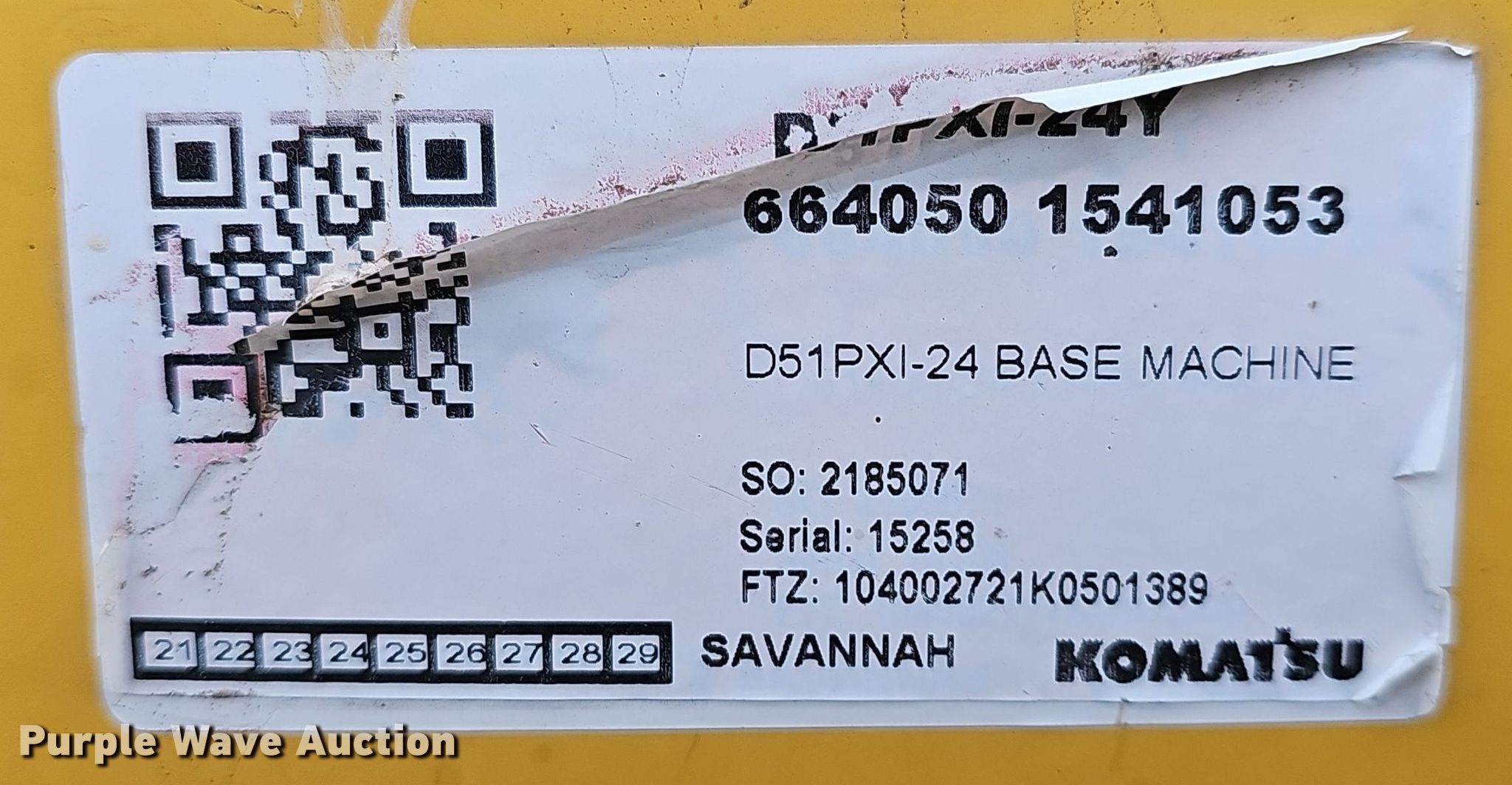 Purple Wave is selling a used Crawler Dozer in Missouri. This item is a 2021 Komatsu D51PXI-24 dozer with the following: Hours: 5,445 on meter, Serial: KMT0D133CMA015258