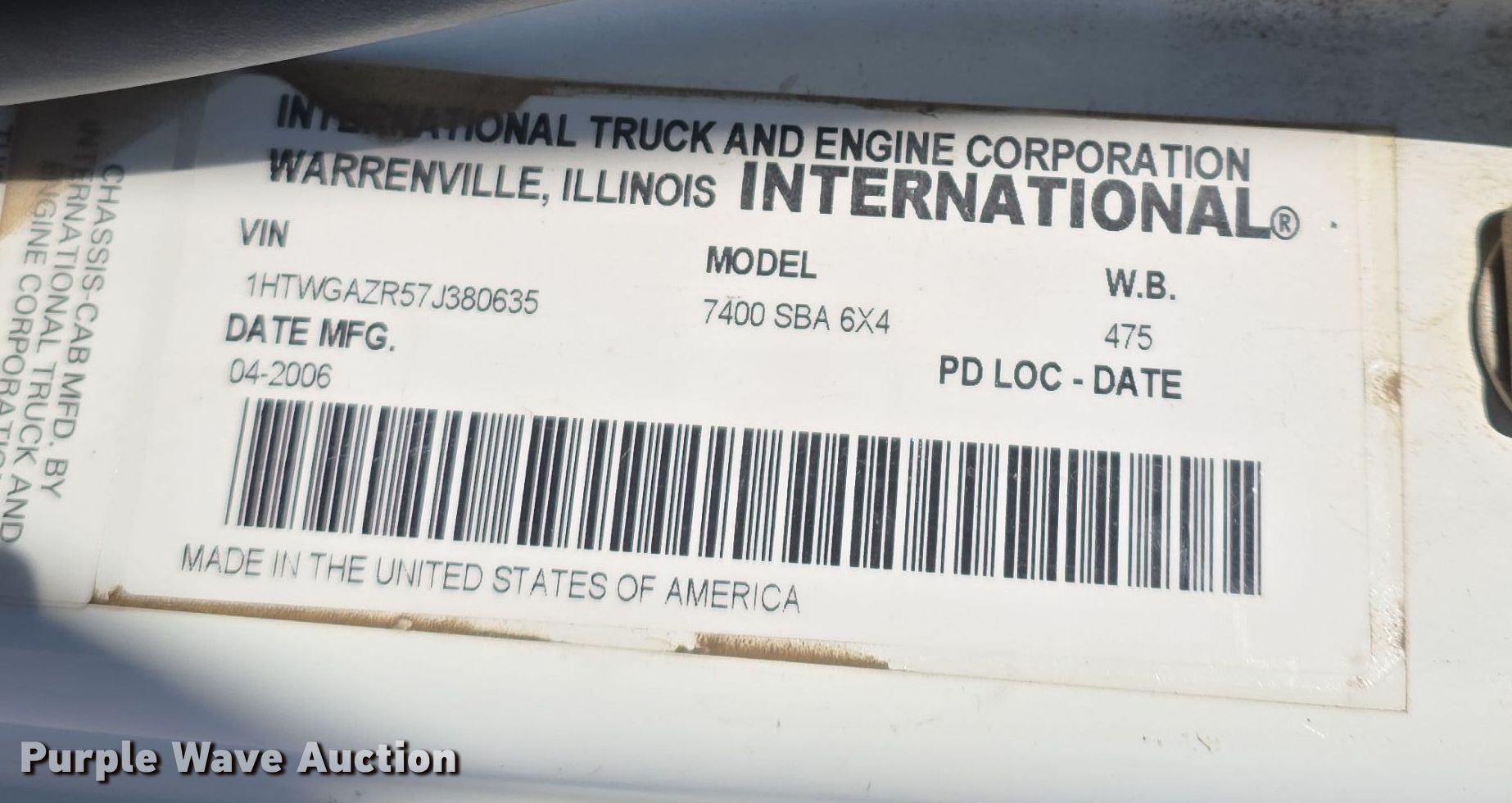 Purple Wave is selling a used Digger Derrick Truck in Nebraska. This item is a 2007 International 7400 digger derrick truck with the following: Miles: 79,033 on odometer, Hours: 10,025 on meter, Miles or hours may vary, unit still in use, VIN: 1HTWGAZR57J380635