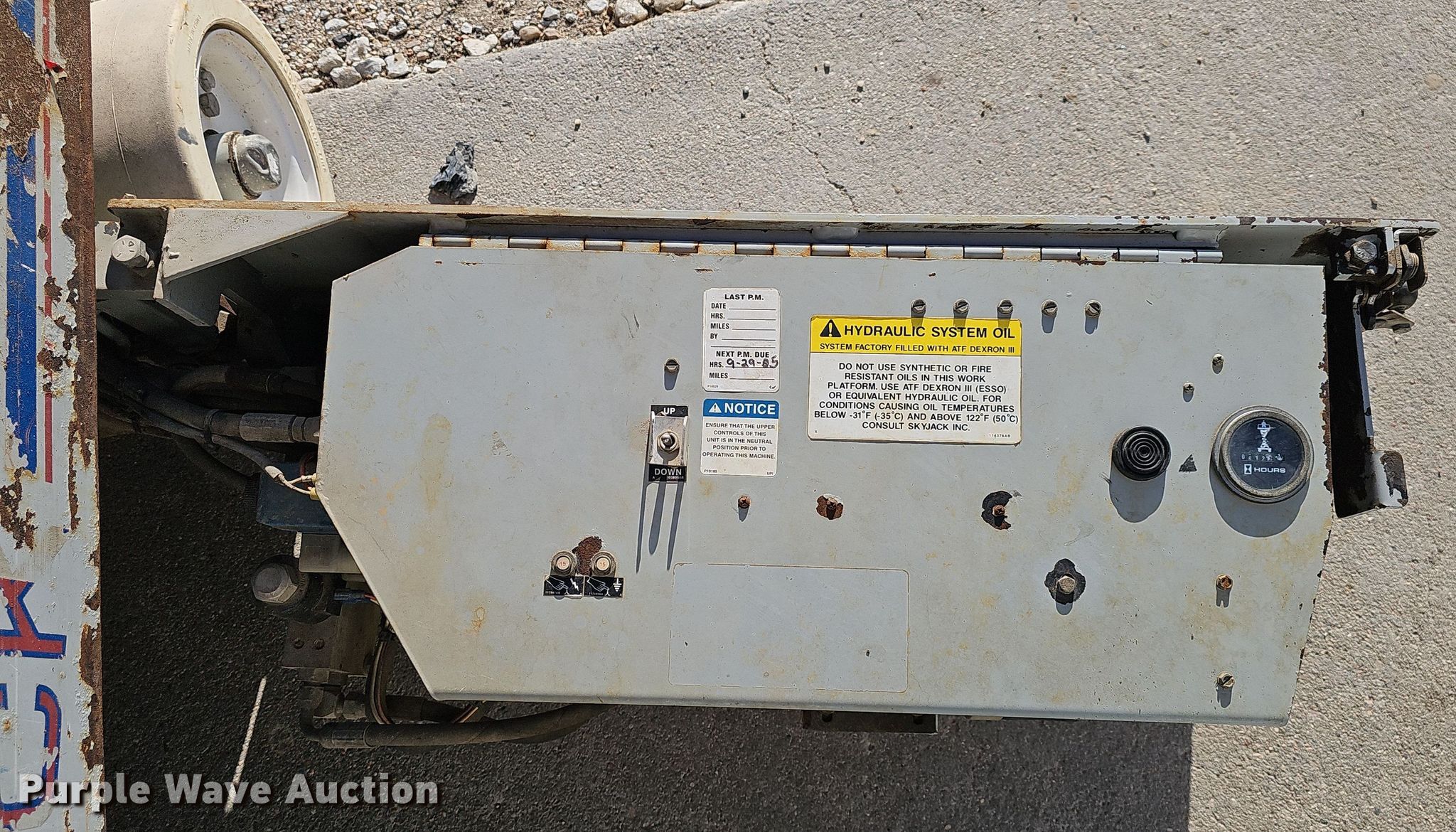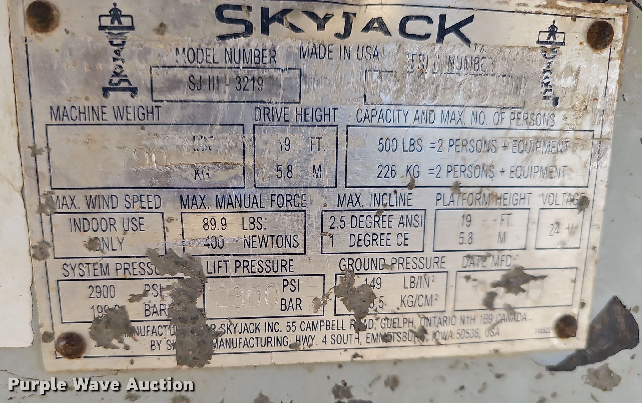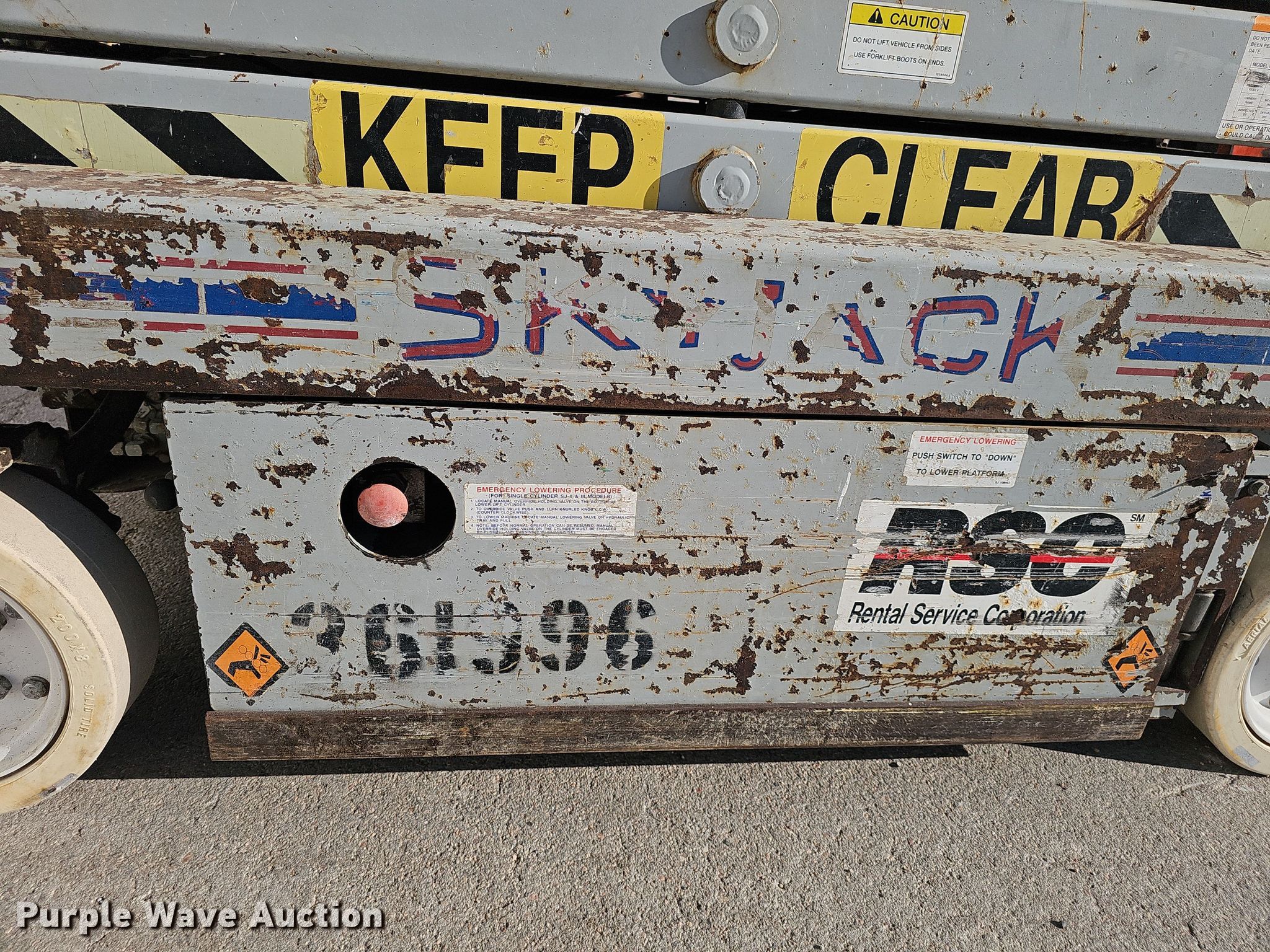 Purple Wave is selling a used Scissor or Vertical Lift in Nebraska. This item is a 2000 Skyjack SJIII 3219 scissor lift with the following: Hours: 613 on meter, Serial: 230803