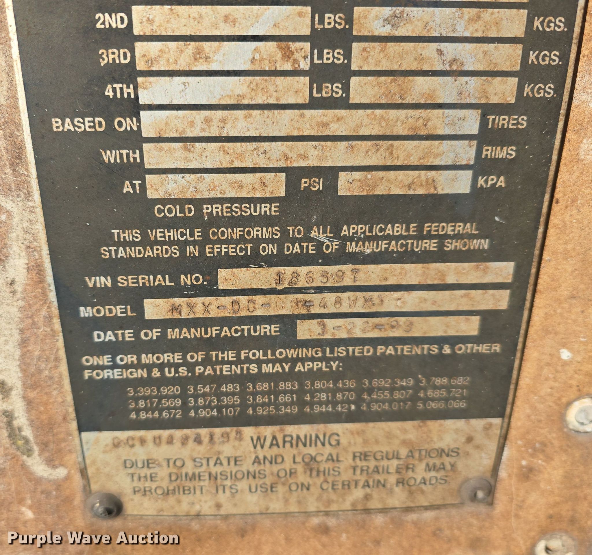 Purple Wave is selling a used Storage or Shipping Container in Nebraska. This item is a 1993 Monon MXX-DC-00-48WX1 storage container with the following: Serial: 186597, Unit #: 484194