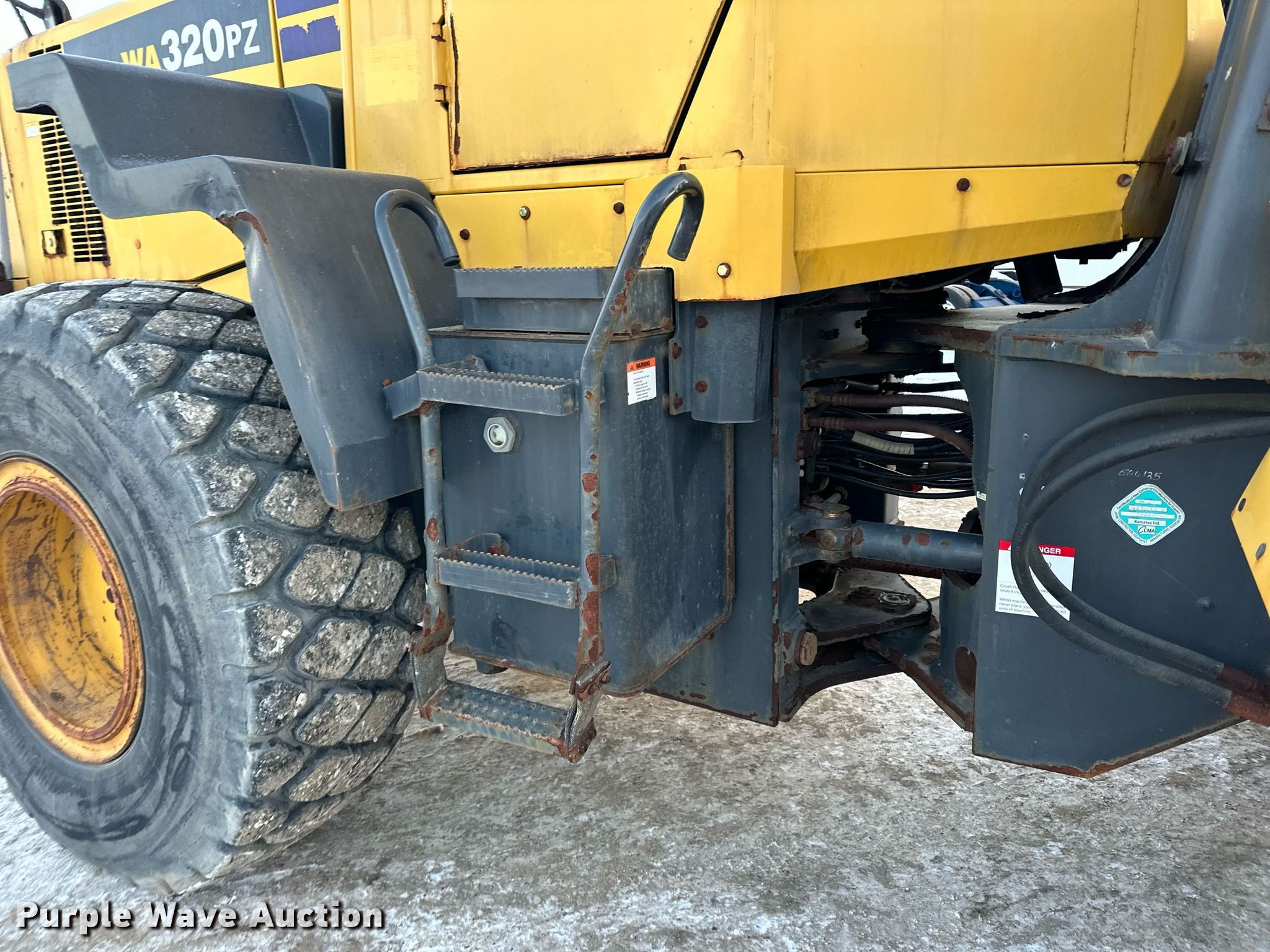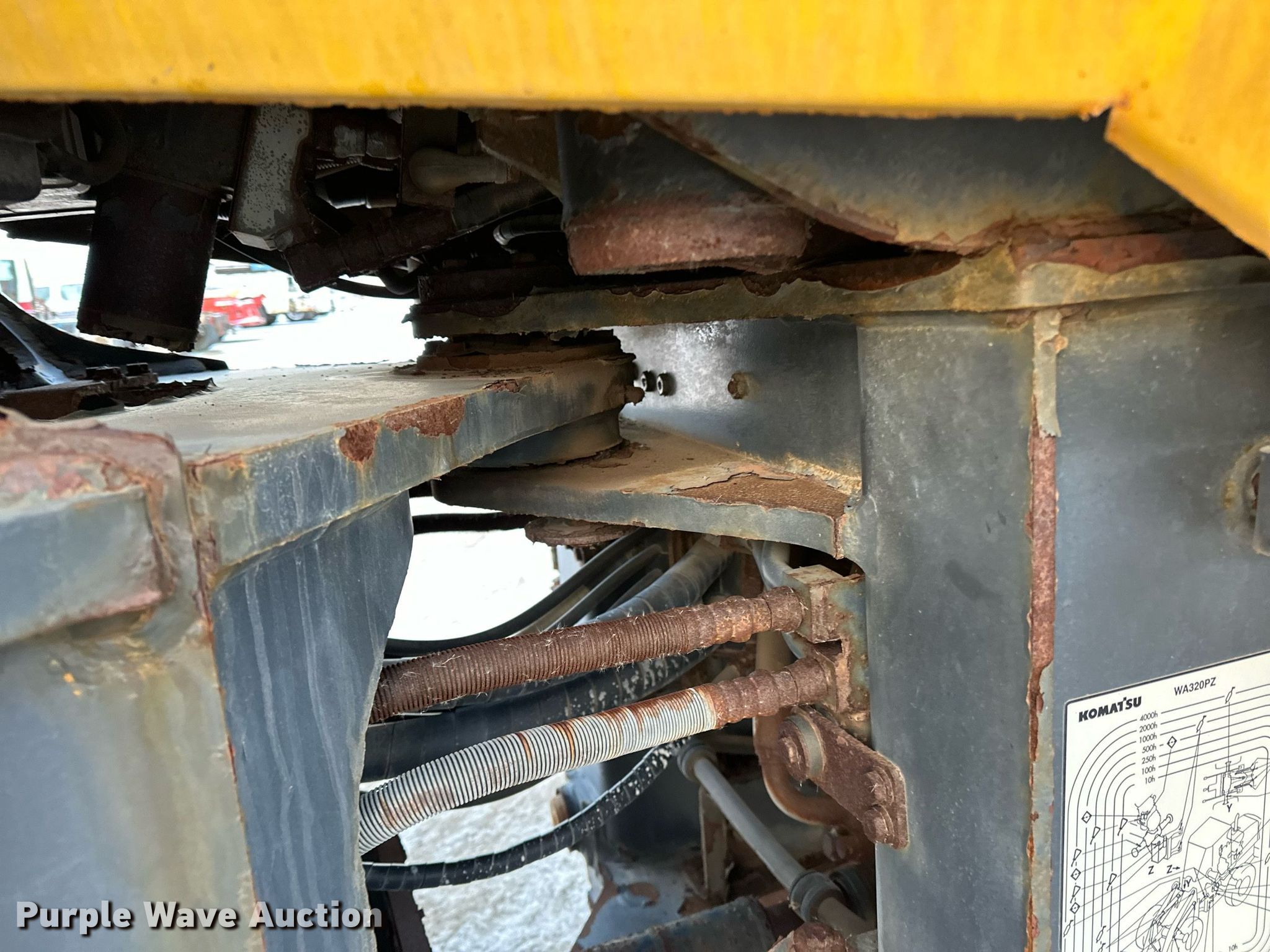 2012 Komatsu WA320PZ-6 wheel loader. Hours: 11,750 on meter, Serial: KMTWA108E01071415. Engine Cylinders: 6, Fuel type: Diesel. Transmission Hydrostatic. Operators station OROPS, AC, Heat, Bucket controls: Joystick. Features Auxiliary hydraulics: Front, Counter weights, Bucket GEM, Width: 118", Cutting edge: Bolt-on. Tires Size: 20.5R25. Notes Warning indicator: E01 maintenance. General Equipment. Minot, ND 58701