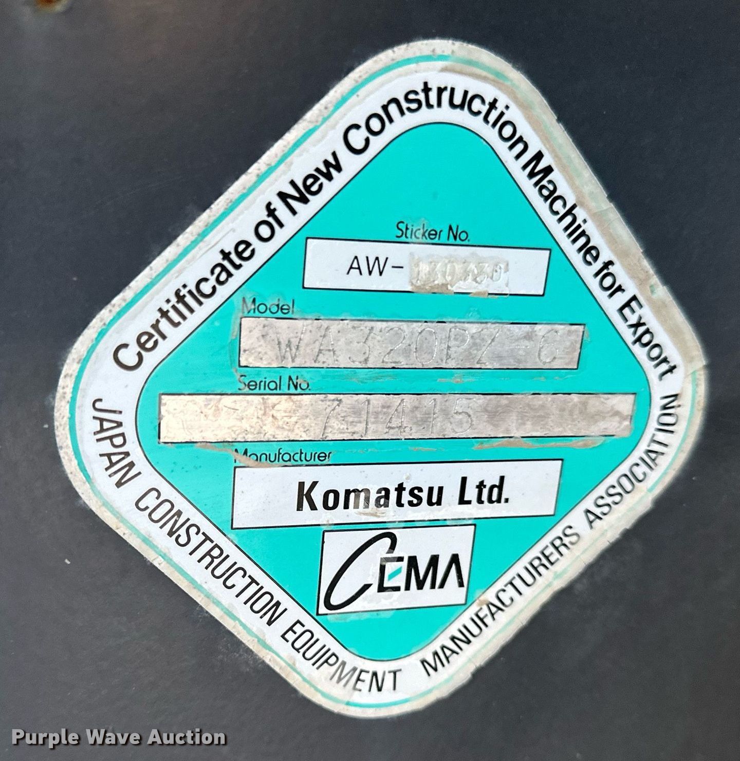 Purple Wave is selling a used Wheel Loader in North Dakota. This item is a 2012 Komatsu WA320PZ-6 wheel loader with the following: Hours: 11,750 on meter, Serial: KMTWA108E01071415