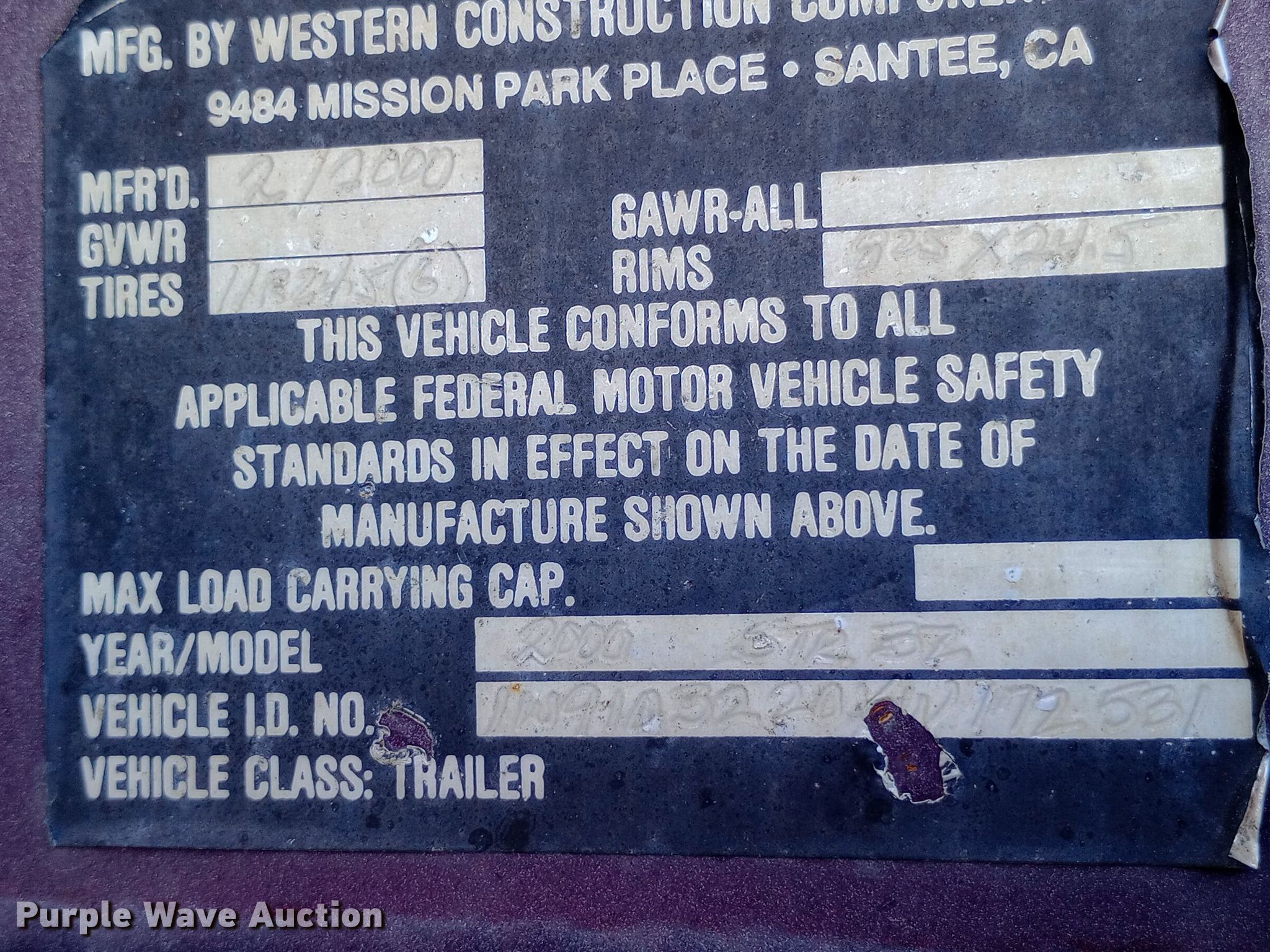 Purple Wave is selling a used End Dump Rock Trailer in Kansas. This item is a 2000 Western end dump trailer with the following: VIN: 1W9103220YW172531