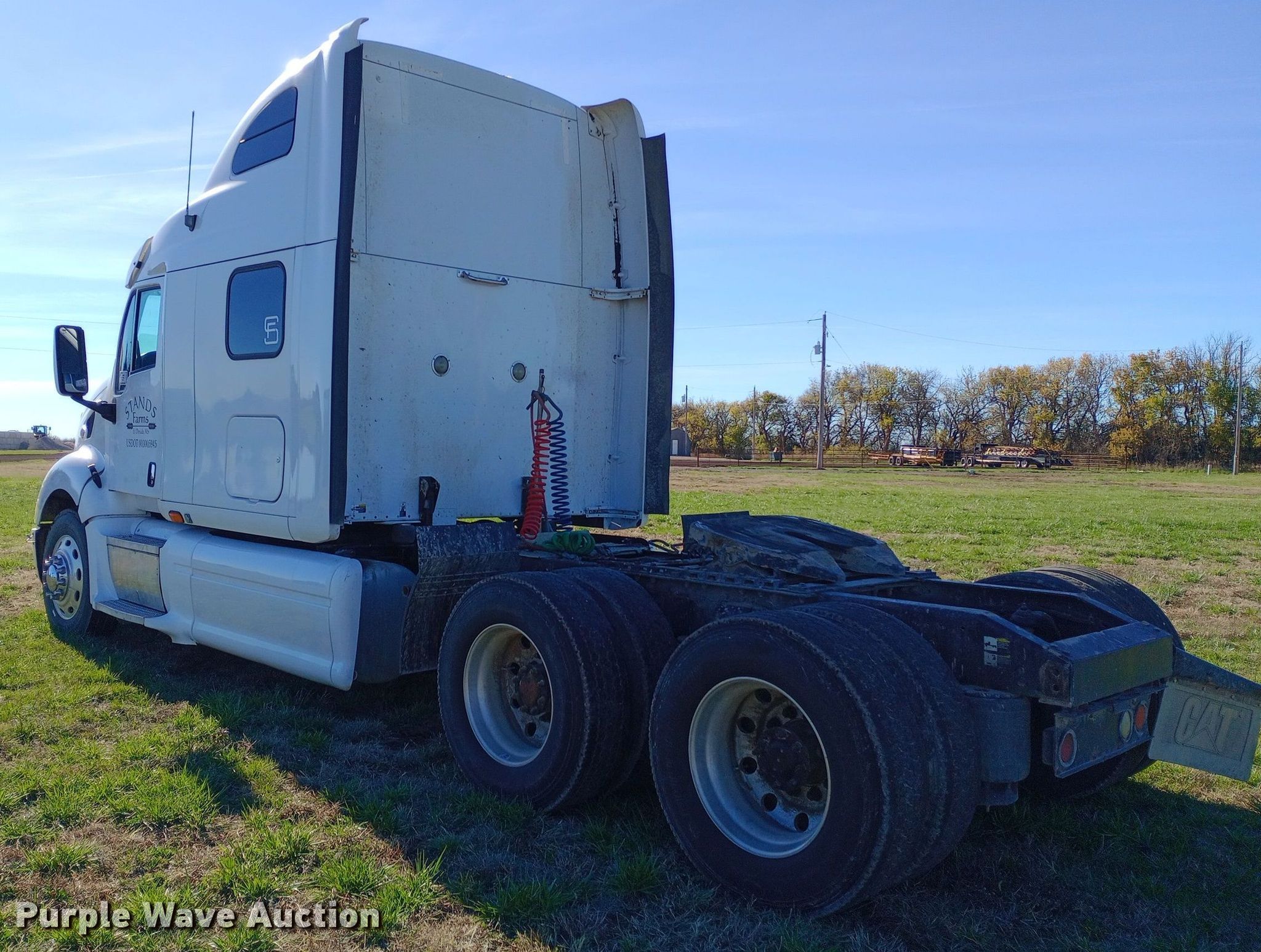 2005 Peterbilt 387 semi truck. Miles: 1,226,349 on odometer, VIN: 1XP7DB9X65D847151. Engine Caterpillar C15 Acert, Displacement: 14.6L, Cylinders: 6, Fuel type: Diesel, Engine brake. Transmission Eaton Fuller, Automated manual. Chassis Axles: Tandem, Differential lock: Inter-axle, Suspension: Air Dump valves, Brakes: Air, GVWR: 48,000 lbs FAWR: 12,000 lbs, IAWR: 18,000 lbs, RAWR: 18,000 lbs. Interior AC, Heat, Heated mirrors, Power windows, Power locks, Cruise control, Air ride cab, Sleeper Sleeper length: 68", Beds: Double bunk, Rear climate control. Features Deck plate: Aluminum, Fifth wheel type: Air operated, Sliding, Fuel tank: Dual. Tires Front: 11R22.5, Rear: 295/75R22.5. Kansas title. Title distribution may be delayed up to 30 days from verification of funds. Stands Farms, LLC. El Dorado, KS 67042