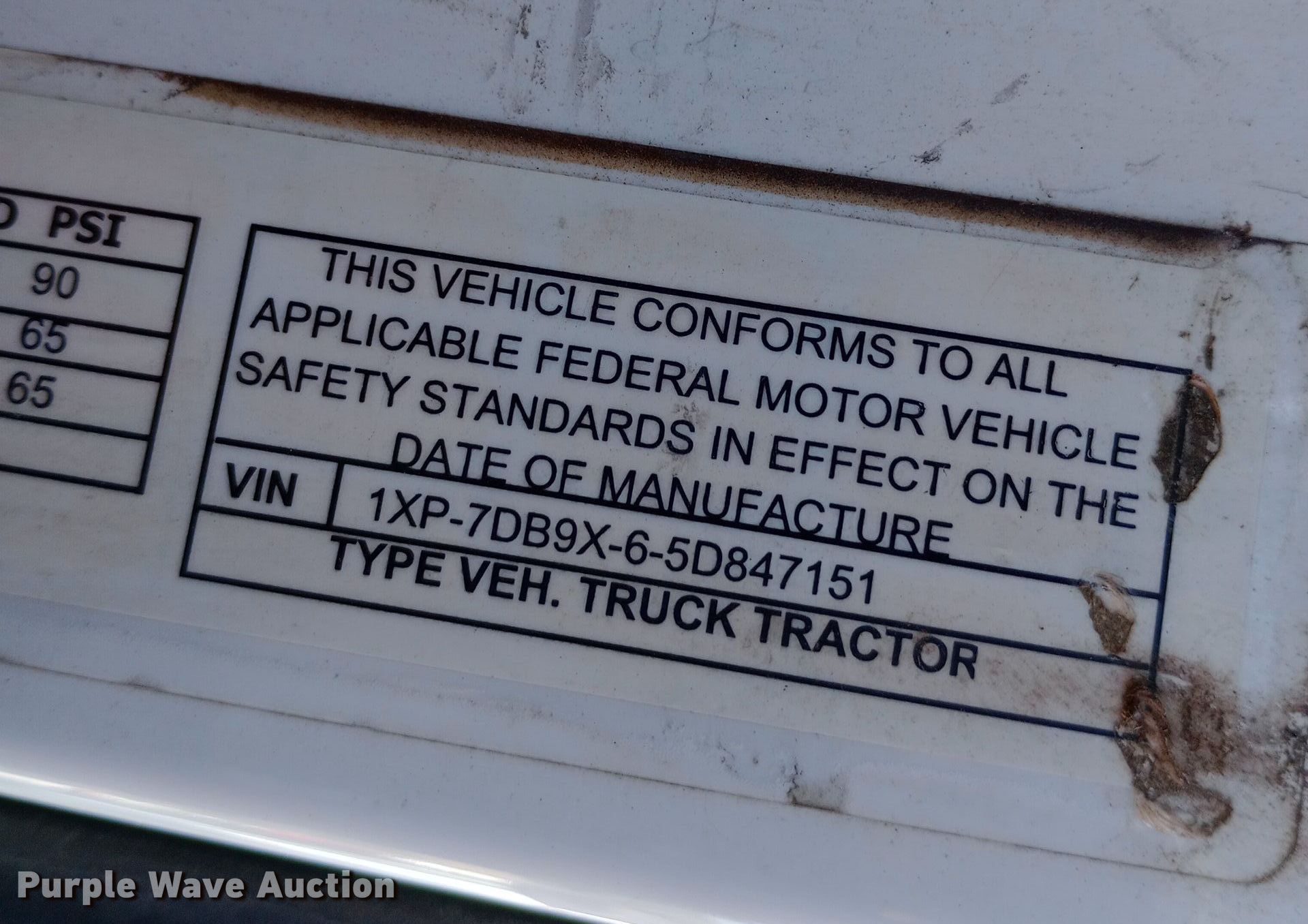Purple Wave is selling a used Truck Tractor in Kansas. This item is a 2005 Peterbilt 387 semi truck with the following: Miles: 1,226,349 on odometer, VIN: 1XP7DB9X65D847151