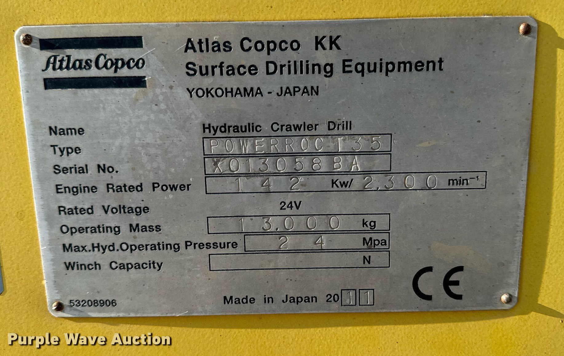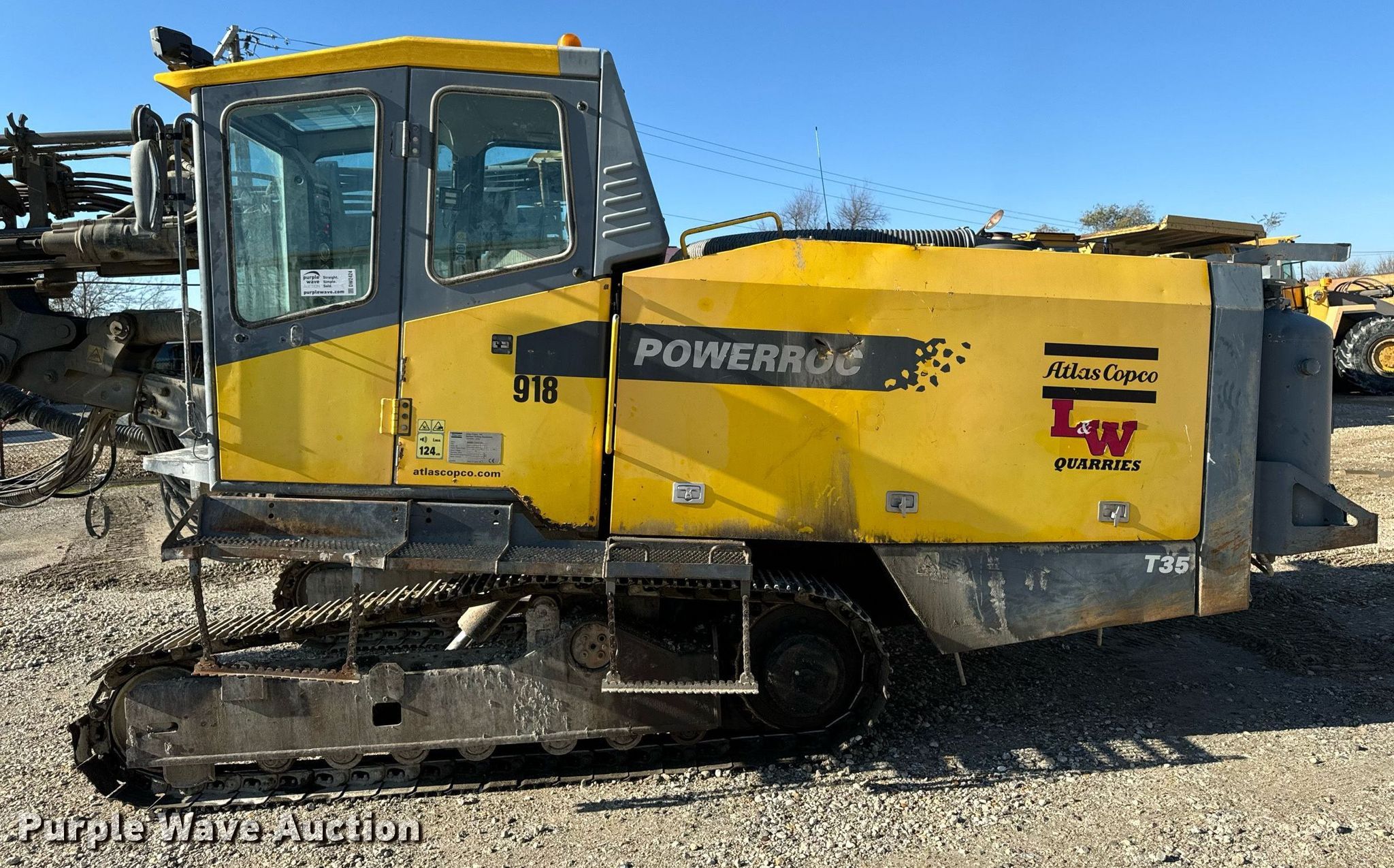Purple Wave is selling a used Drilling Rig in Iowa. This item is a 2011 Atlas Copco PowerROC T35 surface drilling rig with the following: Hours: 4,081 on meter, Serial: X013058BA