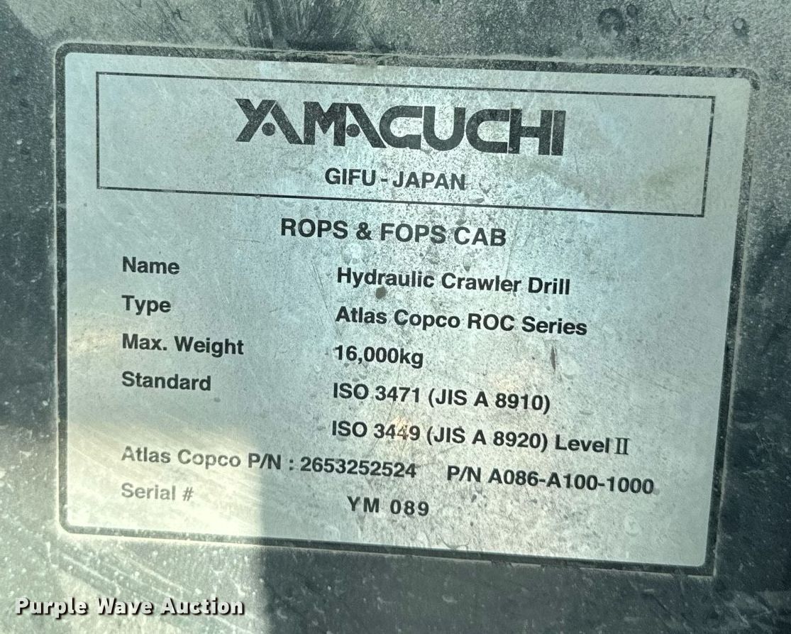 2011 Atlas Copco PowerROC T35 surface drilling rig. Hours: 4,081 on meter, Serial: X013058BA. Engine Cummins QSB6.7, Displacement: 6.7L, Cylinders: 6, Fuel type: Diesel, HP: 190, kW: 142. Transmission Hydrostatic, 2F - 2R. Tracks Width: 12", Steel. Notes Hydraulic leaks, Track pads missing. Rasmussen Group. West Burlington, IA 52655