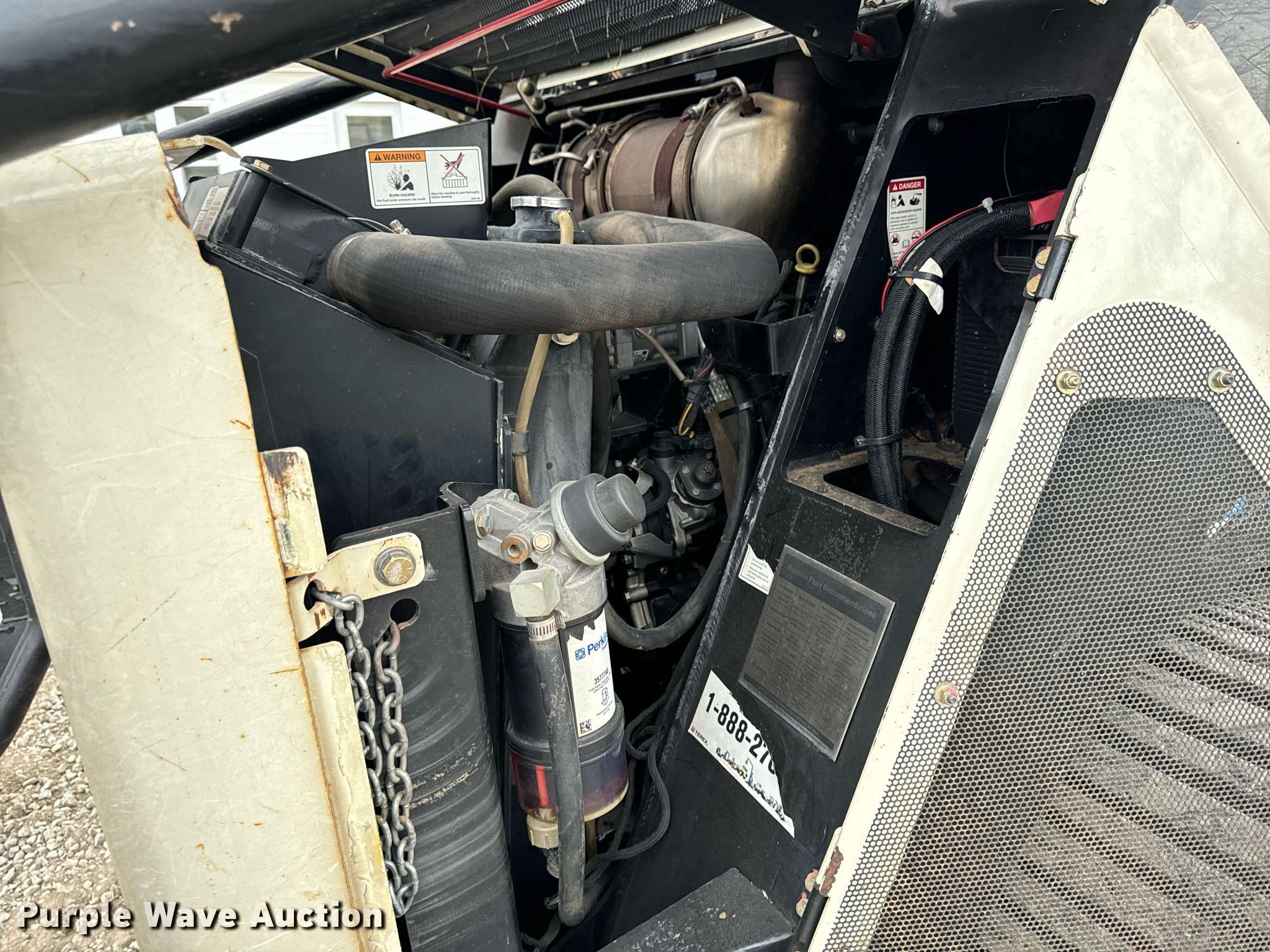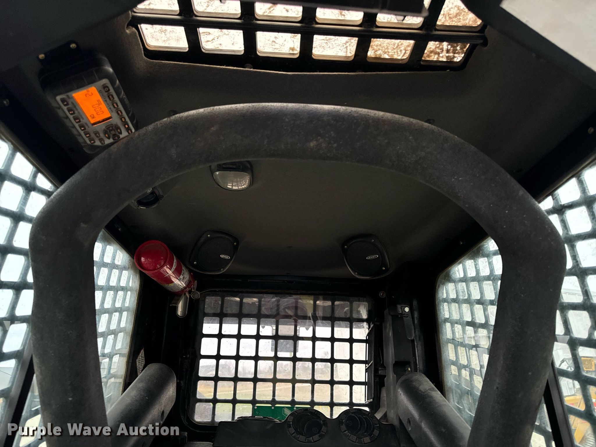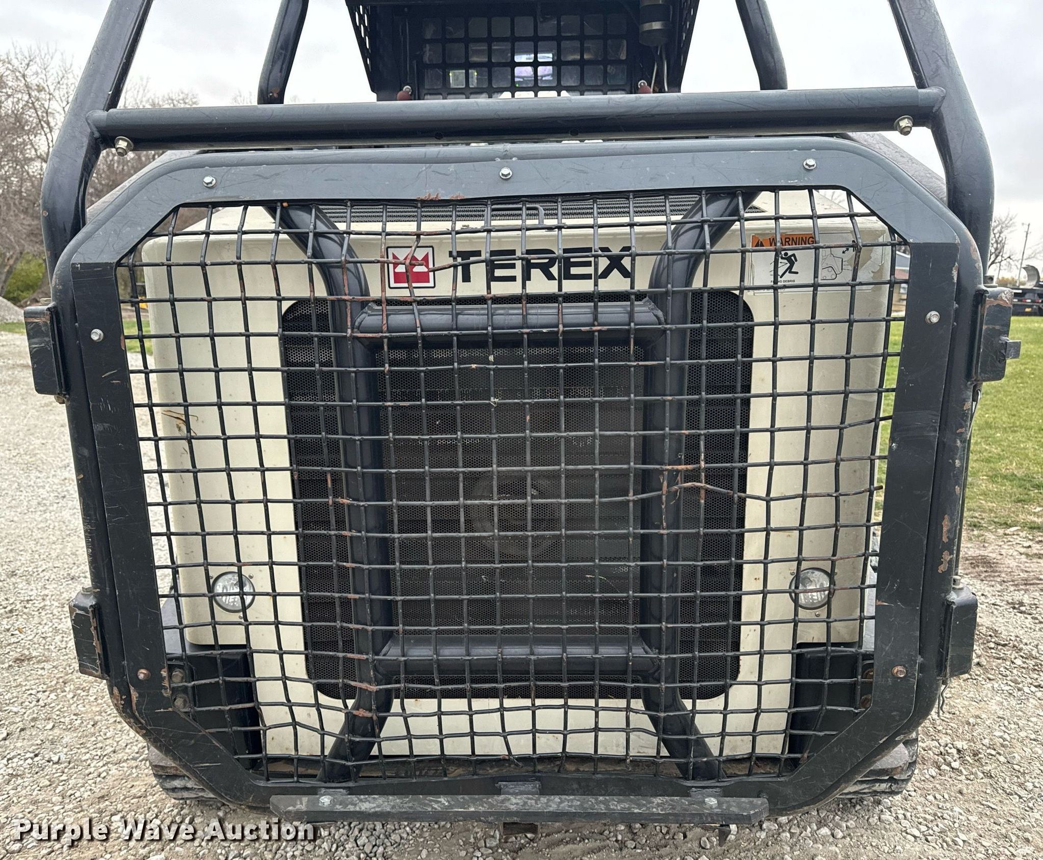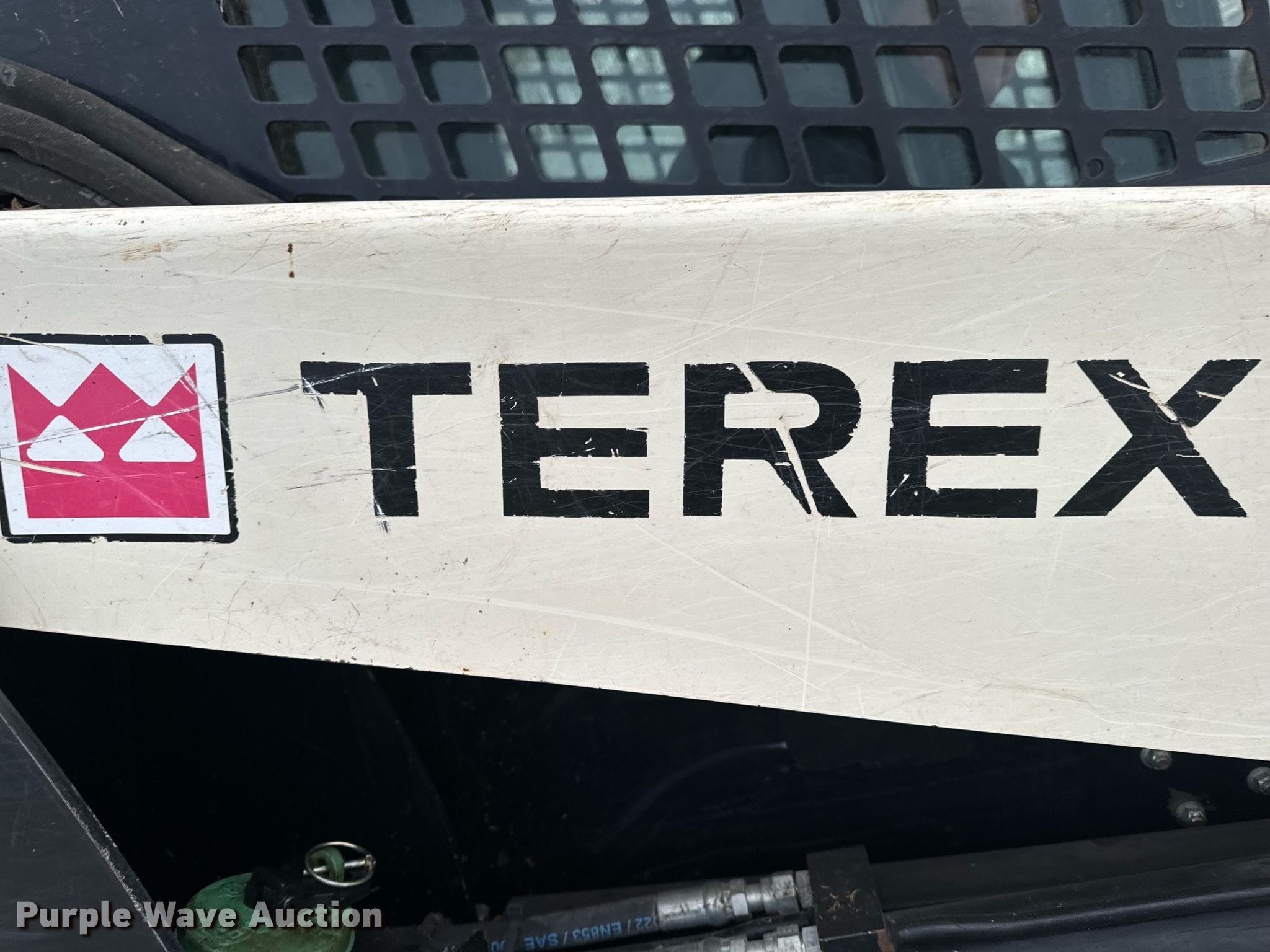 2014 Terex PT-110F tracked skid steer loader. Engine hours: 1,933 on meter, Serial: ASVPT110E4WF00398. Engine Perkins, Cylinders: 4, Fuel type: Diesel, HP: 110. Transmission Hydrostatic, Two speed travel. Operators station Enclosed cab, AC, Heat, Bucket control: Hand, Electronic Monitoring System panel. Features Auxiliary hydraulics, Auxiliary electrical outlet, Quick coupler: Hydraulic, Bucket John Deere, Width: 80", Cutting edge: Bolt-on. Tracks Width: 20". Pella, IA 50219