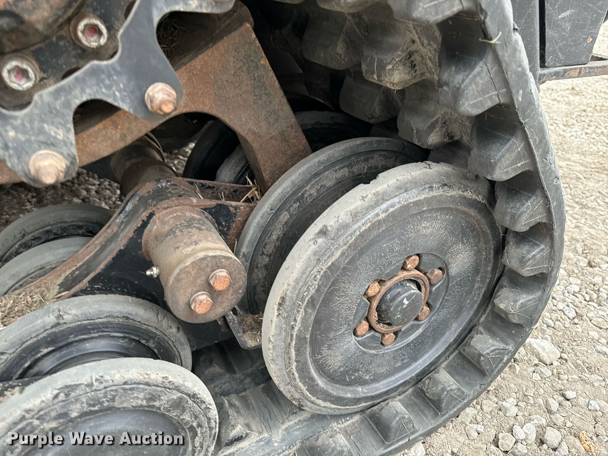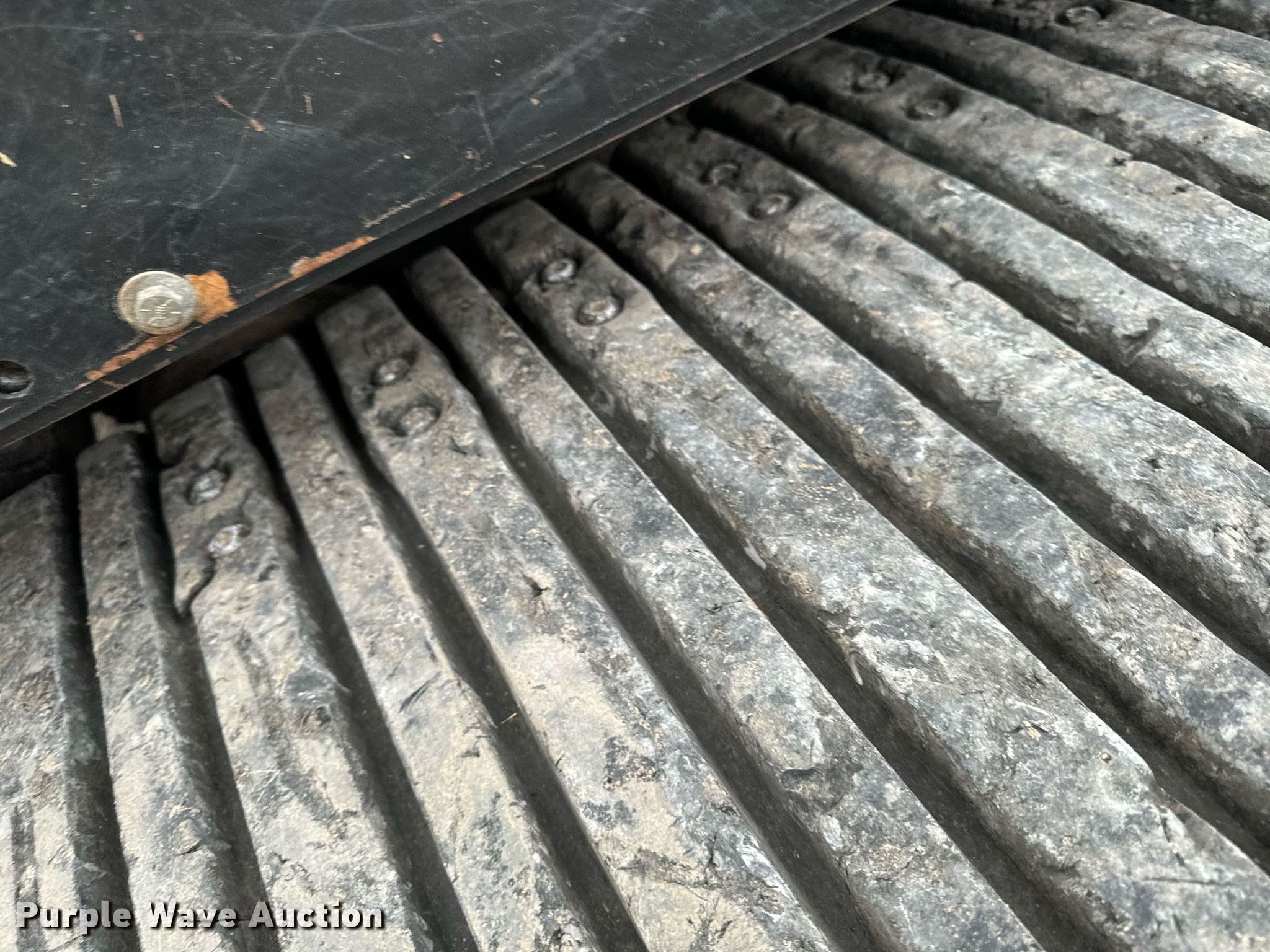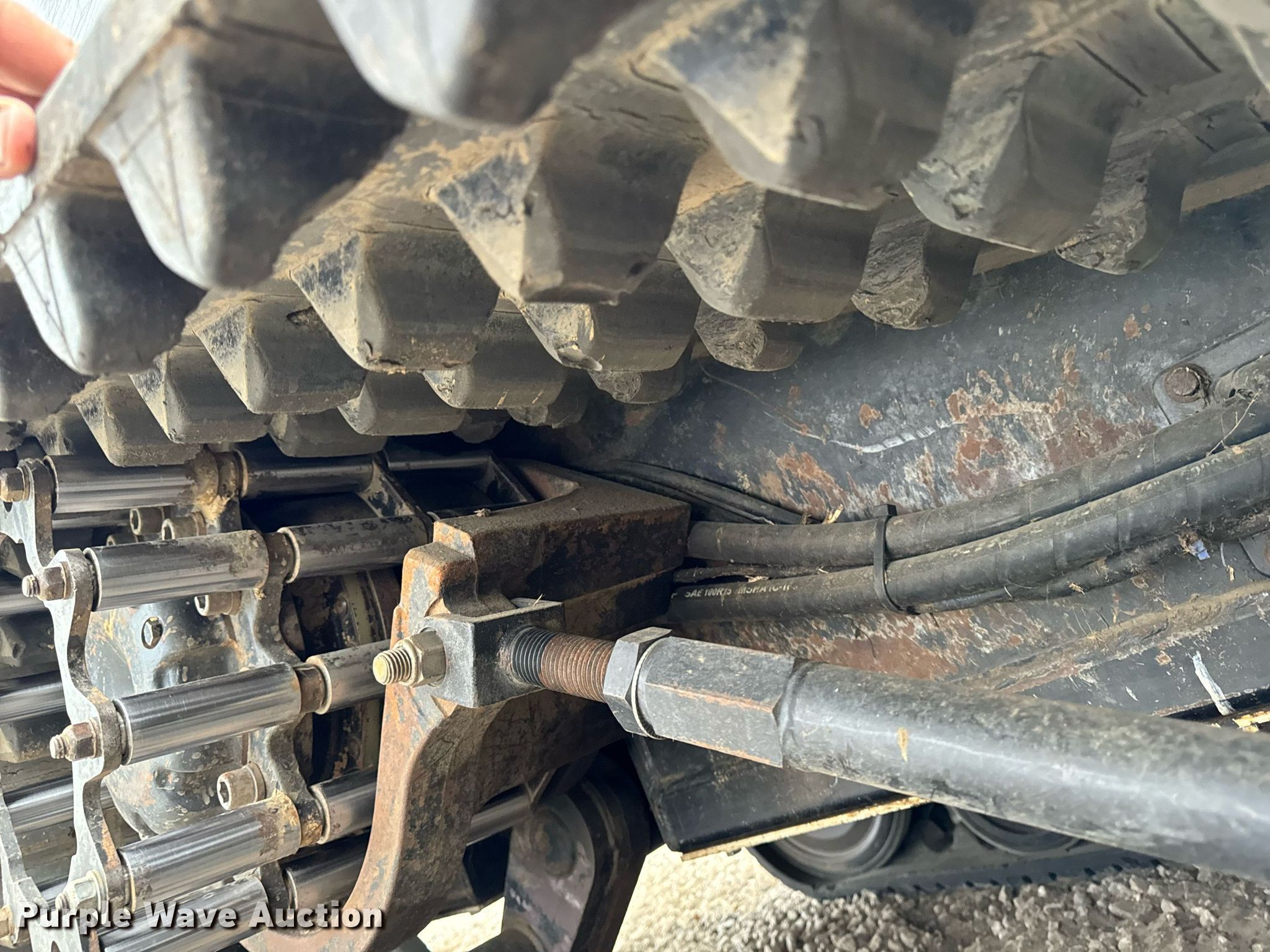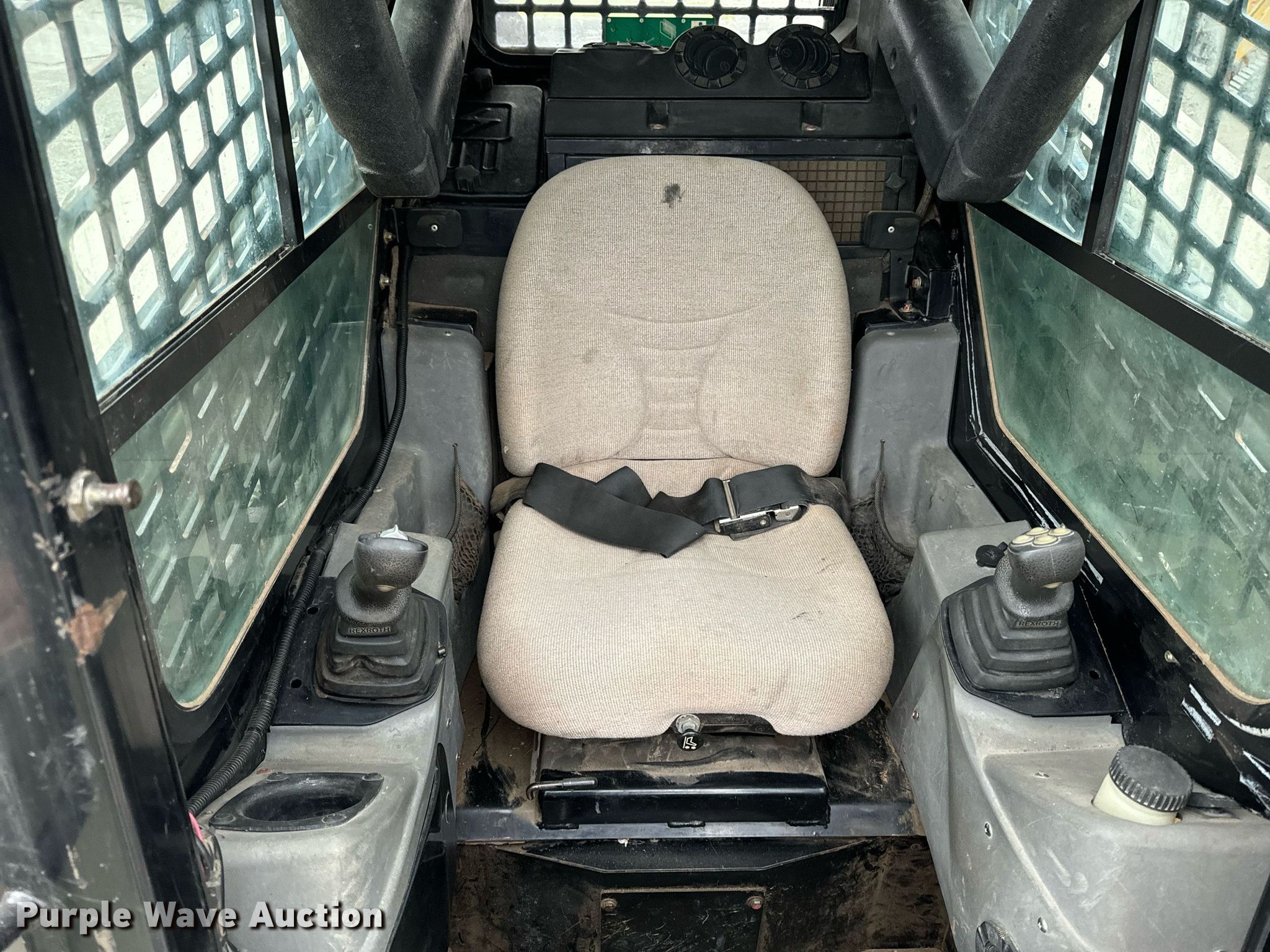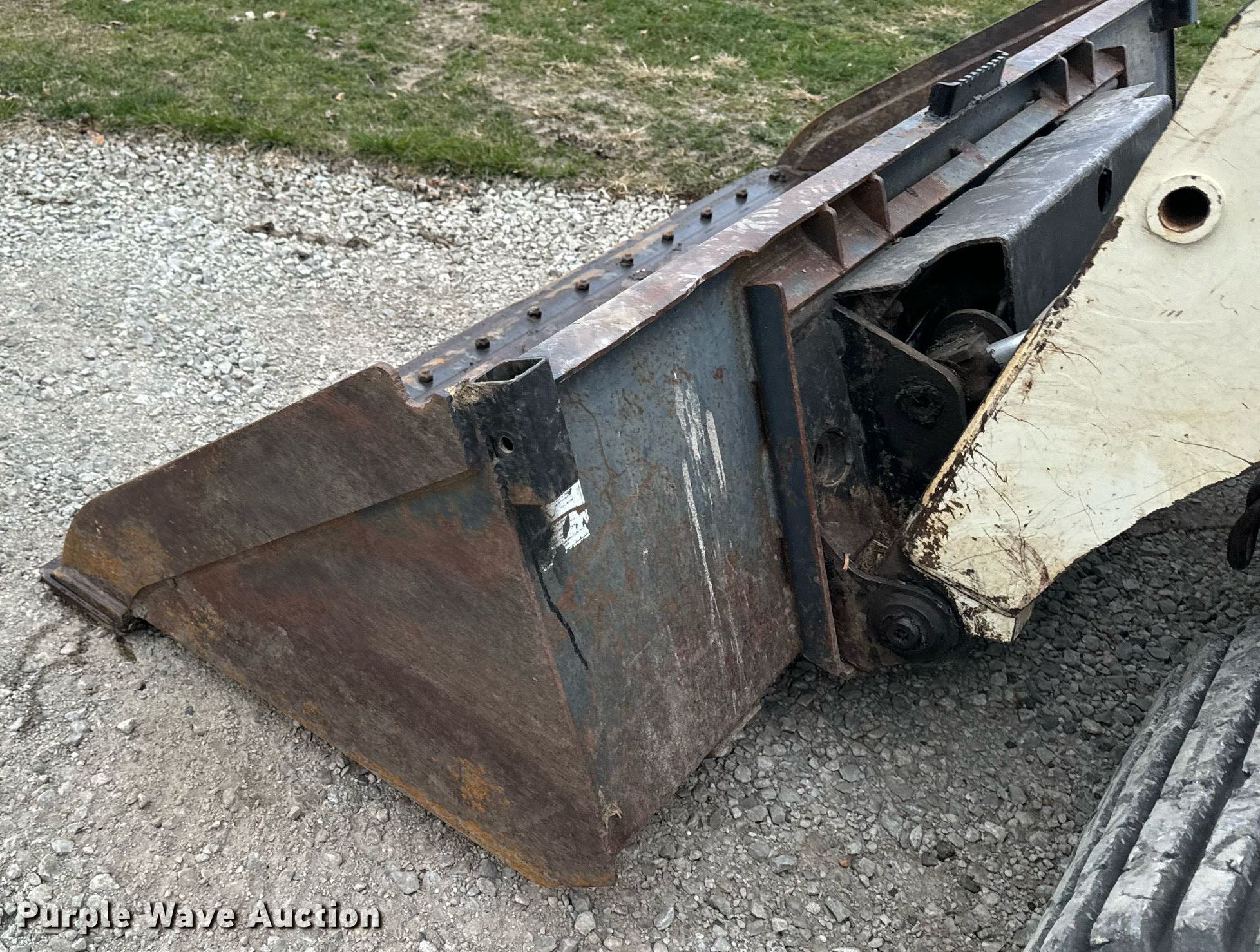 2014 Terex PT-110F tracked skid steer loader. Engine hours: 1,933 on meter, Serial: ASVPT110E4WF00398. Engine Perkins, Cylinders: 4, Fuel type: Diesel, HP: 110. Transmission Hydrostatic, Two speed travel. Operators station Enclosed cab, AC, Heat, Bucket control: Hand, Electronic Monitoring System panel. Features Auxiliary hydraulics, Auxiliary electrical outlet, Quick coupler: Hydraulic, Bucket John Deere, Width: 80", Cutting edge: Bolt-on. Tracks Width: 20". Pella, IA 50219
