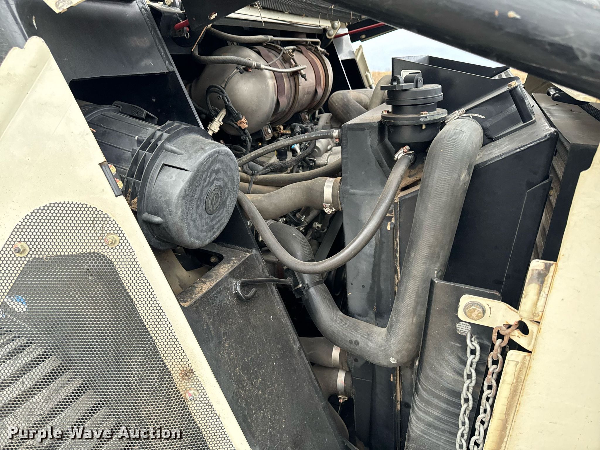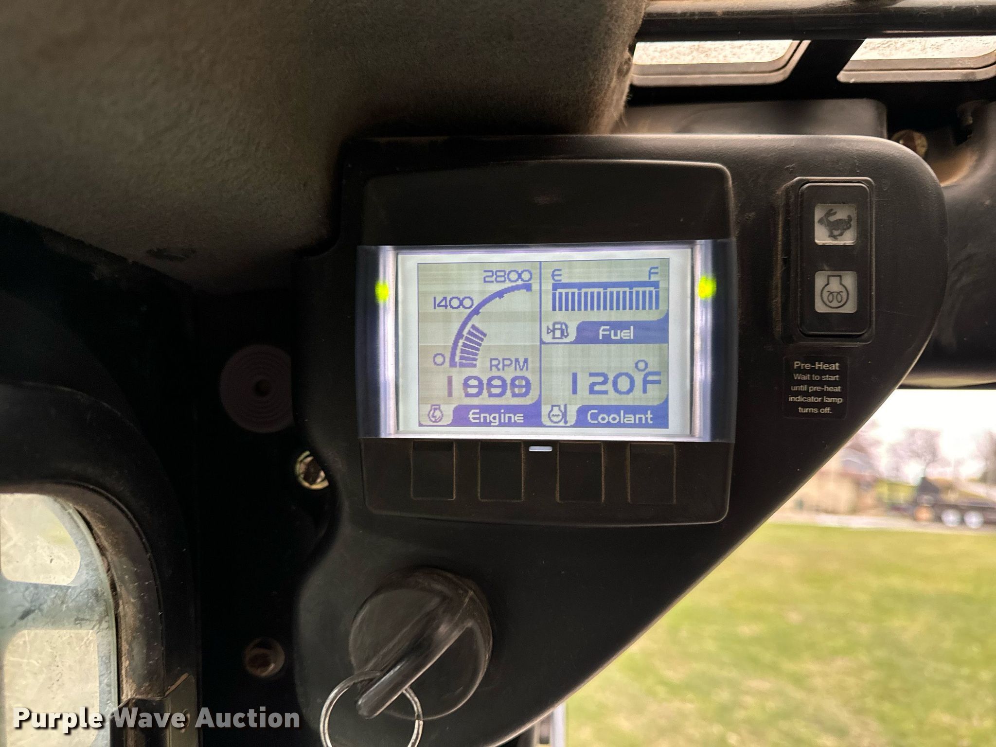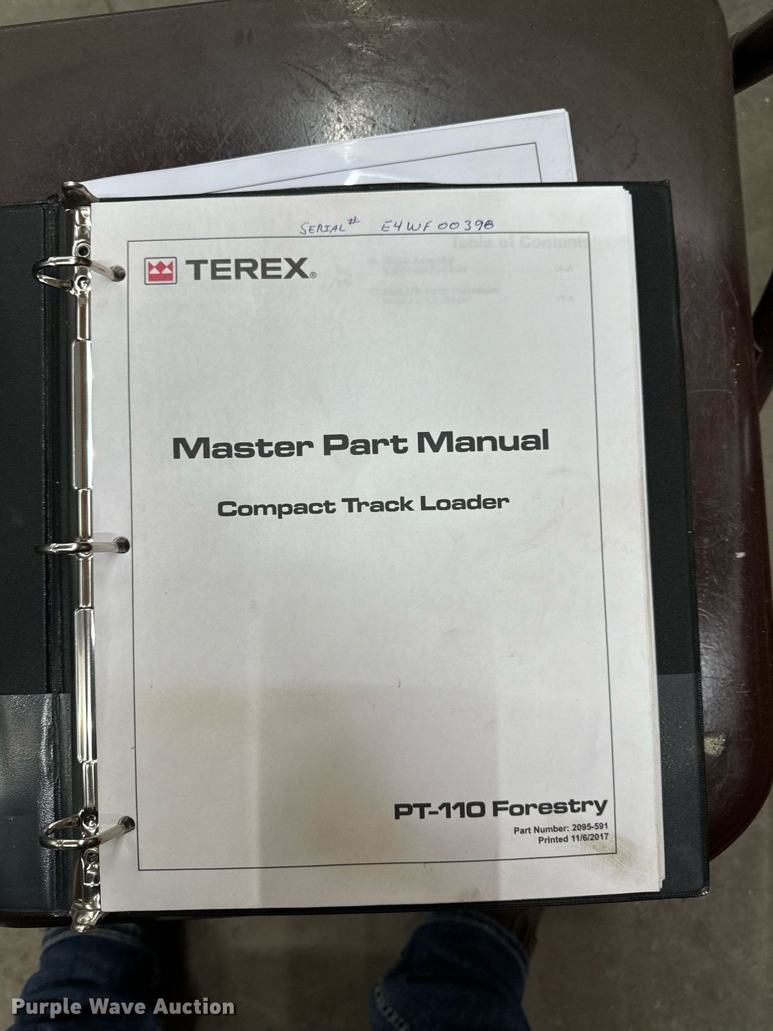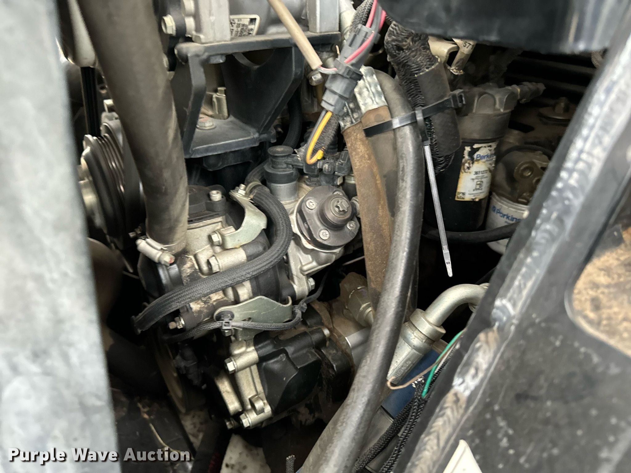 2014 Terex PT-110F tracked skid steer loader. Engine hours: 1,933 on meter, Serial: ASVPT110E4WF00398. Engine Perkins, Cylinders: 4, Fuel type: Diesel, HP: 110. Transmission Hydrostatic, Two speed travel. Operators station Enclosed cab, AC, Heat, Bucket control: Hand, Electronic Monitoring System panel. Features Auxiliary hydraulics, Auxiliary electrical outlet, Quick coupler: Hydraulic, Bucket John Deere, Width: 80", Cutting edge: Bolt-on. Tracks Width: 20". Pella, IA 50219