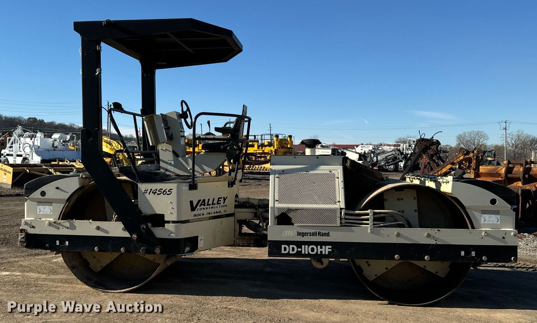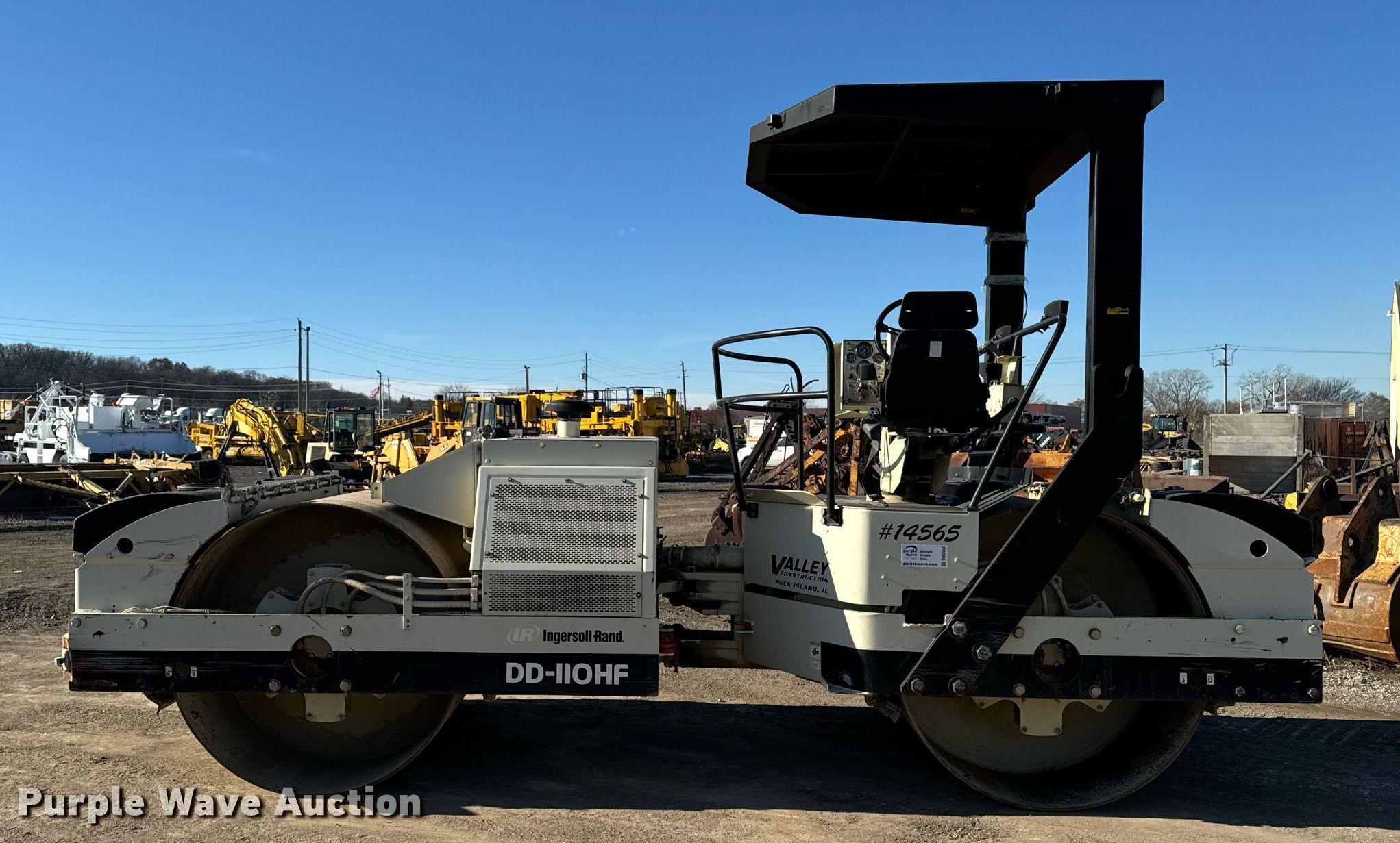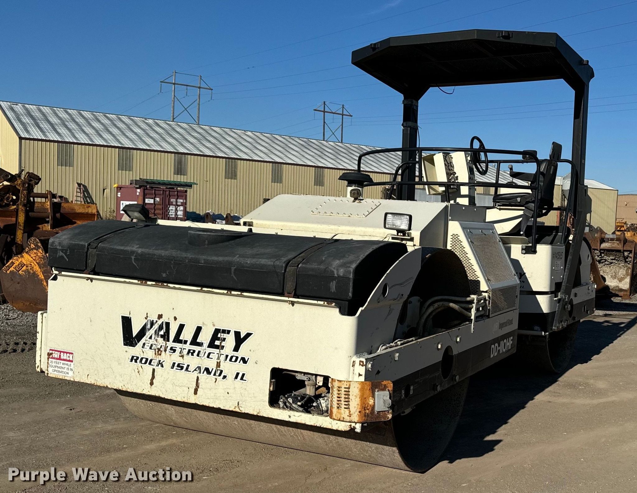 Purple Wave is selling a used Double Drum Roller Compactor in Illinois. This item is a 2001 Ingersoll Rand DD-110HF double drum vibratory roller with the following: Hours: 6,046 on meter, Serial: 166675