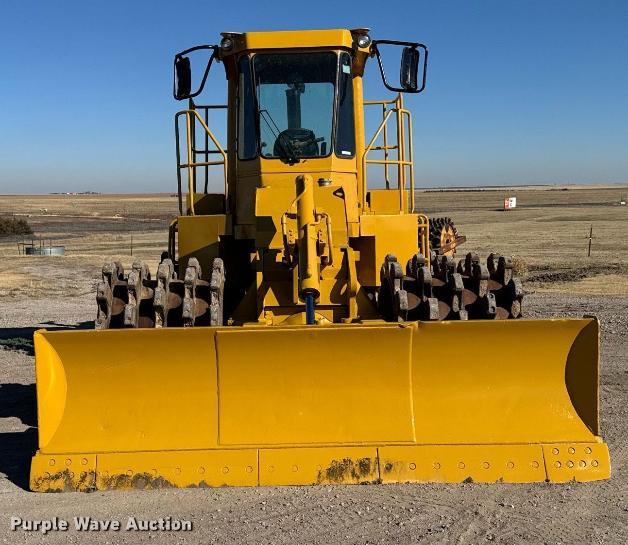 1984 Caterpillar 816B soil compactor. Hours: 21,167 on meter, Serial: 15Z00390. Engine Caterpillar, Cylinders: 6, Fuel type: Diesel. Transmission Powershift, 4F - 4R. Operators station Enclosed cab. Features Drum: Sheepsfoot, Front drum Width: 38", Diameter: 52", Rear drum Width: 38", Diameter: 52", Drum scrapers: Front, Rear, Front blade width: 144". Tires Steel wheels. Sporer Land Development , Inc. Oakley, KS 67748