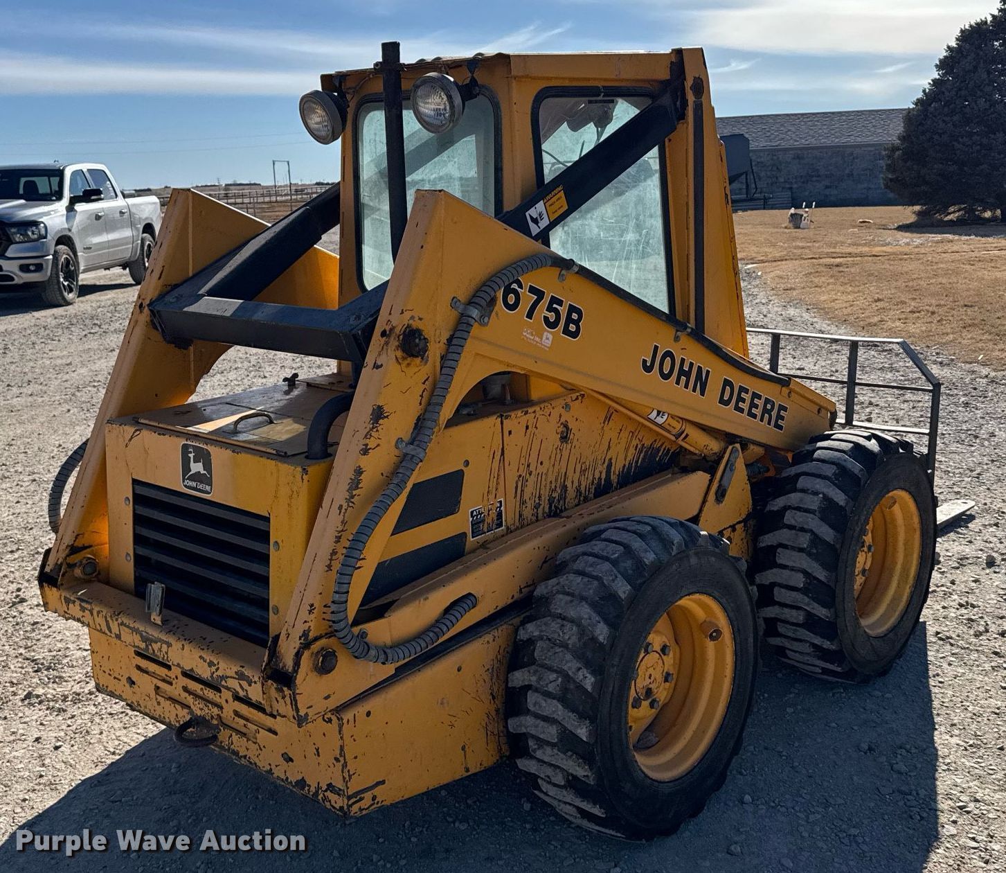 Purple Wave is selling a used Skid Steer Loader in Kansas. This item is a 1988 John Deere 675B skid steer loader with the following: Hours: 3,441 on meter, Serial: M0675BB485085